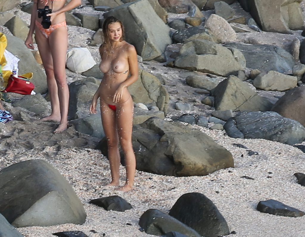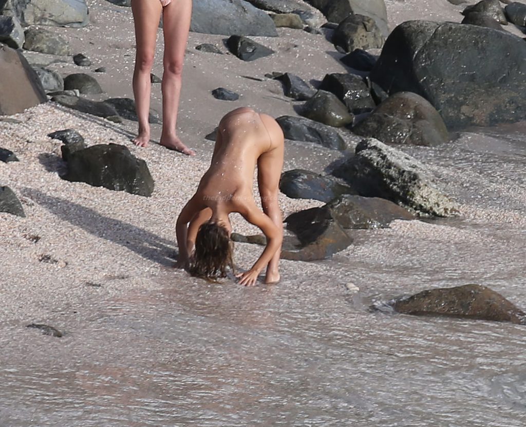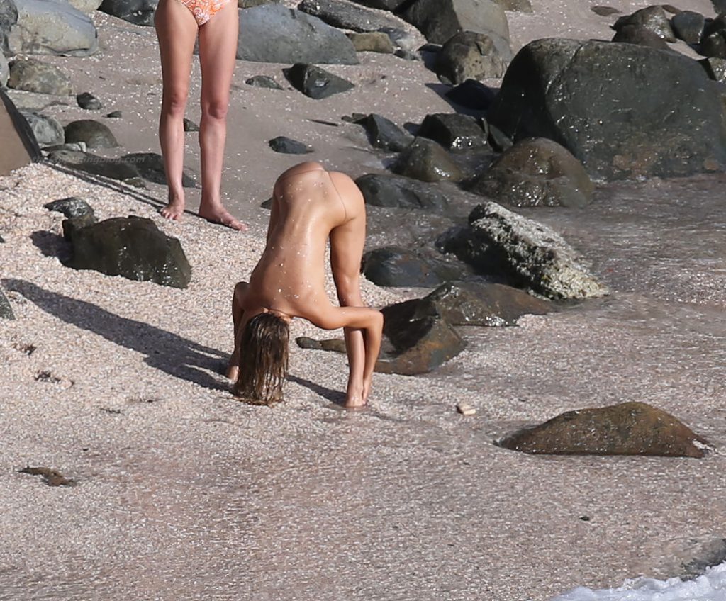 Influencer, bailarina y estrella de las redes sociales Alexis Ren calienta la playa en St Barth con un pequeño bikini y muestra sus tetas desnudas para todos los fanáticos al final de este año, 30/12/2020.