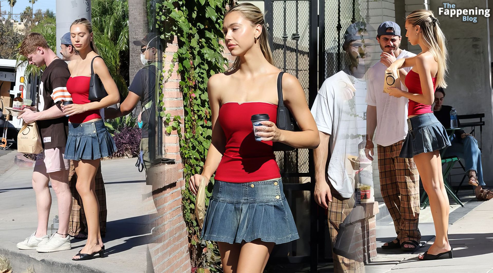 Prepárate para quedar impresionado con el look espectacular de Alexis Ren en Studio City, luciendo una minifalda y un top tubo que resaltan sus piernas increíbles y sus pechos ardientes.