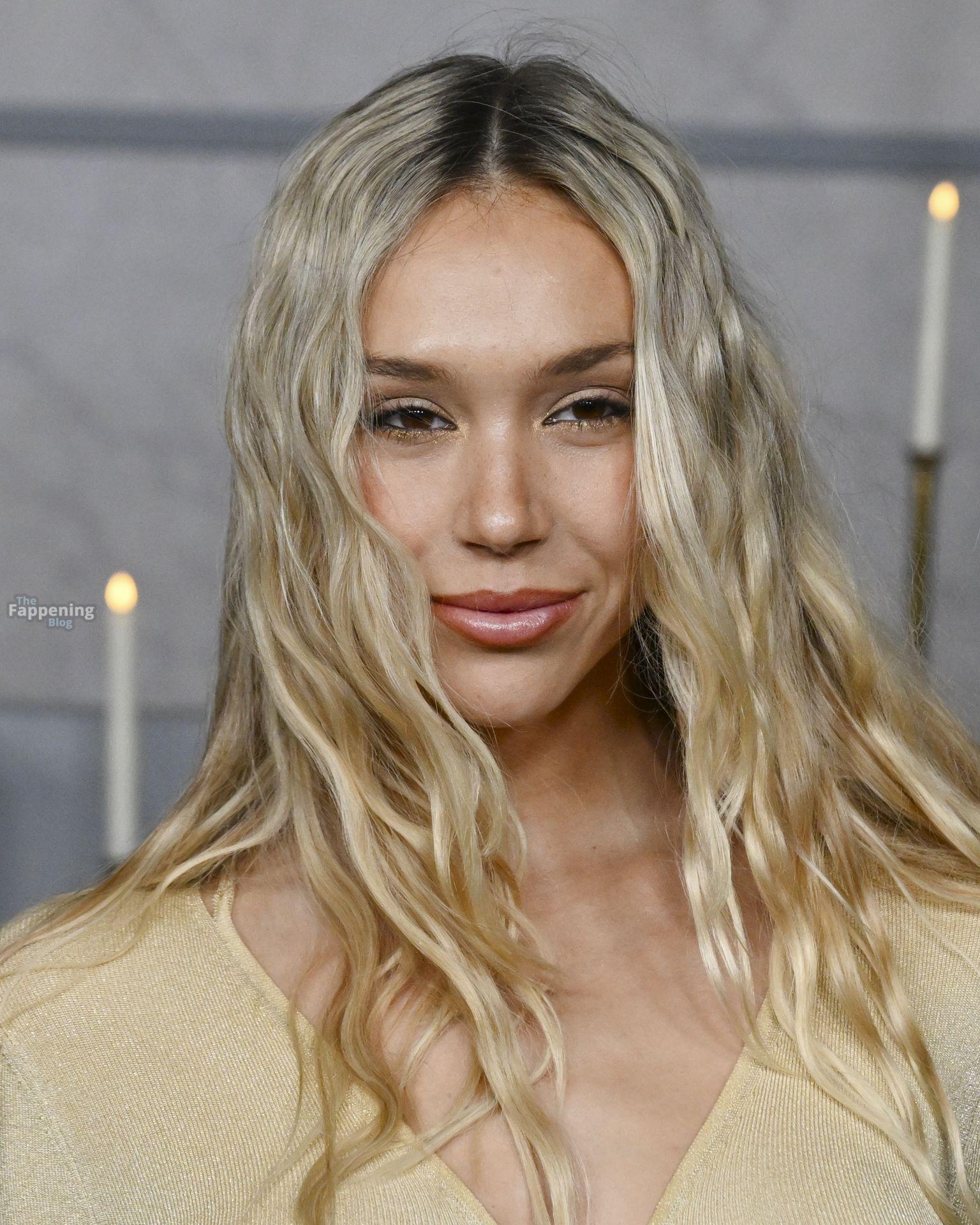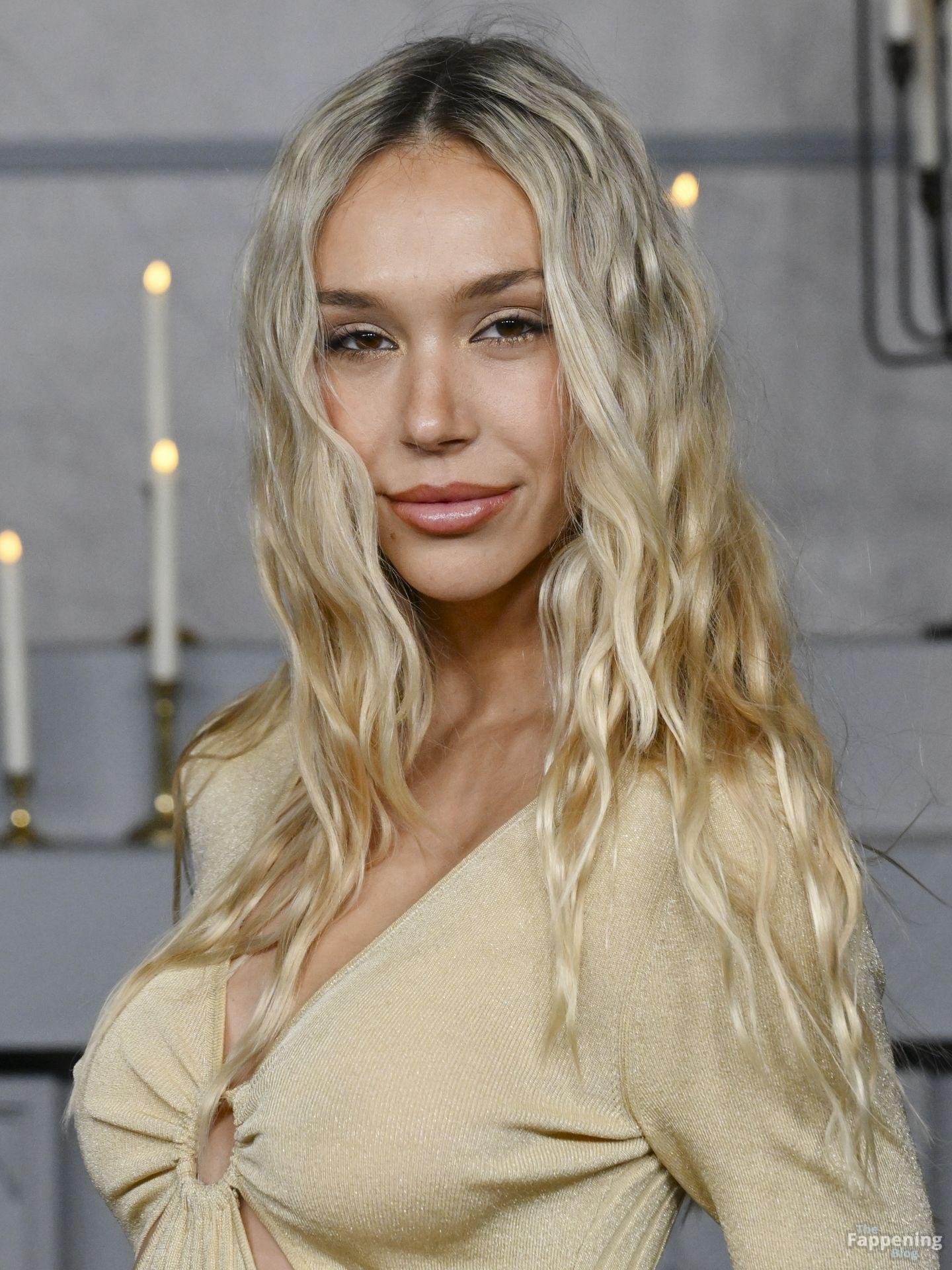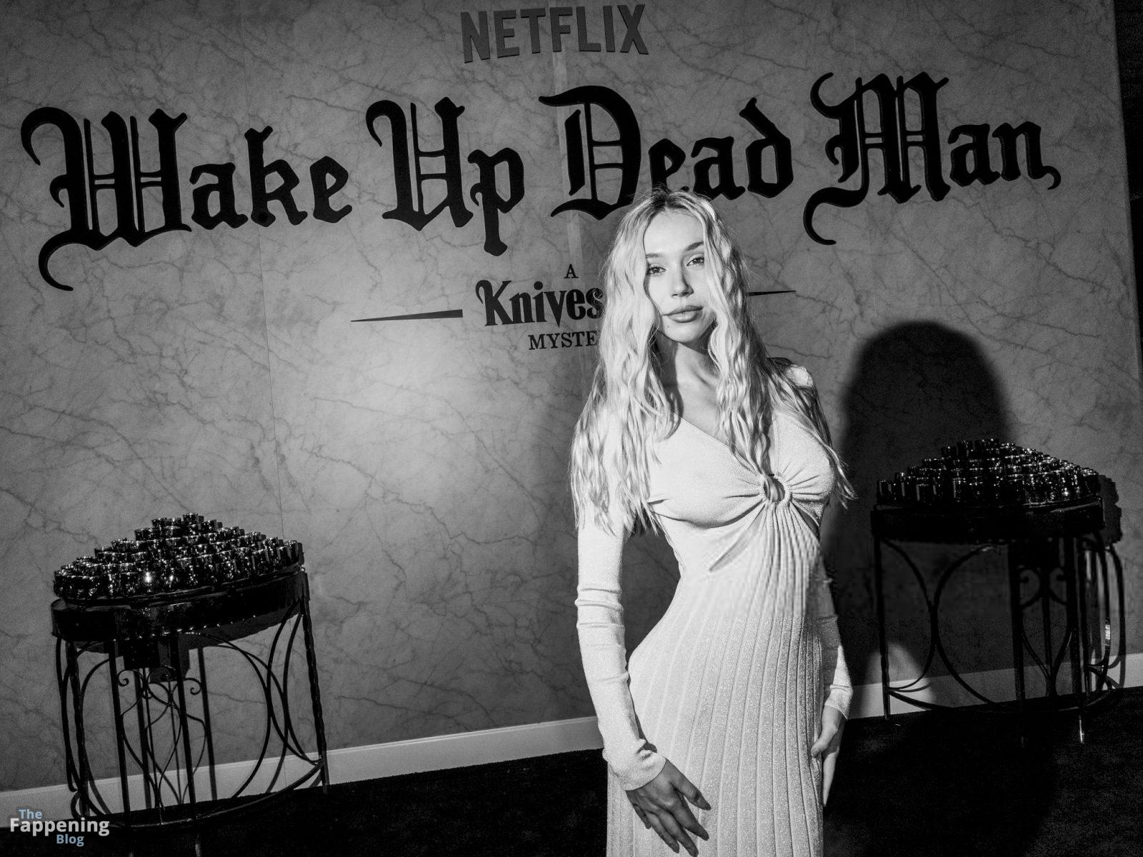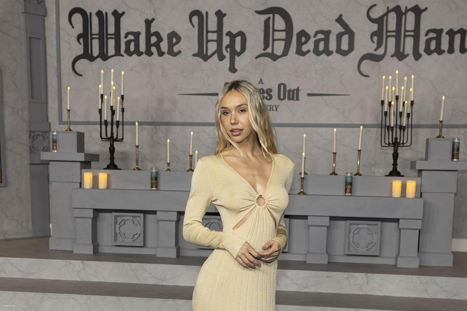 Alexis Ren luce espectacular con un vestido ajustado con recortes en el estreno en Los Ángeles de ‘Wake Up Dead Man: A Knives Out Mystery”.