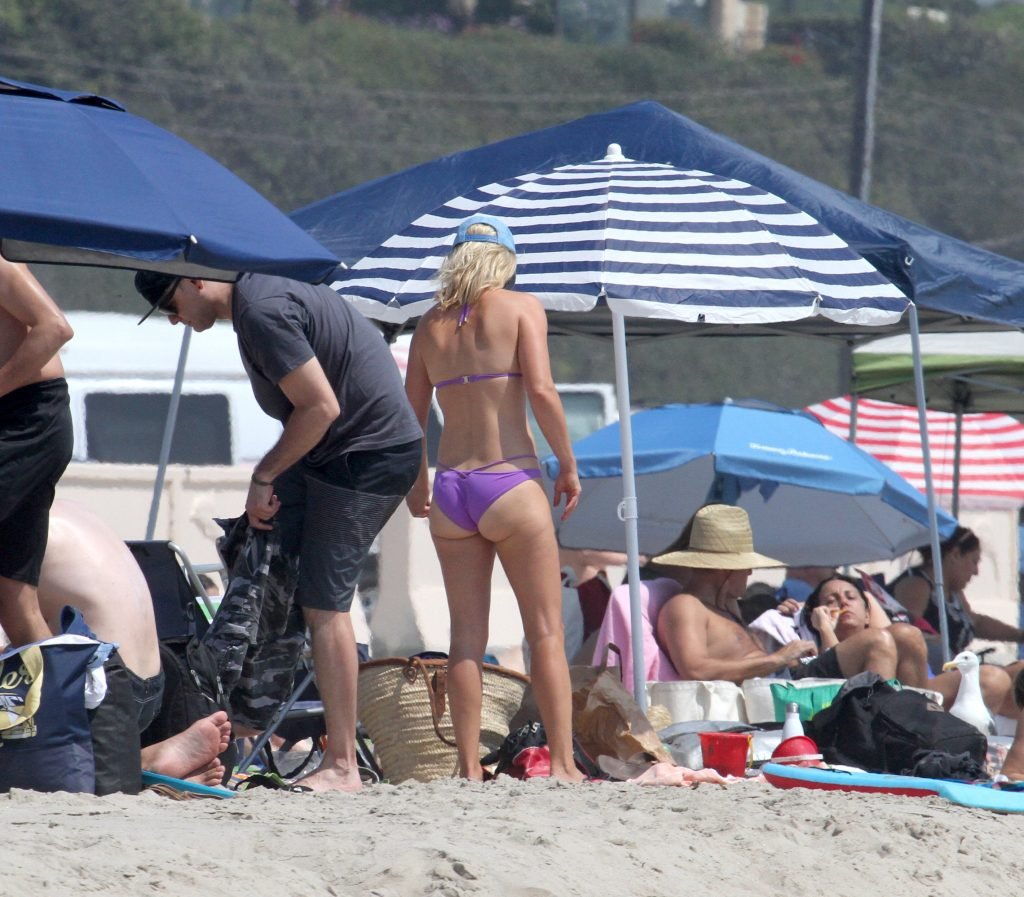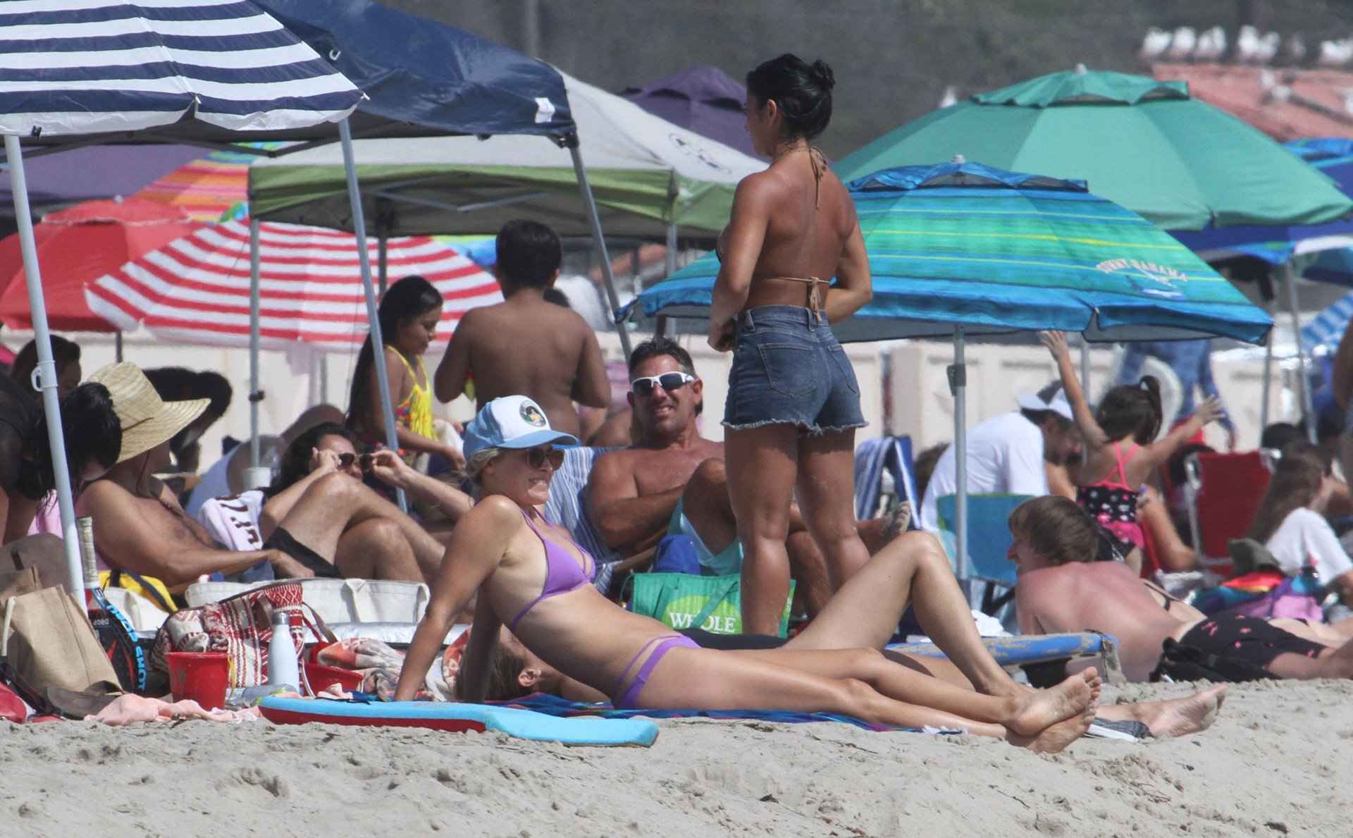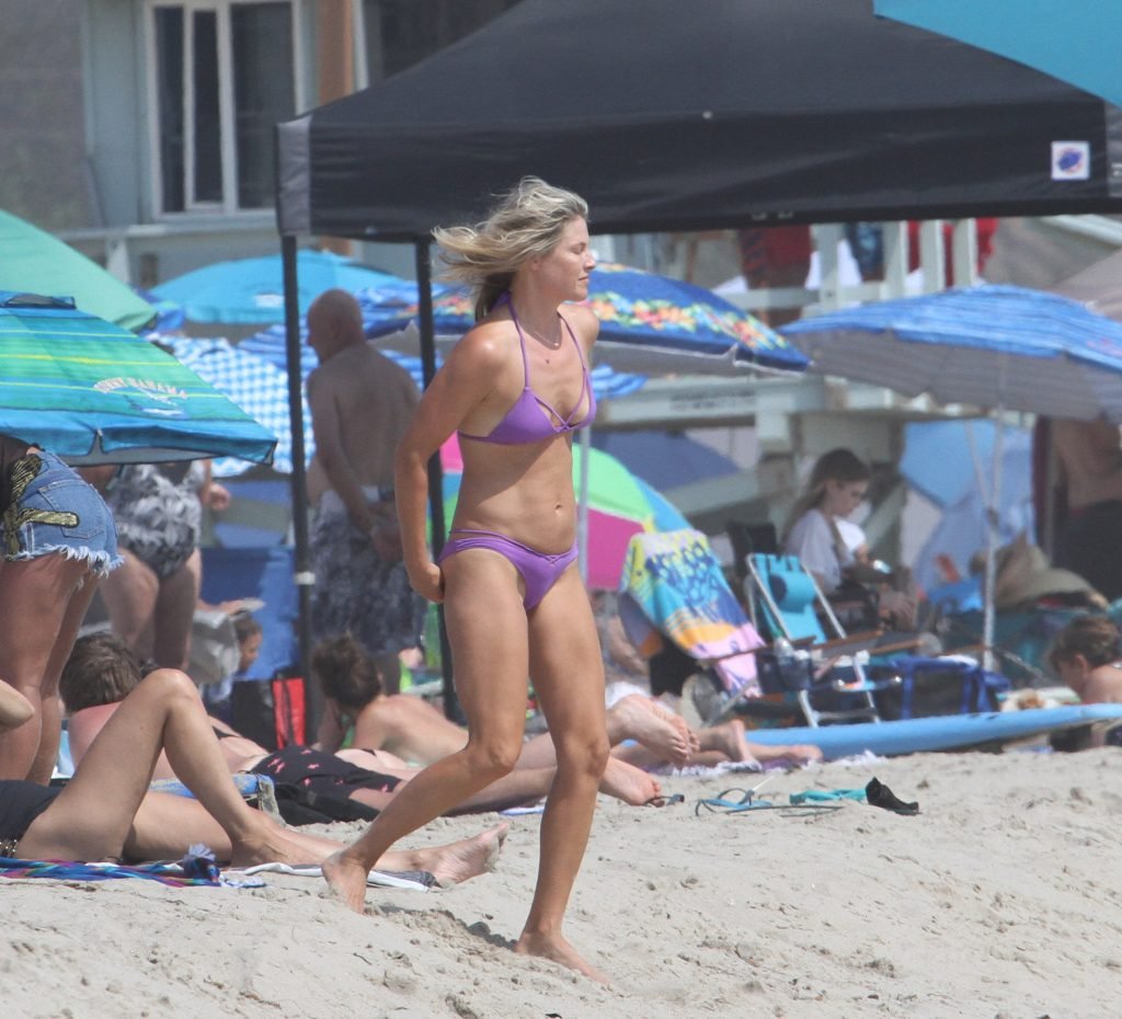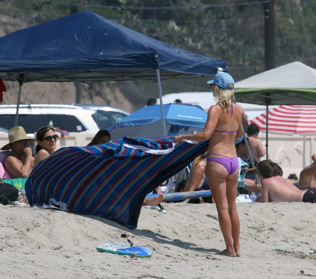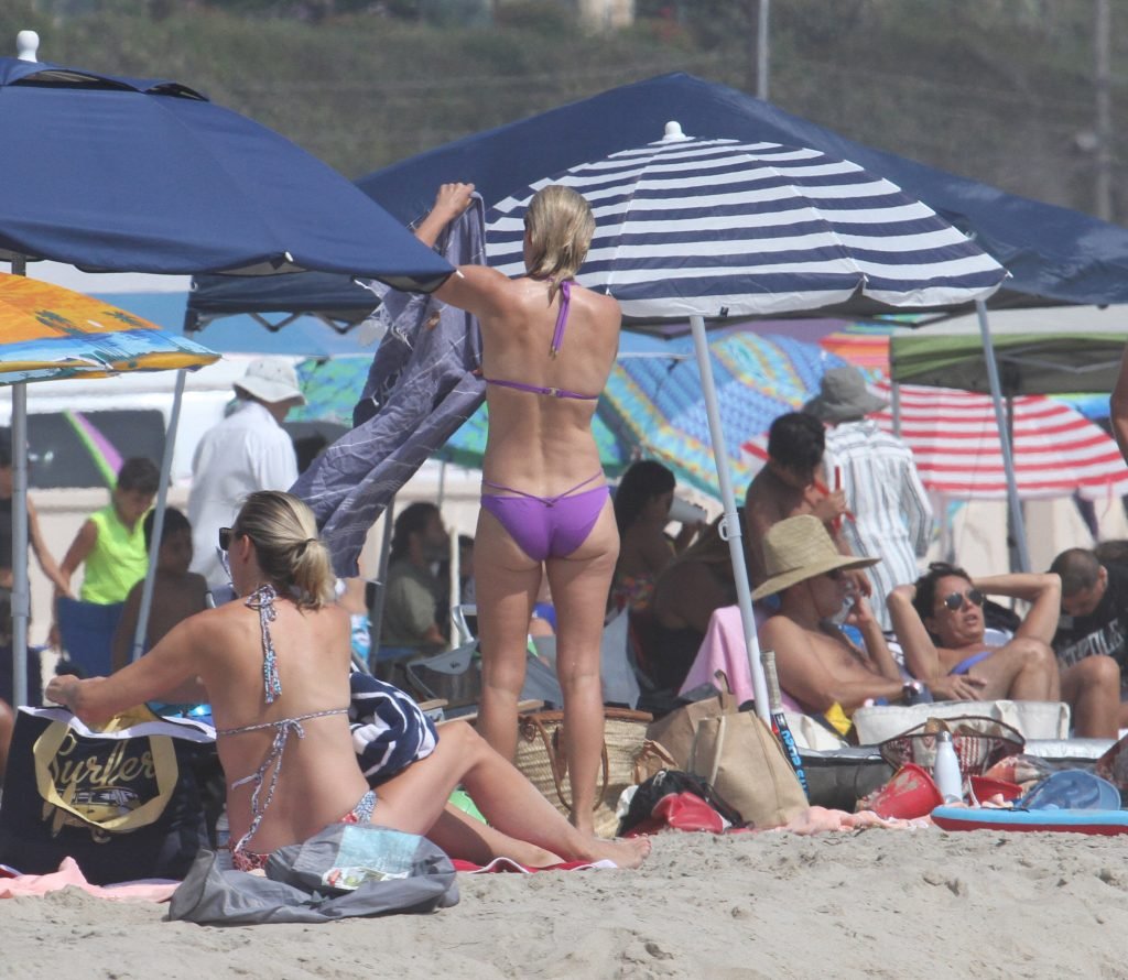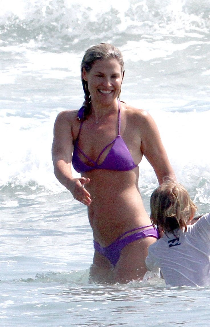 Ali Larter fue vista usando un bikini haciendo caras divertidas mientras se aplicaba aceite de loción bronceadora, nadando en el océano con sus hijos y su esposo Hayes MacArthur en la playa de Malibu, 14/08/2018. Alison Elizabeth (Ali) Larter es una actriz estadounidense y exmodelo. Edad: 42.