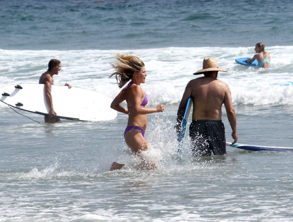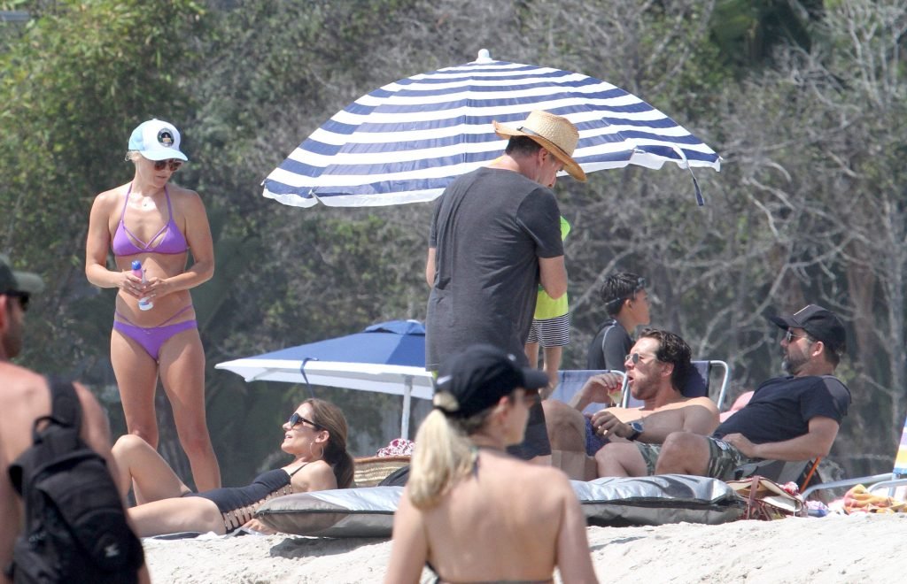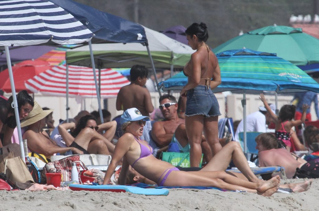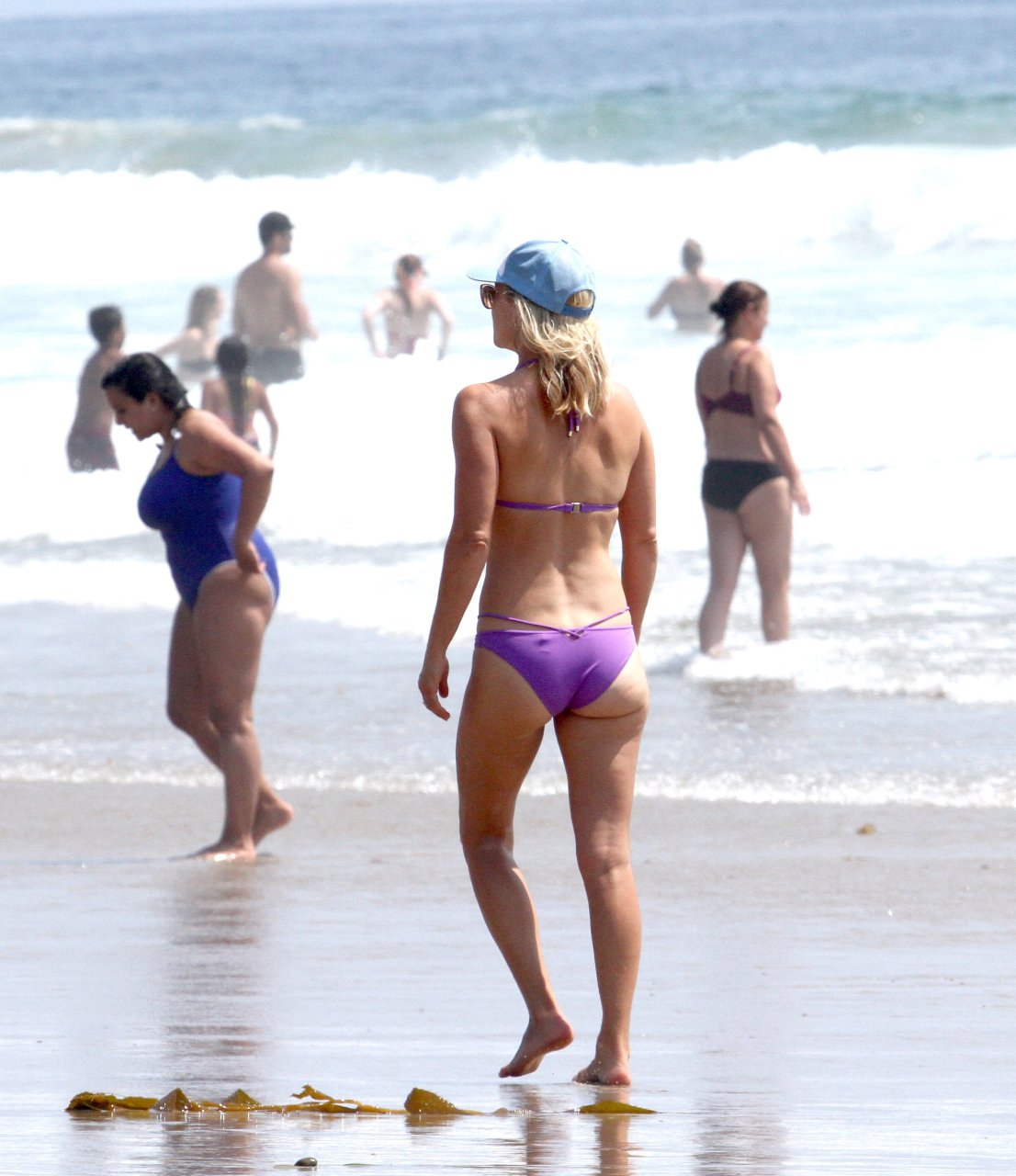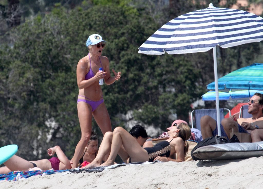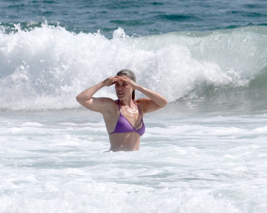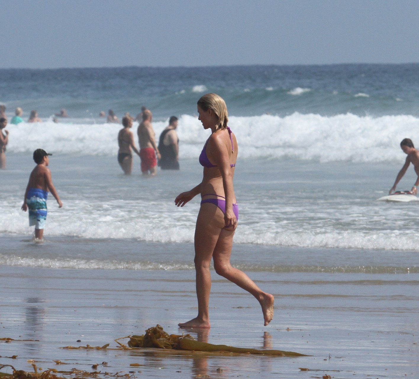 Ali Larter fue vista usando un bikini haciendo caras divertidas mientras se aplicaba aceite de loción bronceadora, nadando en el océano con sus hijos y su esposo Hayes MacArthur en la playa de Malibu, 14/08/2018. Alison Elizabeth (Ali) Larter es una actriz estadounidense y exmodelo. Edad: 42.