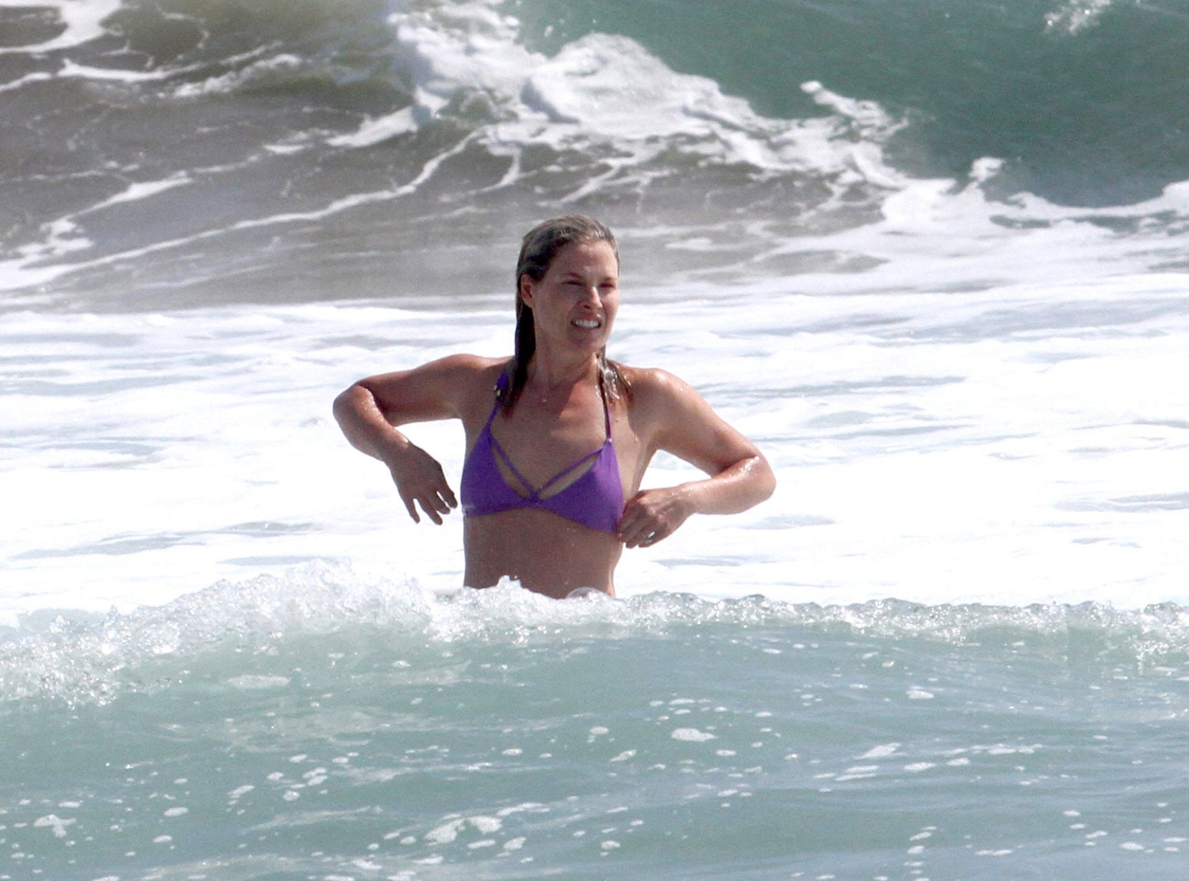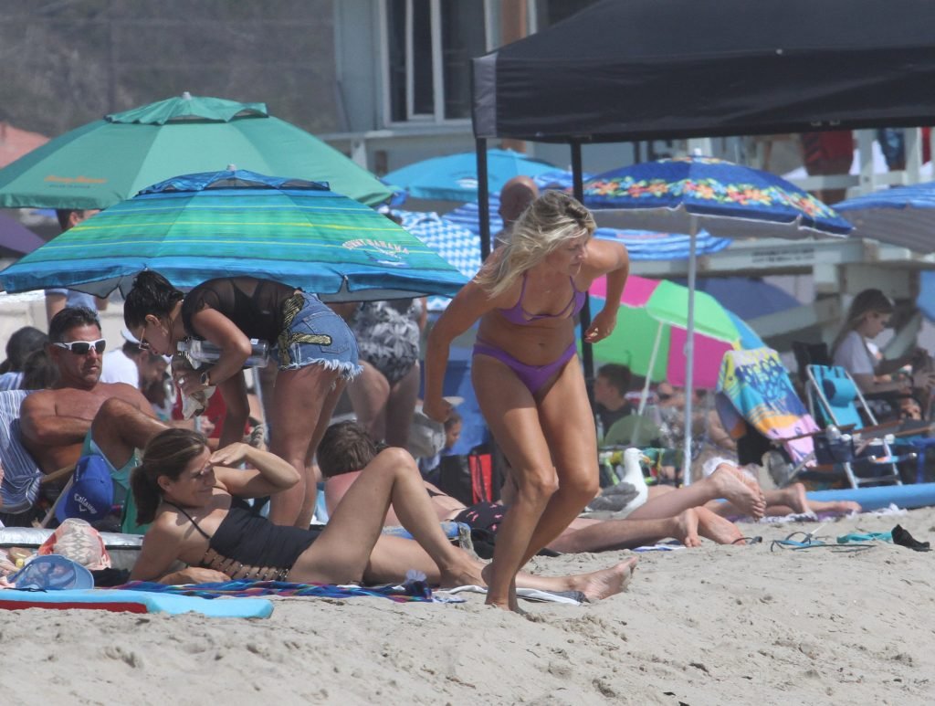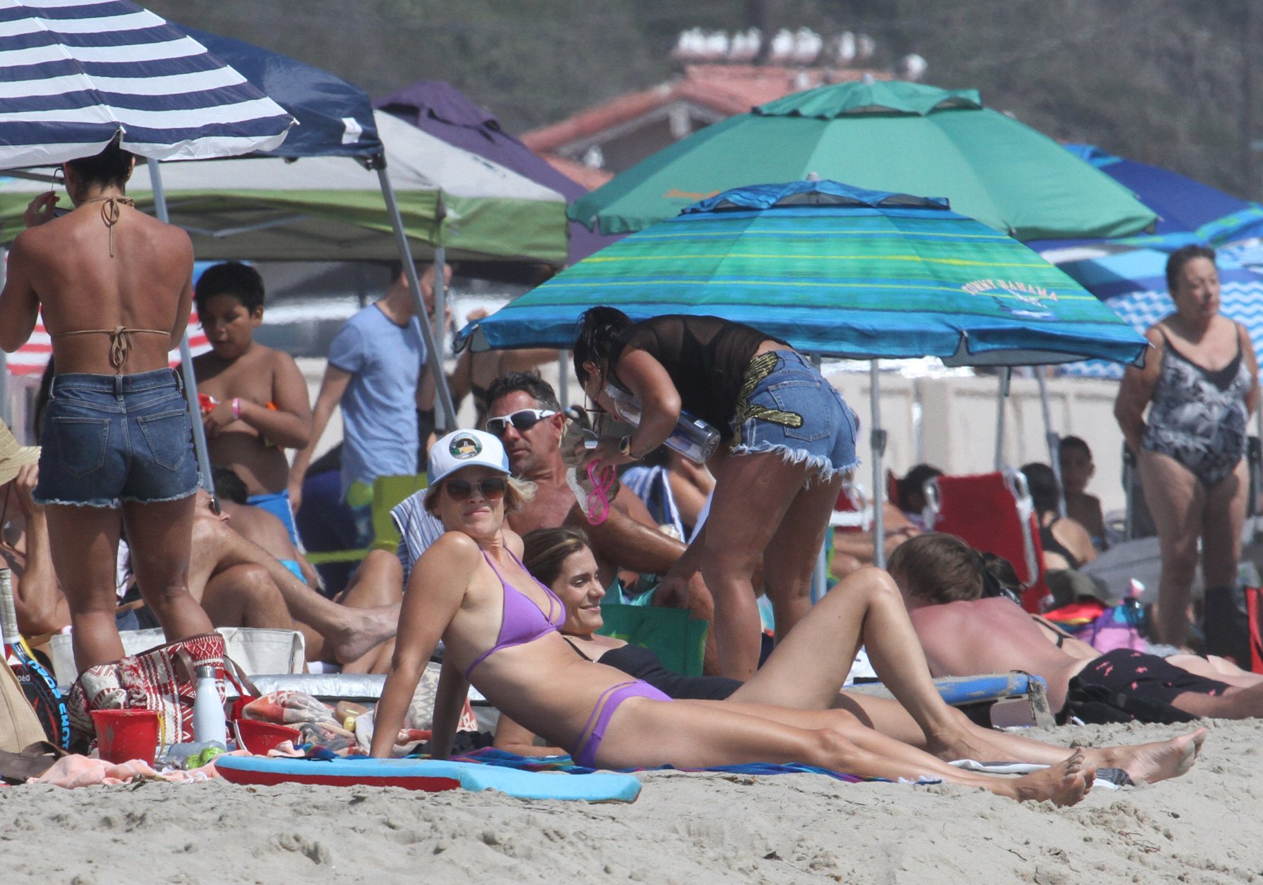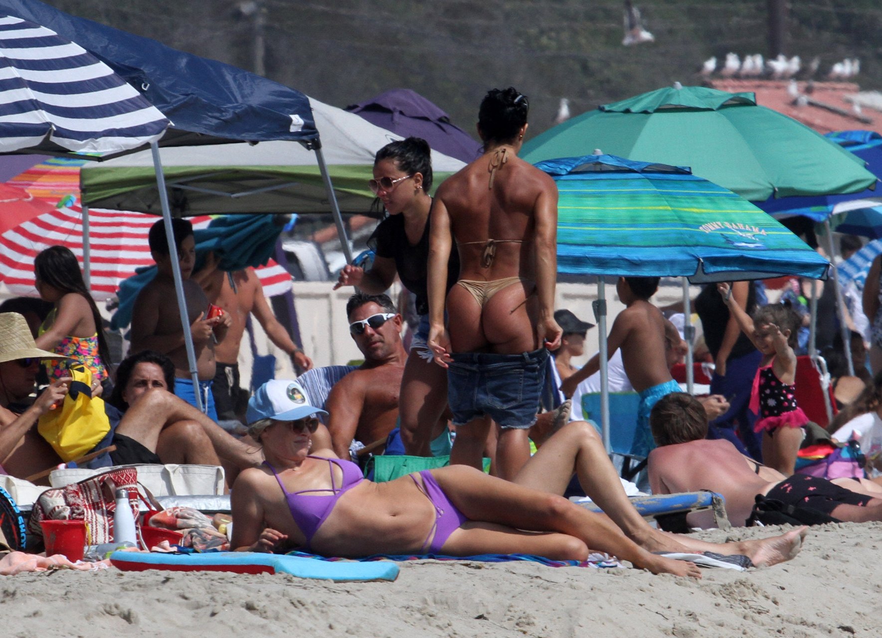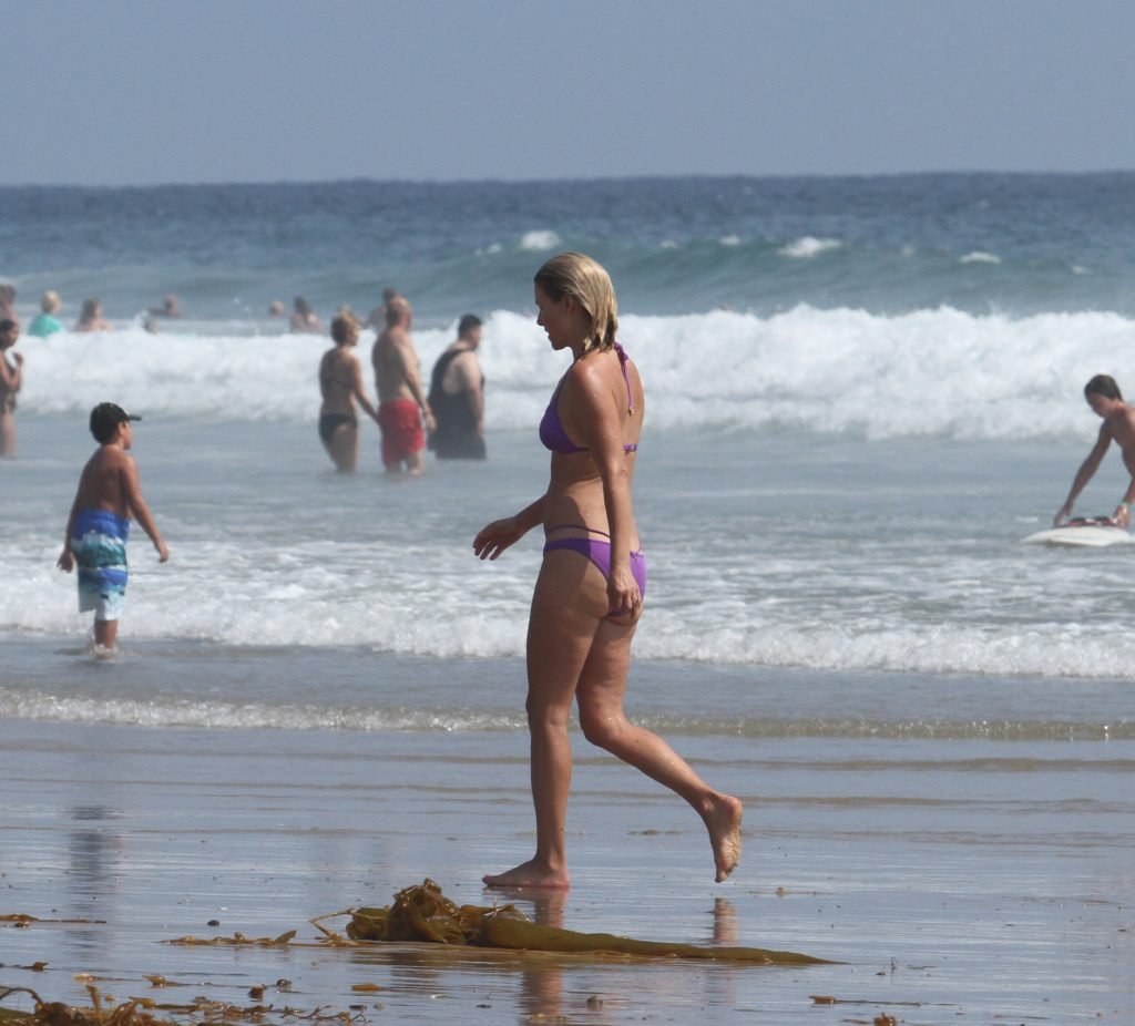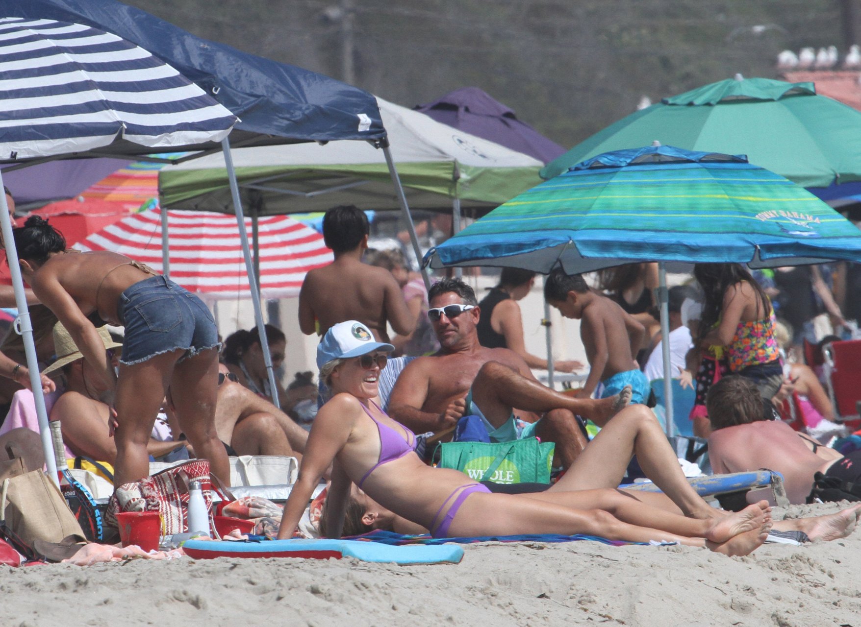 Ali Larter fue vista usando un bikini haciendo caras divertidas mientras se aplicaba aceite de loción bronceadora, nadando en el océano con sus hijos y su esposo Hayes MacArthur en la playa de Malibu, 14/08/2018. Alison Elizabeth (Ali) Larter es una actriz estadounidense y exmodelo. Edad: 42.