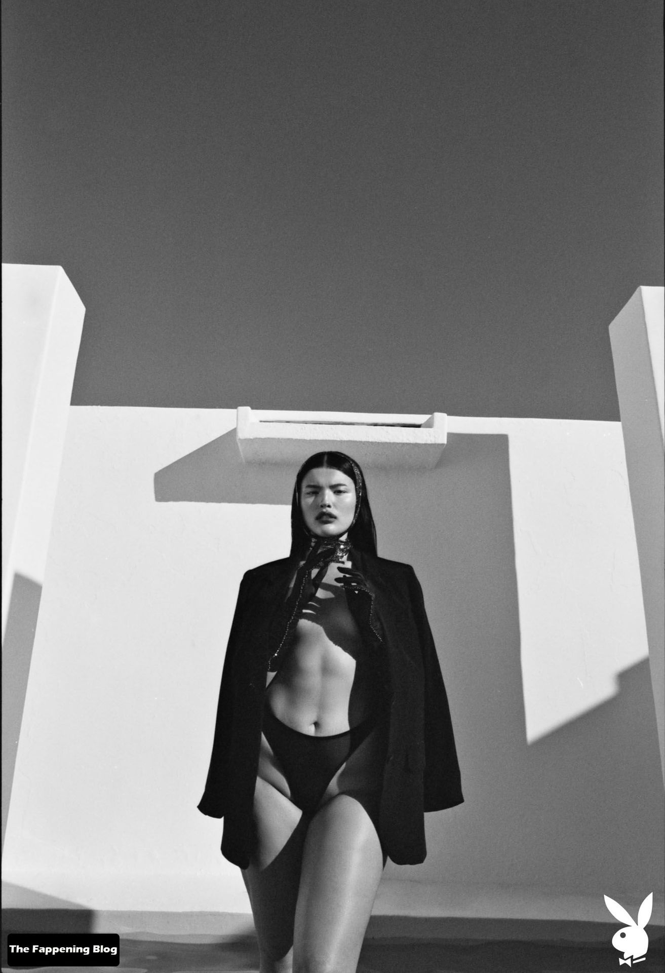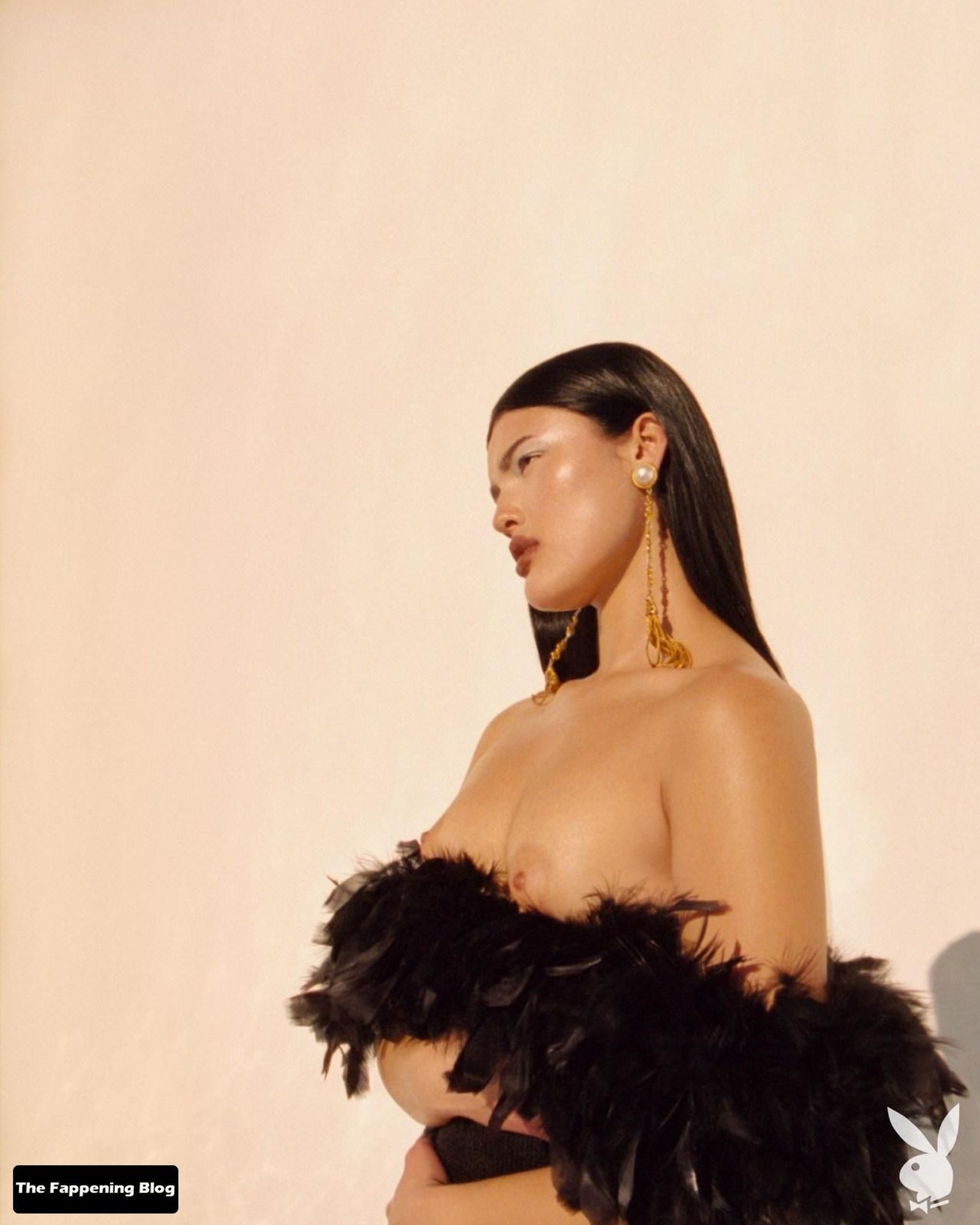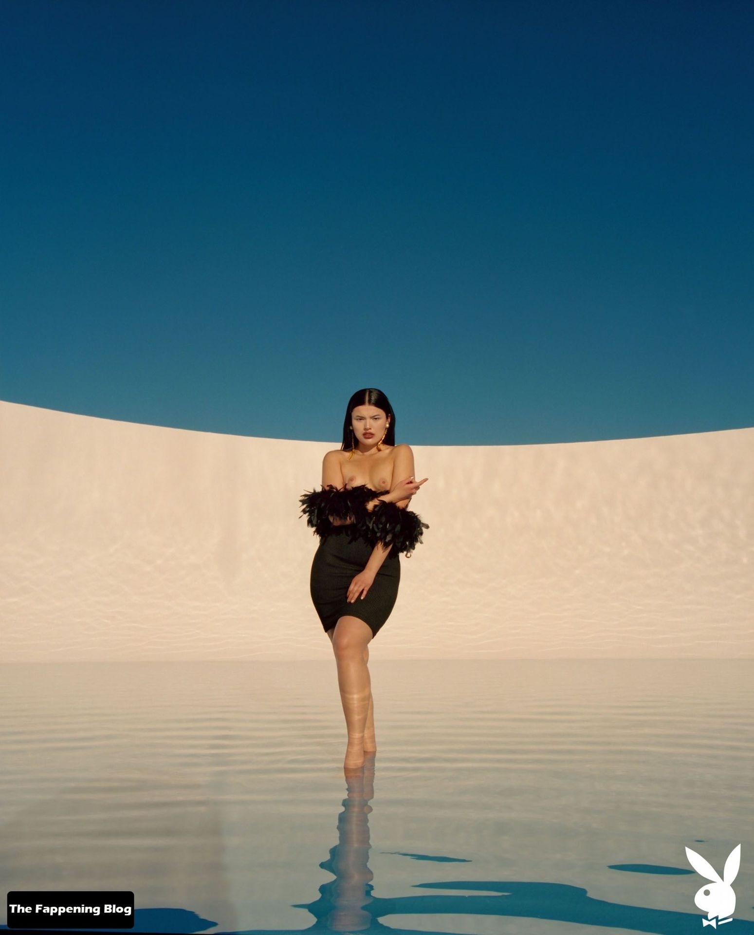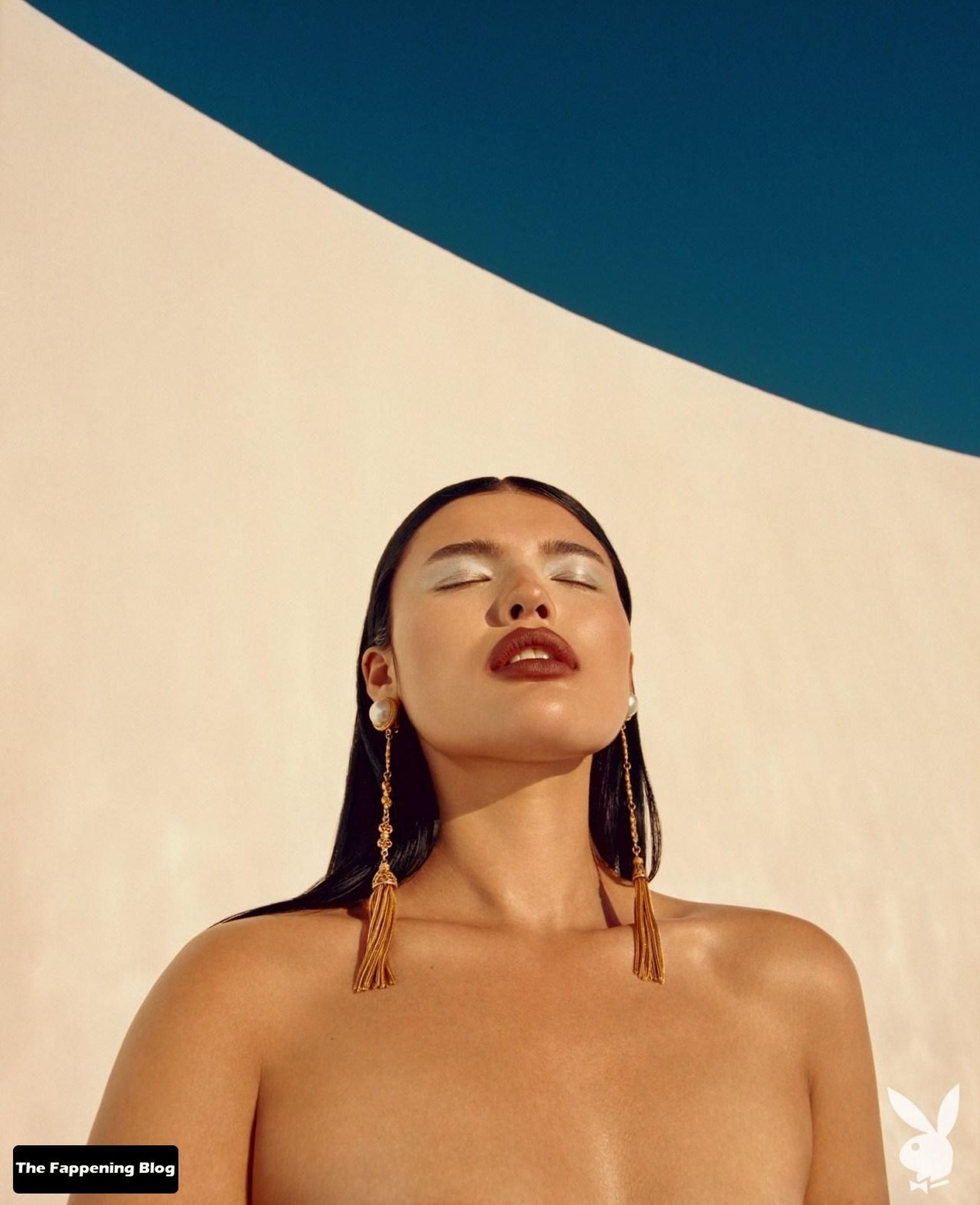La hermosa morena Alicia Loraina Olivas muestra sus pequeños pechos desnudos, posando en una sesión fotográfica de Sasha Samsonova para Playboy.