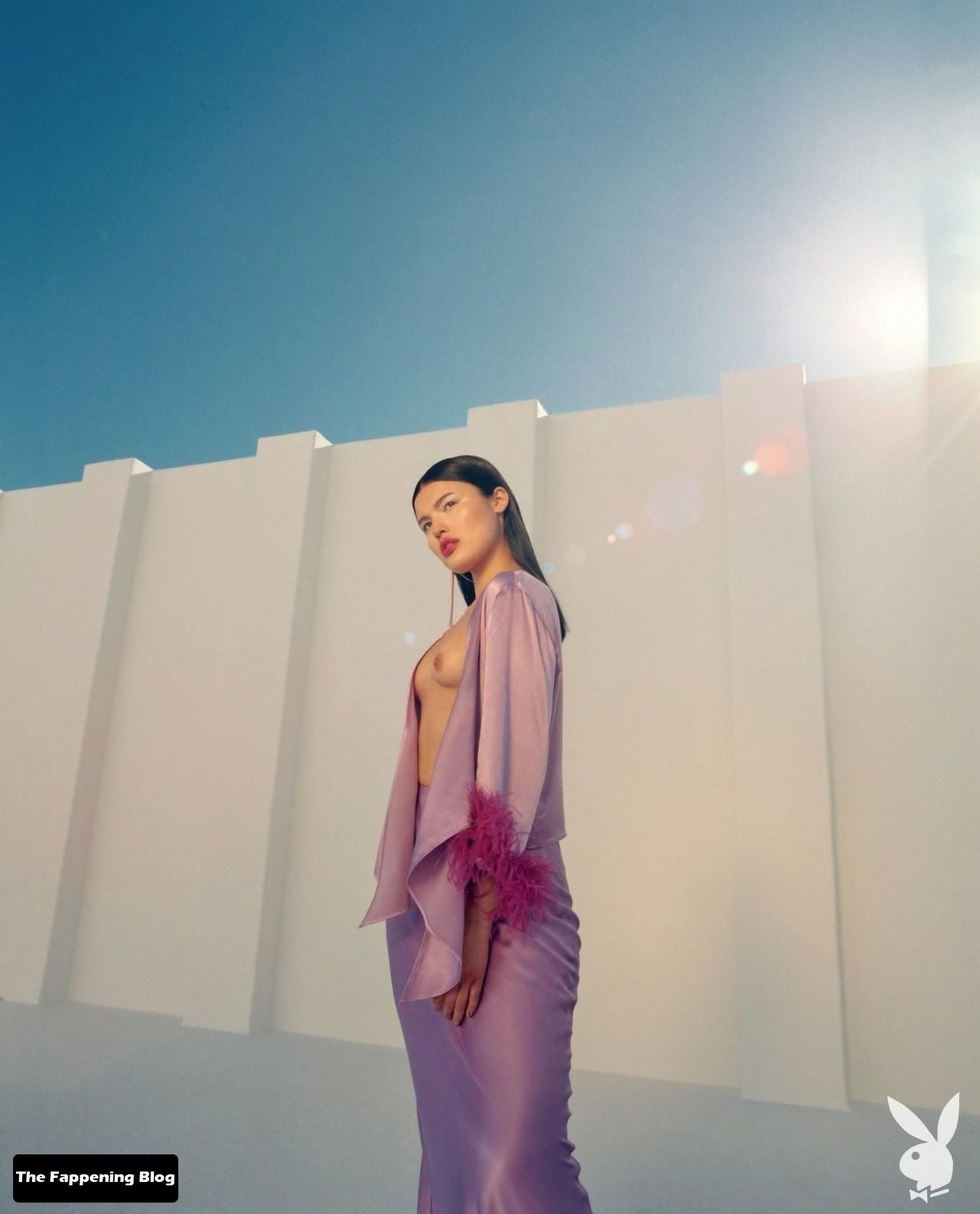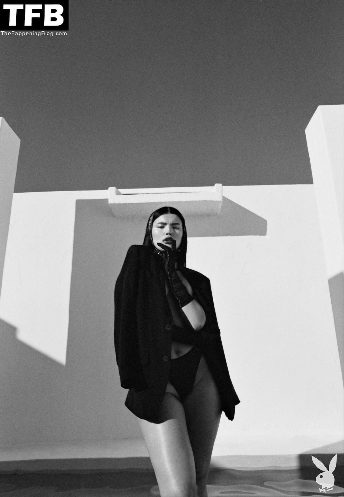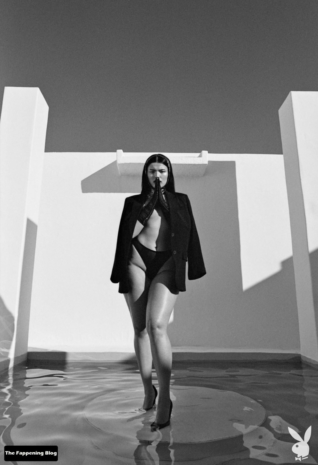La hermosa morena Alicia Loraina Olivas muestra sus pequeños pechos desnudos, posando en una sesión fotográfica de Sasha Samsonova para Playboy.