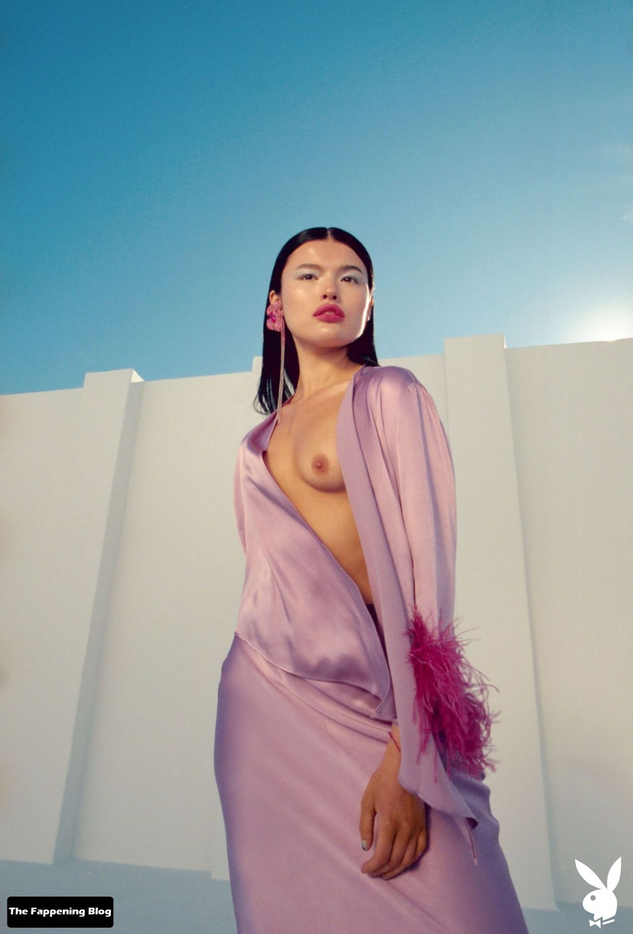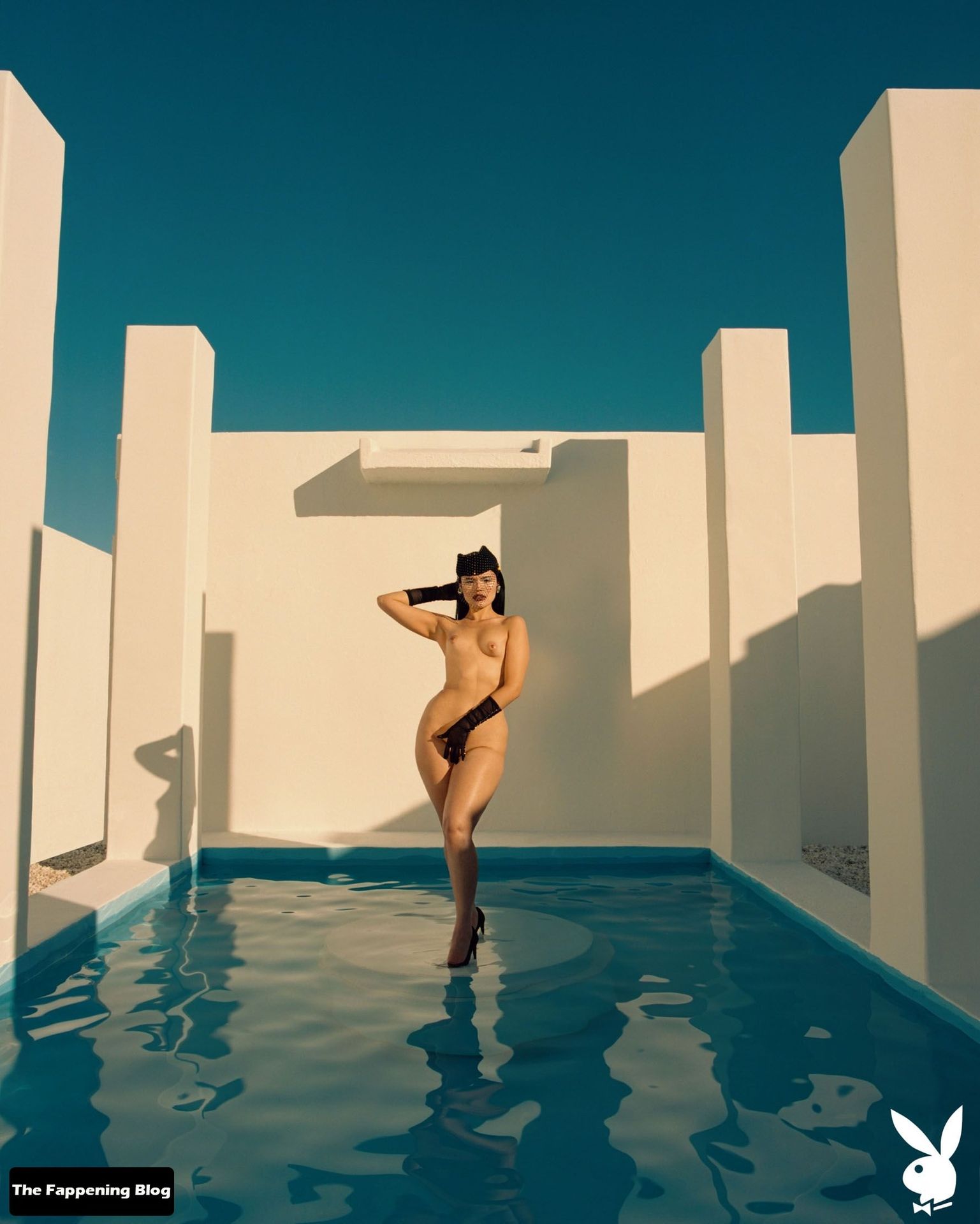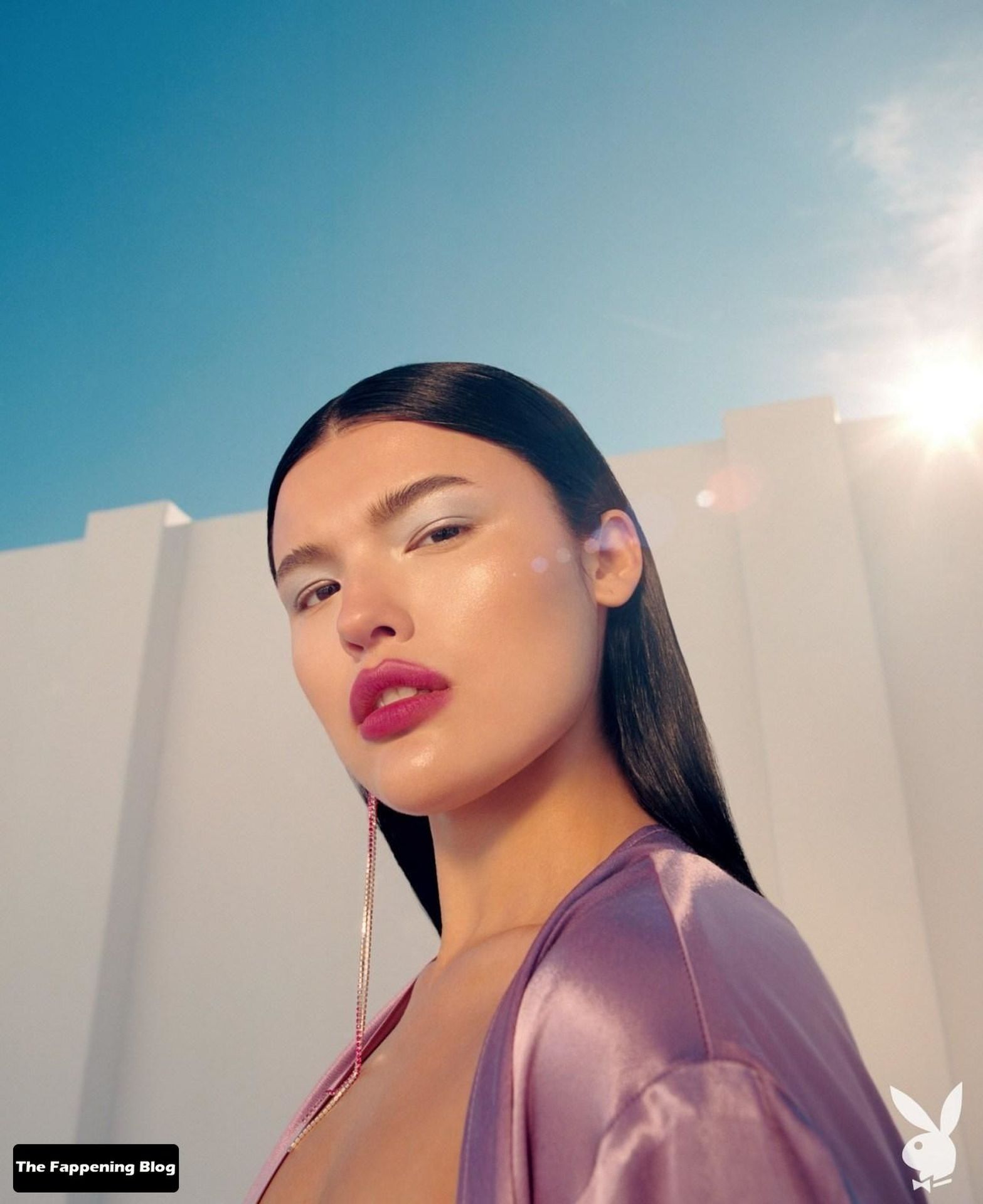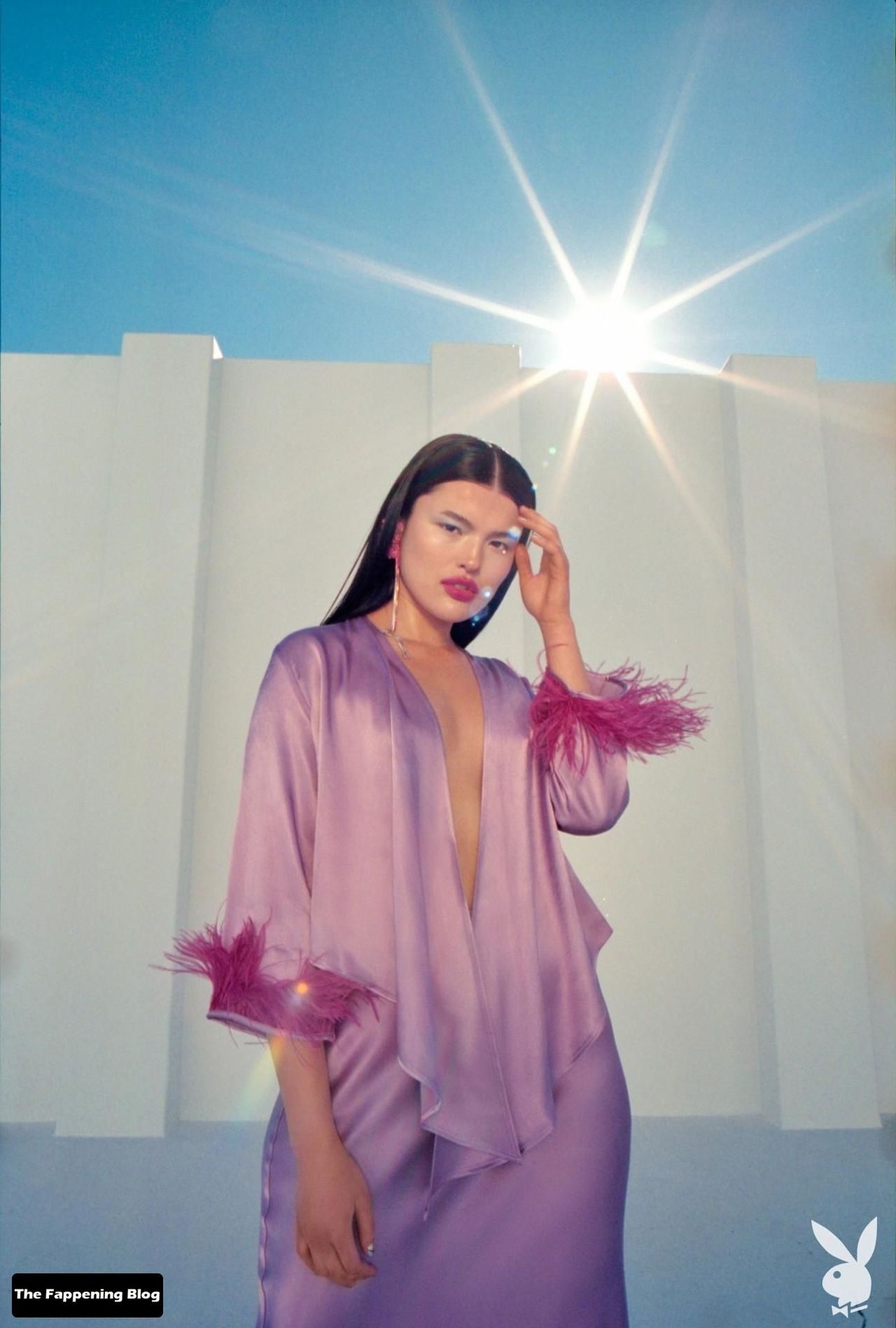 La hermosa morena Alicia Loraina Olivas muestra sus pequeños pechos desnudos, posando en una sesión fotográfica de Sasha Samsonova para Playboy.