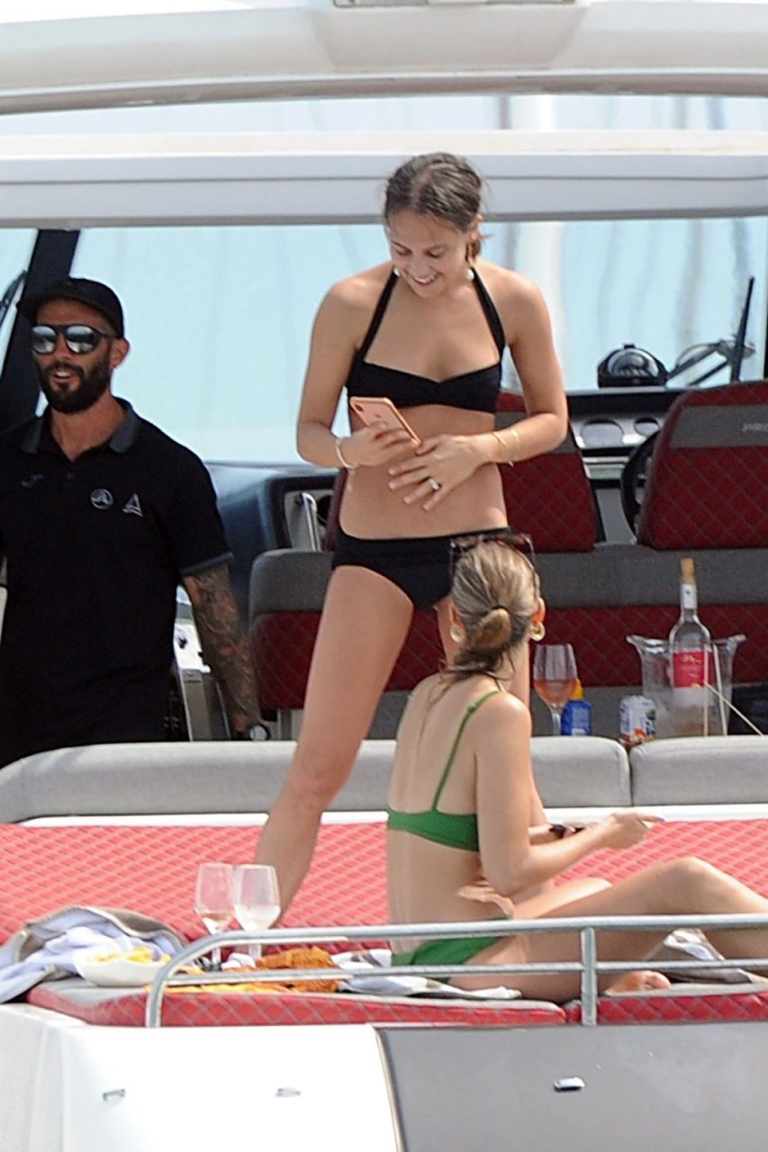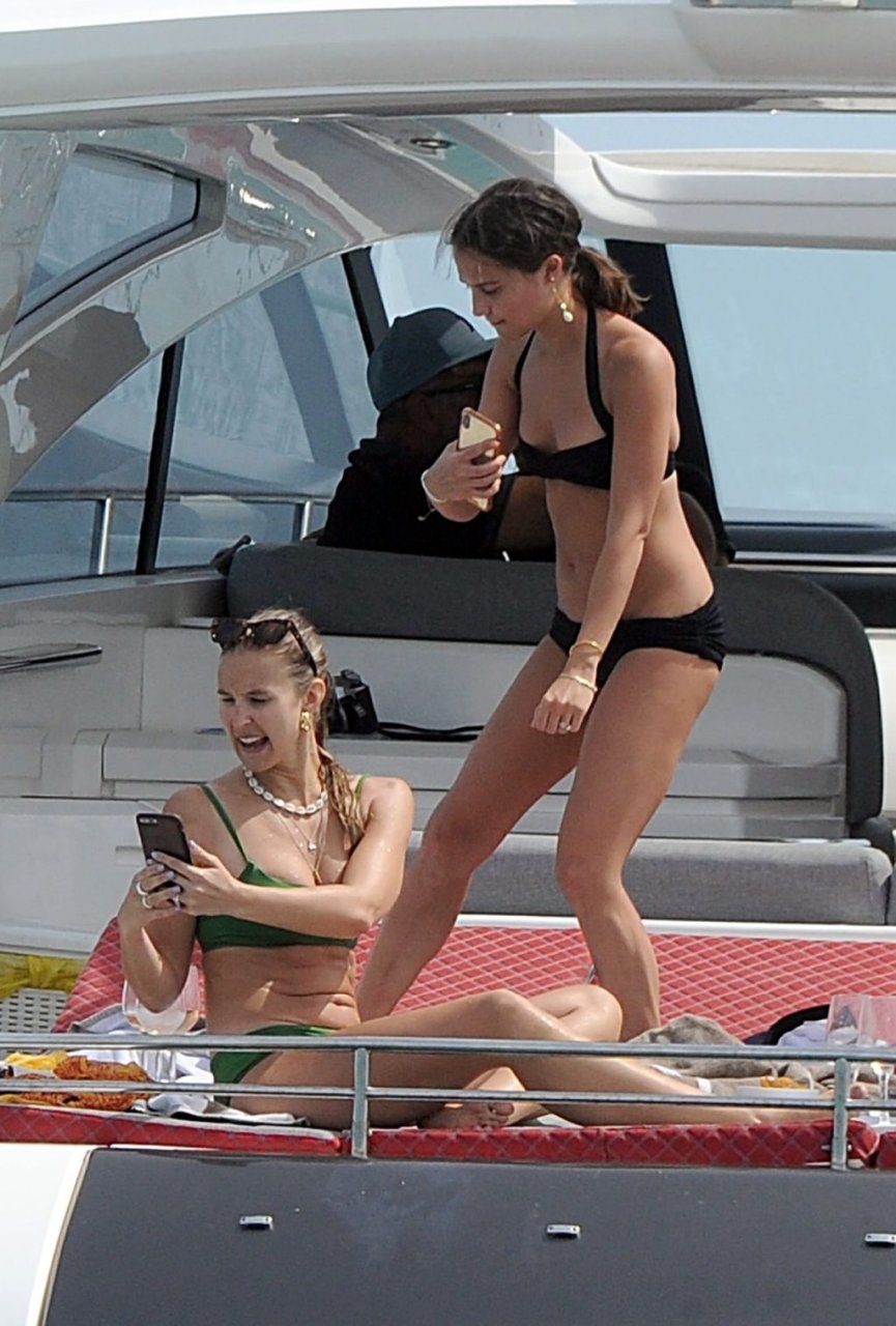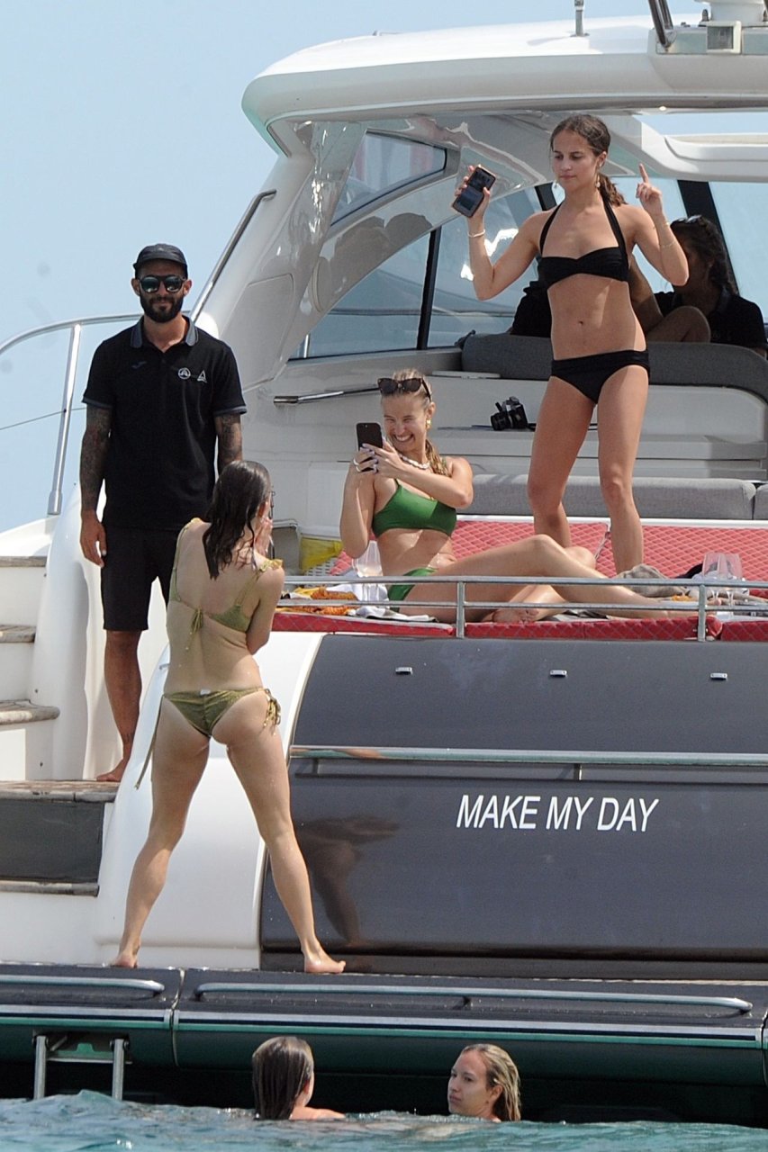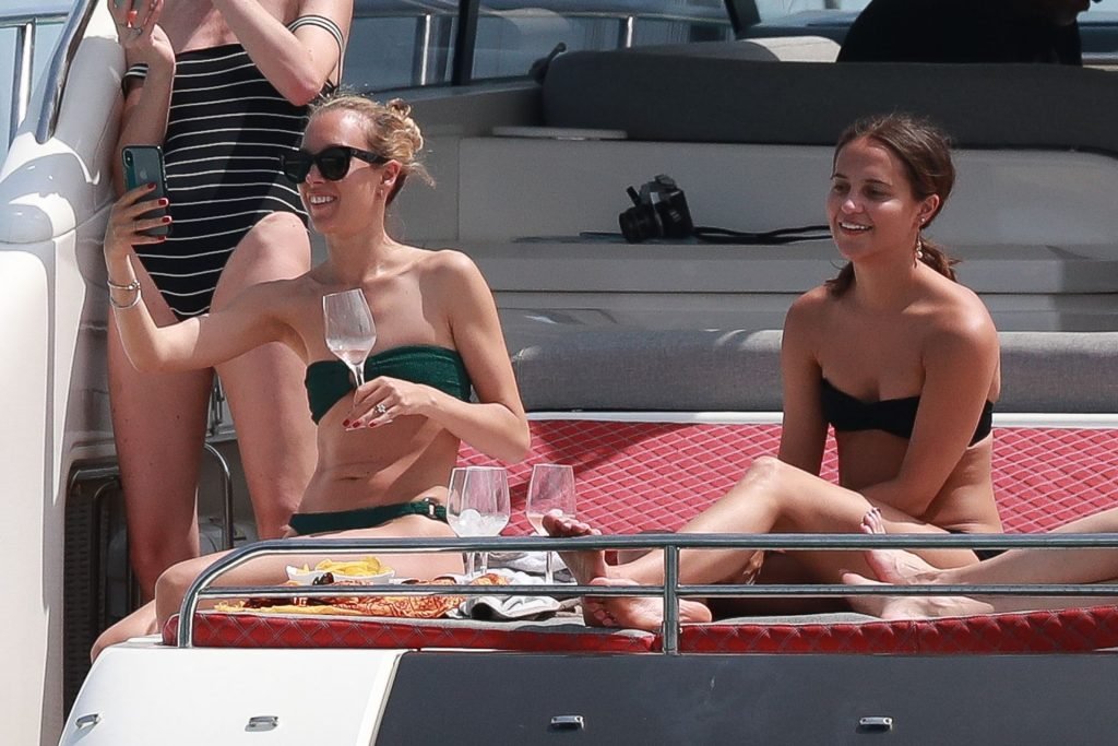 Alicia Vikander disfruta de un día en un bote mientras pasa sus vacaciones en Formentera, 23/05/2019. La actriz de 30 años fue vista con un pequeño bikini negro junto a sus amigos.