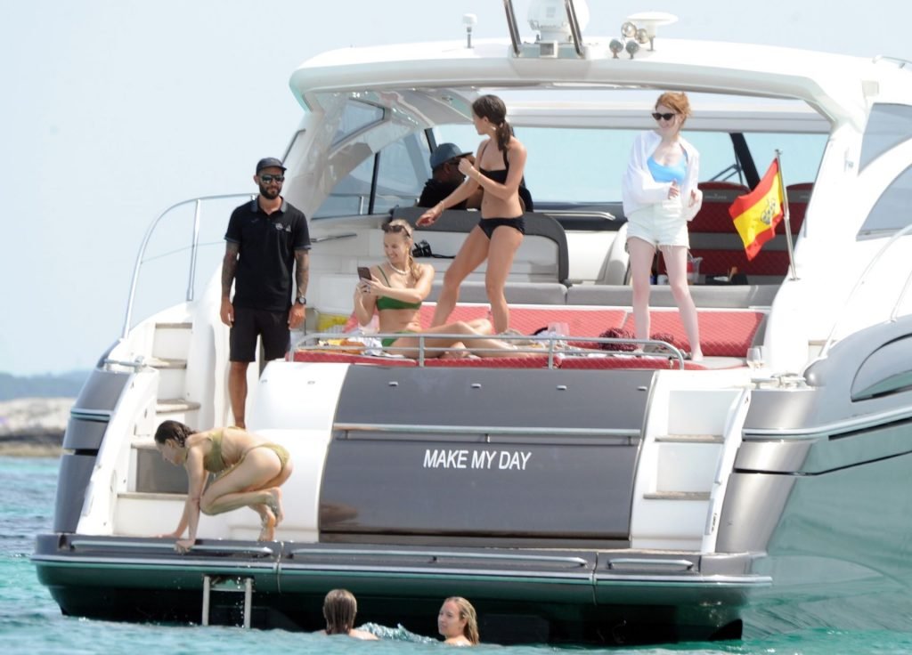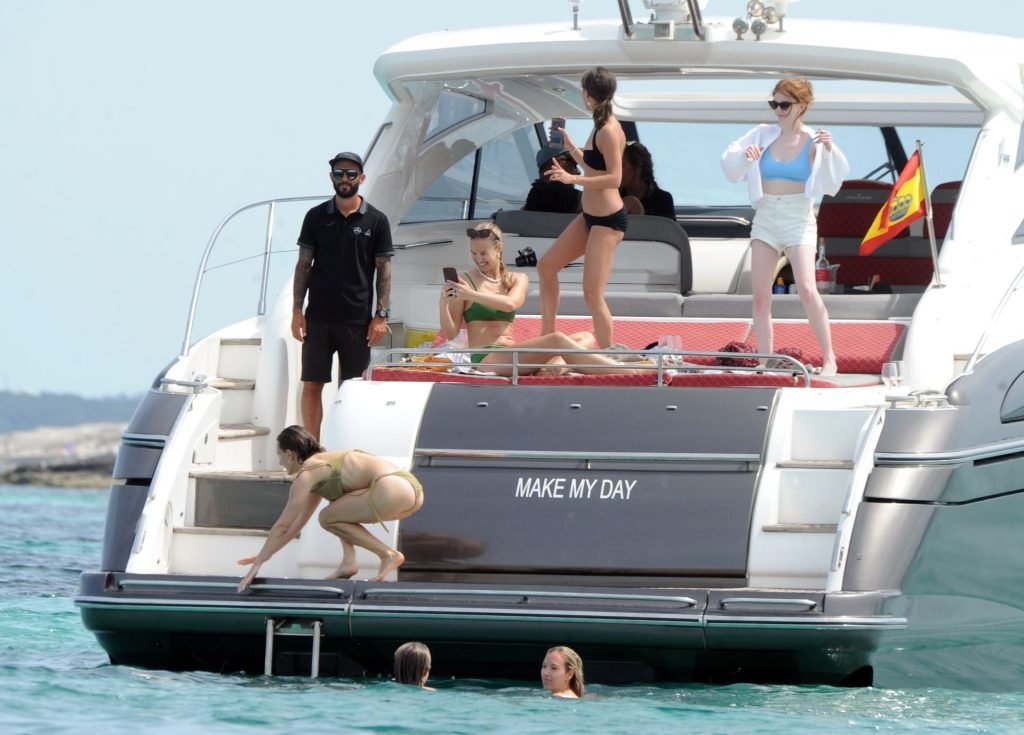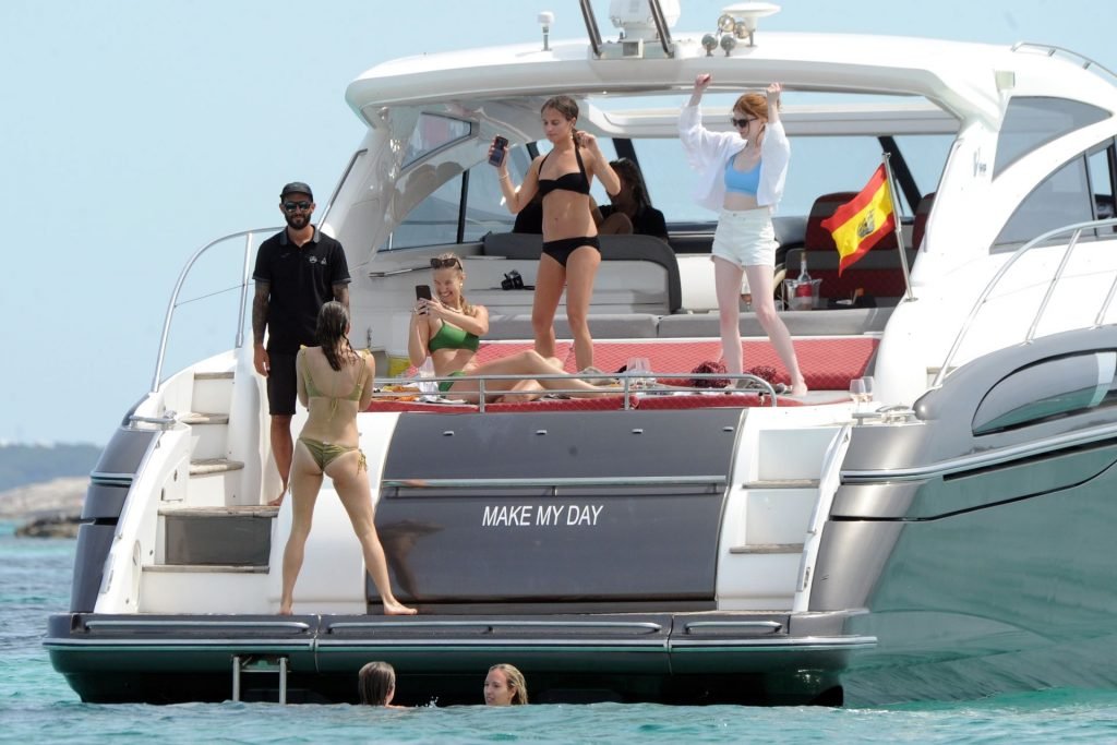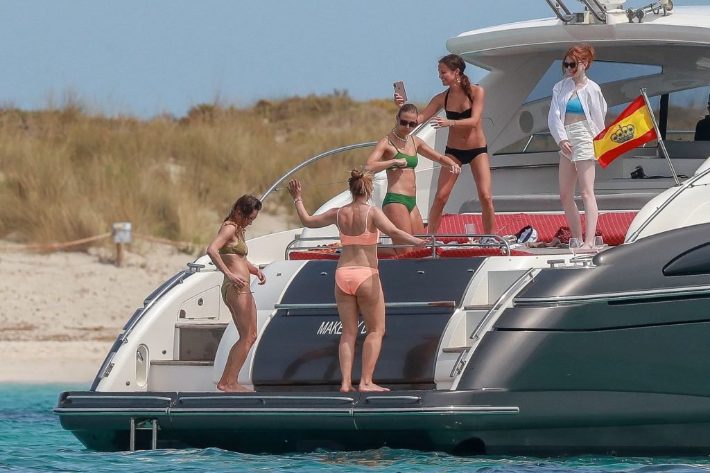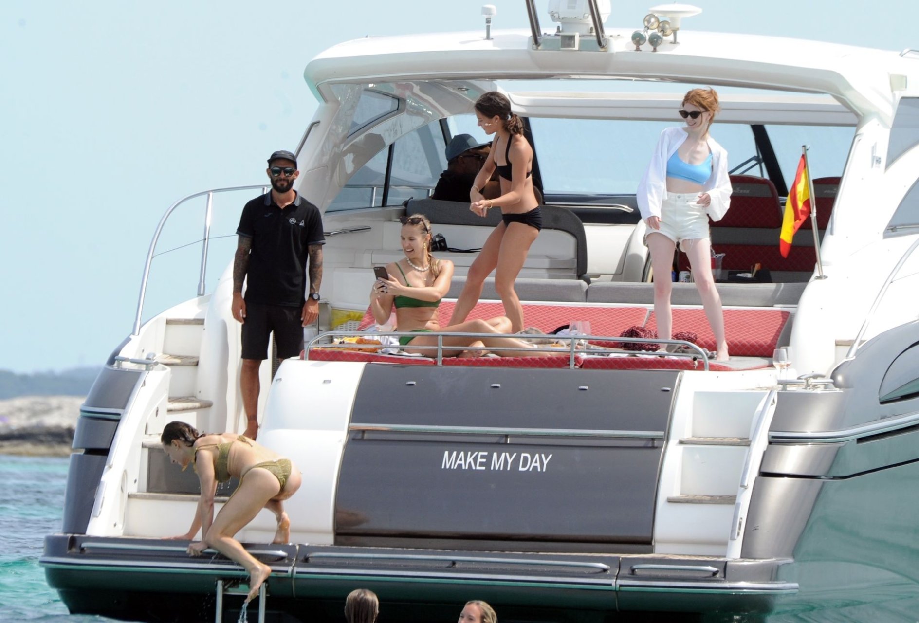 Alicia Vikander disfruta de un día en un bote mientras pasa sus vacaciones en Formentera, 23/05/2019. La actriz de 30 años fue vista con un pequeño bikini negro junto a sus amigos.