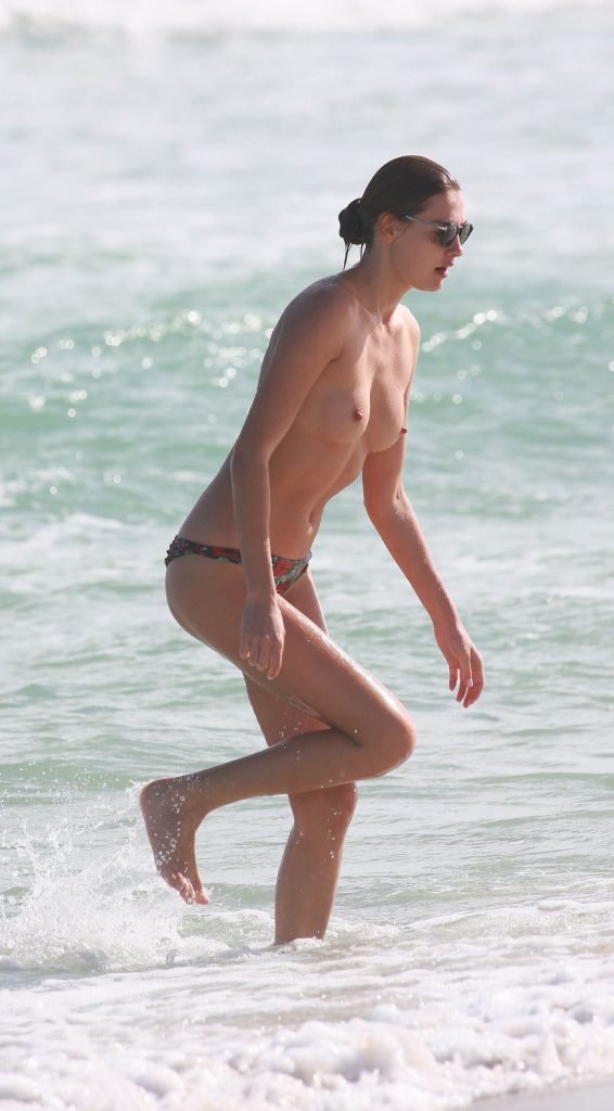 Alina Baikova nada en el océano vistiendo nada más que una pequeña parte inferior de bikini, 30/11/2016. Alina Baikova es una modelo de moda de Ucrania. Altura – 178 cm. Edad – 27 (nacida el 6 de septiembre de 1989).