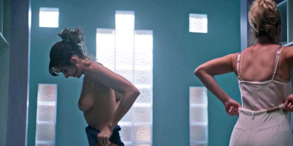 Then here is Alison Brie’s nude scene in which she premiered naked until her private photos leaked. She is in the locker room with some girls, and when she changes, she gives us a look at her breasts and round ass.