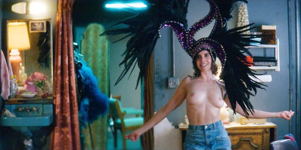 See The Fappening star Alison Brie topless in an edit in one more scene from this hot series! We can see our favorite nude celebrity wearing a festival feather on the head, she’s topless, and thanks to the directors, we can see Brie’s big natural boobs again! She’s joking and smiling, trying to cheer up her friend who’s crying in the dressing room!
