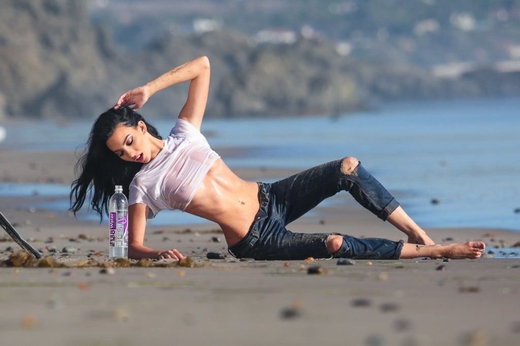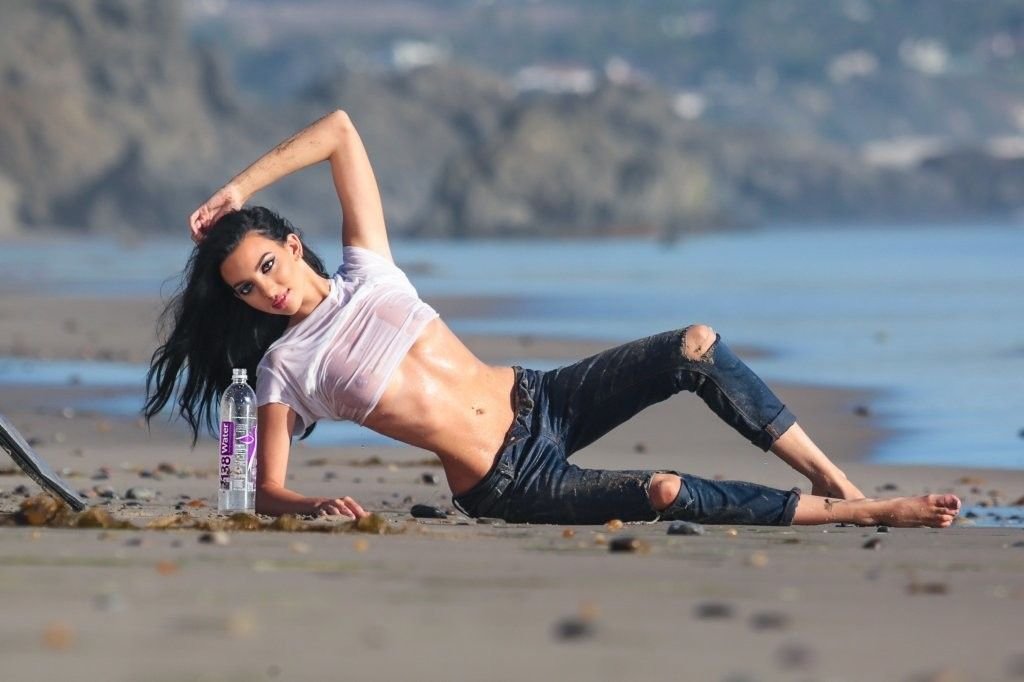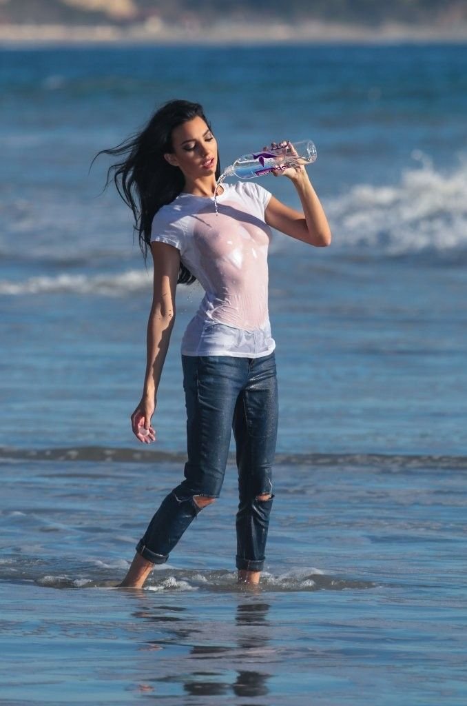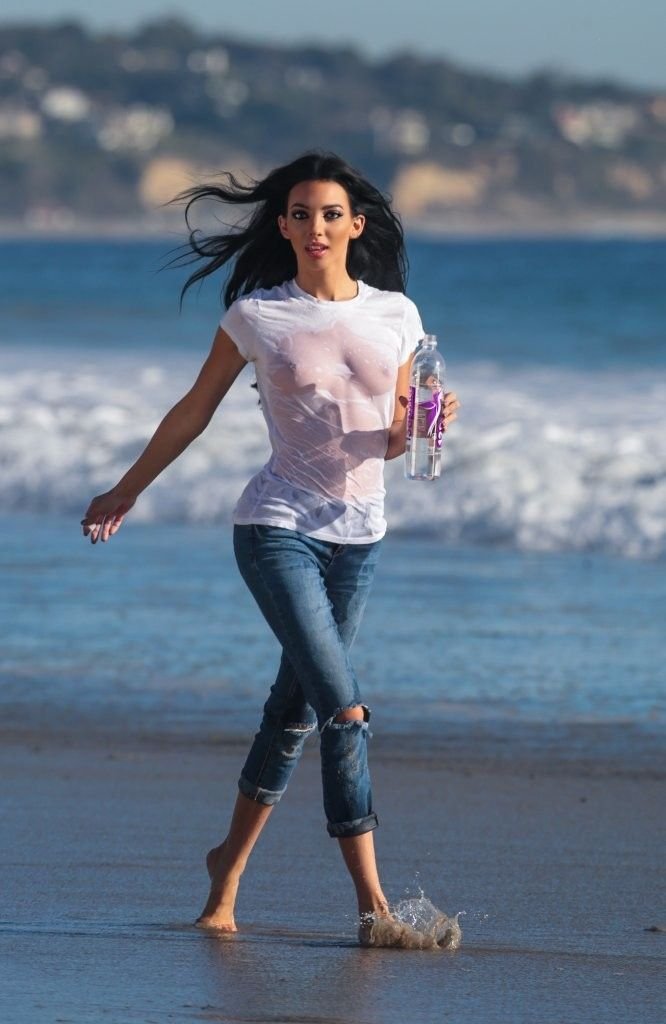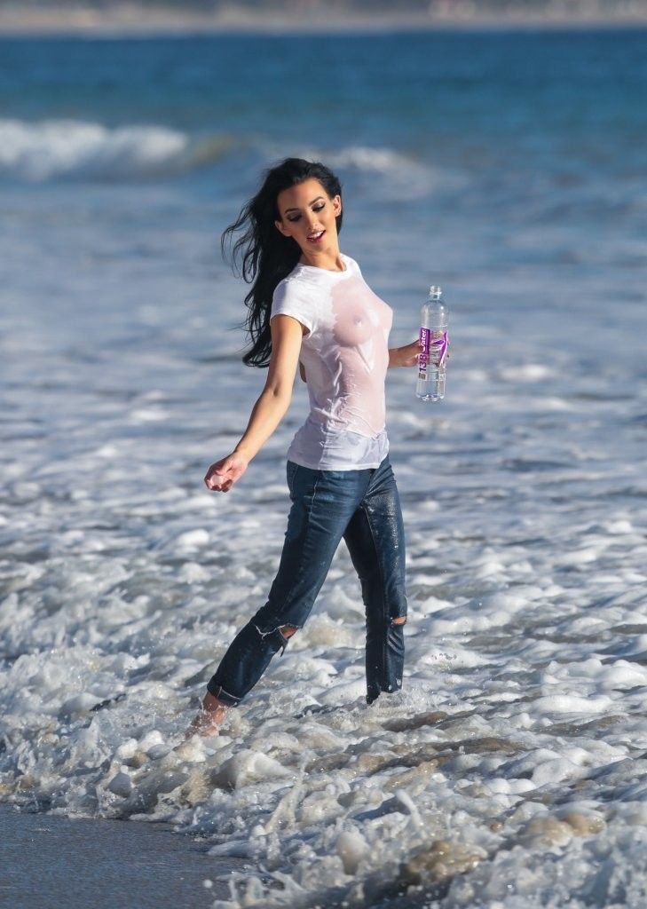 Amanda Geores con una camisa mojada y transparente posa para un 138 Water en Malibu, 05/05/2016. ¡Se ve increíblemente sexy! Amanda Geores es una modelo estadounidense. Edad: 24