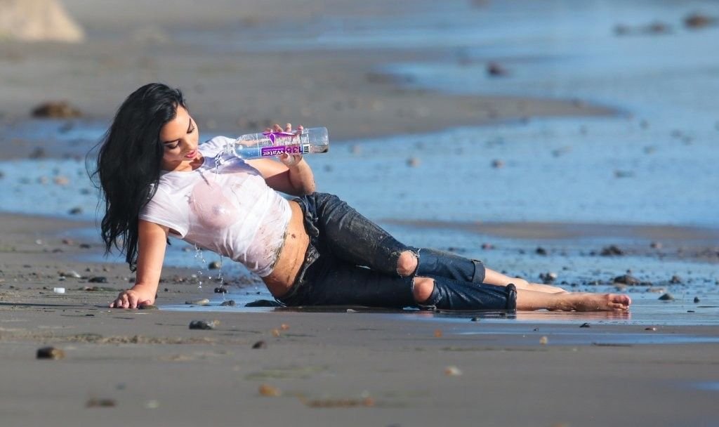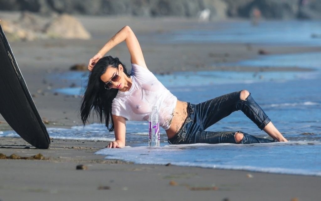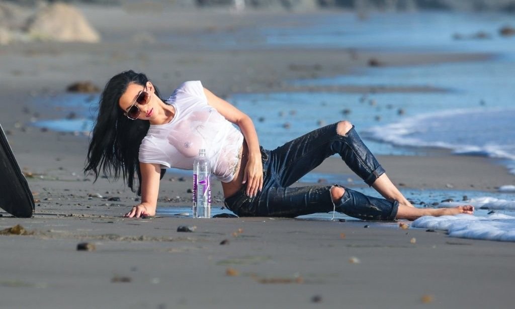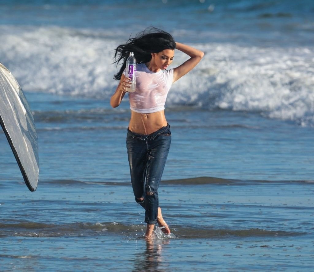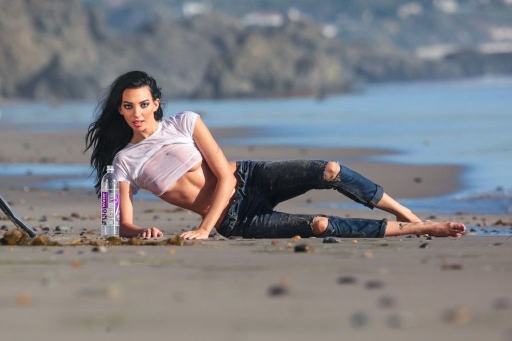 Amanda Geores con una camisa mojada y transparente posa para un 138 Water en Malibu, 05/05/2016. ¡Se ve increíblemente sexy! Amanda Geores es una modelo estadounidense. Edad: 24