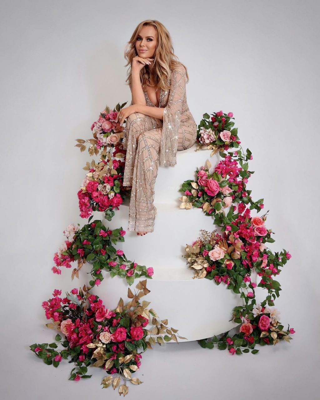 La seductora MILF Amanda Holden posa desnuda sobre un pastel con rosas y luce excelente para su edad!