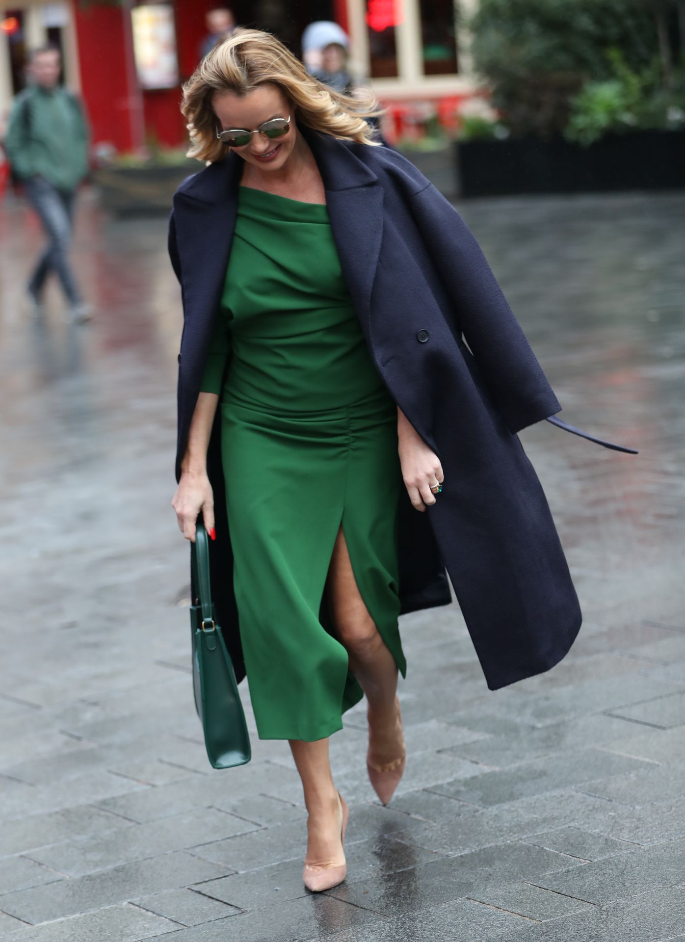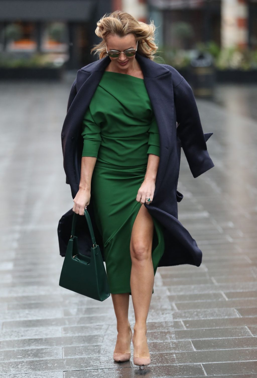 Amanda Holden Muestra Sus Piernas con un Vestido Verde con Abertura (8 Fotos)