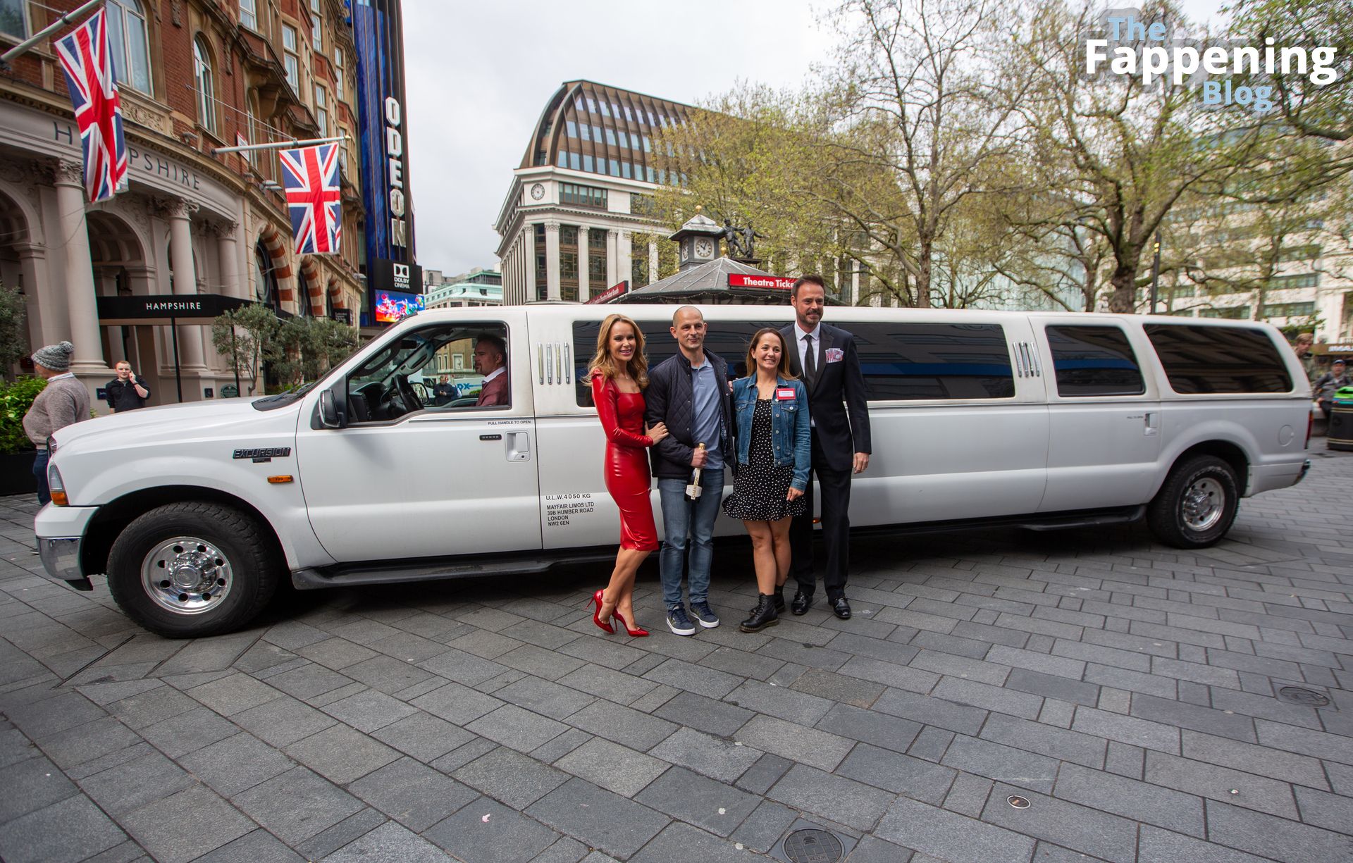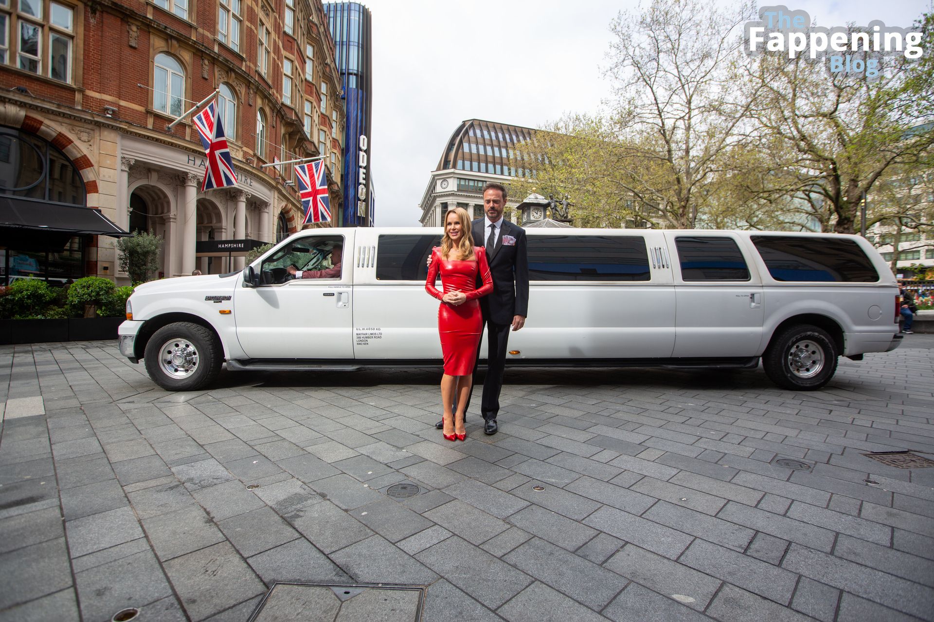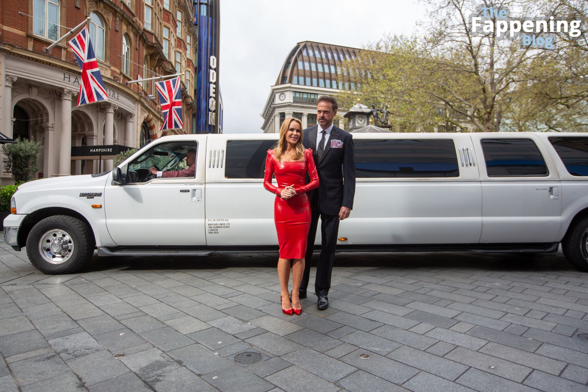 ¡Mira a la actriz y presentadora de radio Amanda Holden fuera de los Estudios de Global Radio el 28/04/2023! Esta chica está mostrando sus pechos con un vestido de cuero rojo, y lo está haciendo increíble.