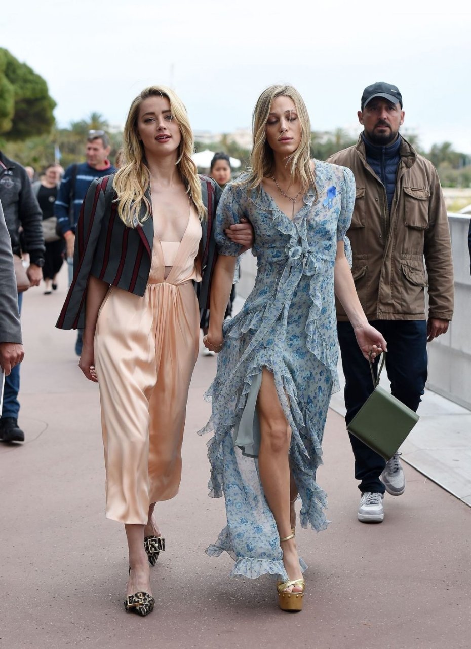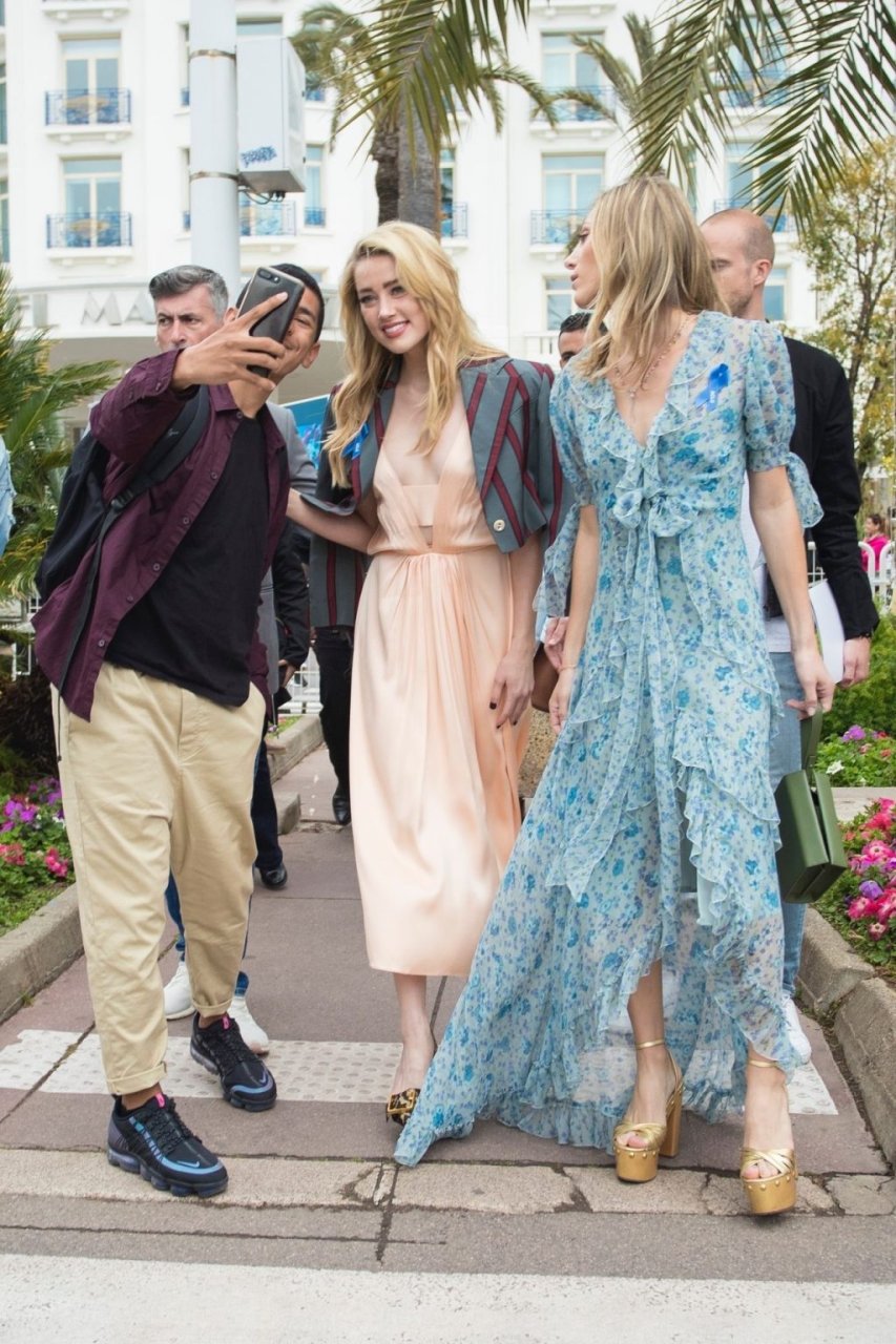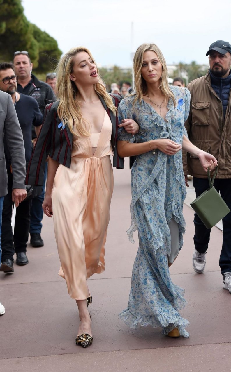 Actriz y estrella de The Fappening Amber Heard luce a la moda con un vestido de satén y una chaqueta corta mientras es fotografiada en la Promenade de la Croisette durante el 72º Festival Internacional de Cine de Cannes, 17/05/2019.
