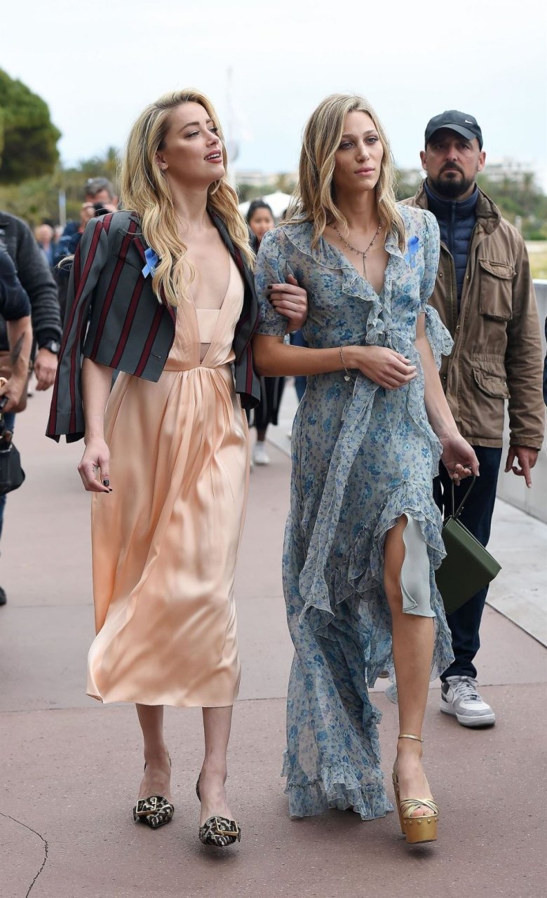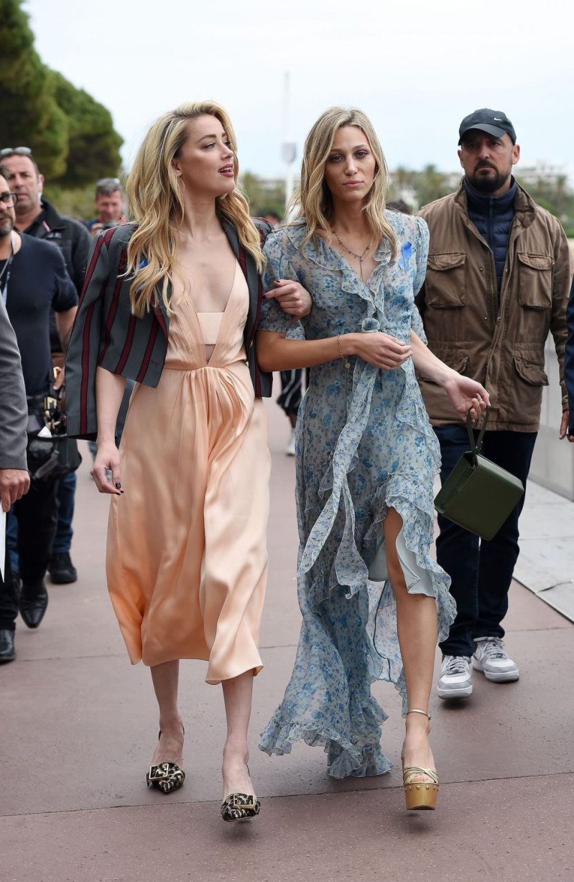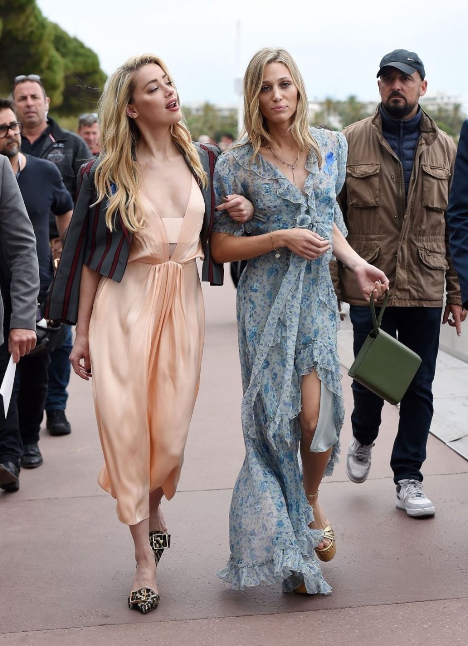Actriz y estrella de The Fappening Amber Heard luce a la moda con un vestido de satén y una chaqueta corta mientras es fotografiada en la Promenade de la Croisette durante el 72º Festival Internacional de Cine de Cannes, 17/05/2019.