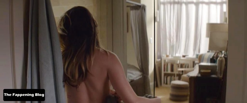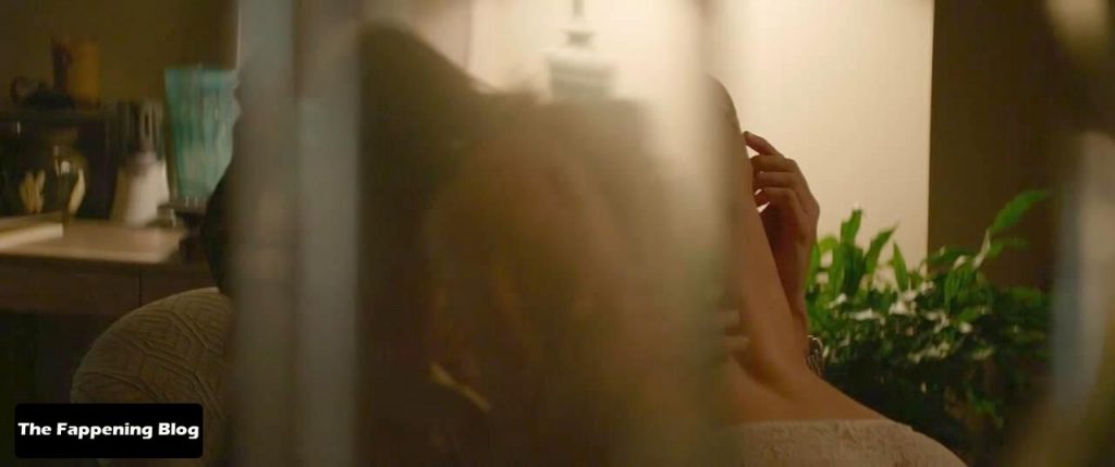 Luego la vemos en la cama con el chico, acostada de espaldas y mostrando la mayor parte de sus senos con un poco de lo que parecen ser pasties a la vista. Por último, vemos un poco de su pecho derecho de lado mientras entra a la ducha.