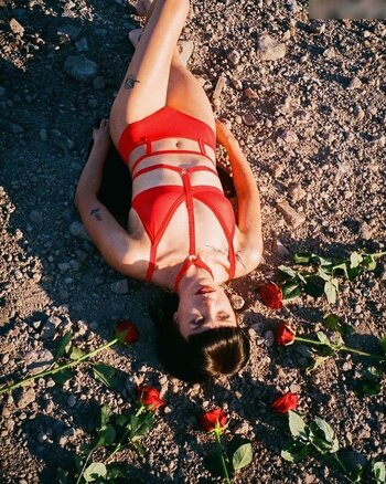Model Ambra Gutierrez posa topless, cubriendo sus pequeños pechos desnudos con pasties en una sesión fotográfica realizada por Prince Chenoa y Jacob Dekat (octubre de 2020).
