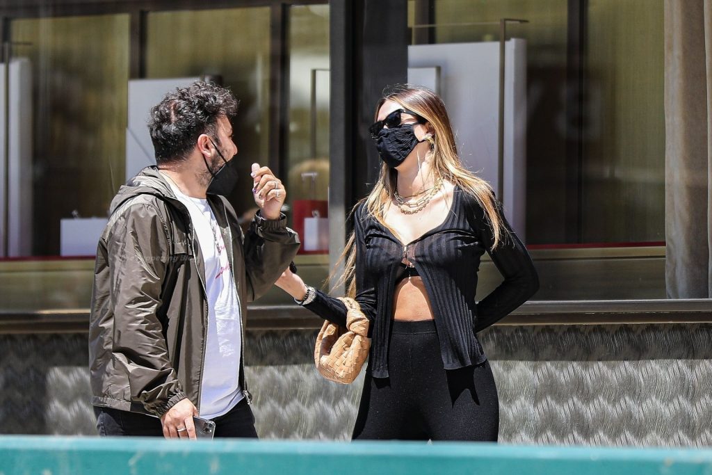 Amelia Hamlin parece estar divirtiéndose mientras compra en Rodeo Drive en Beverly Hills con amigos, mientras su novio Scott Disick permanece en Nueva York, 27/04/2021.