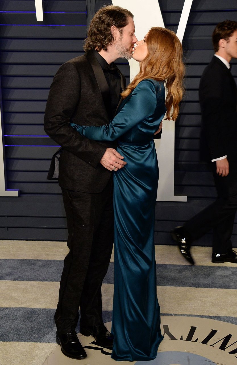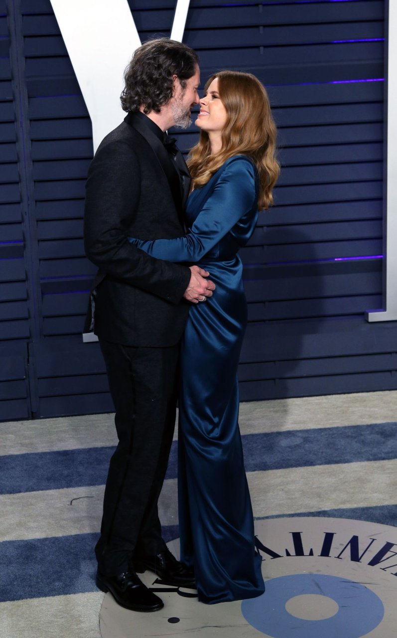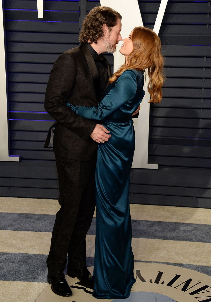 Amy Adams enfatiza su figura con un vestido verde mientras posa para los fotógrafos con su esposo, Darren Le Gallo, en la Fiesta de los Oscar Vanity Fair 2019 en Beverly Hills, 24/02/2019. La actriz de 44 años complementó el conjunto con costosas joyas de Cartier.