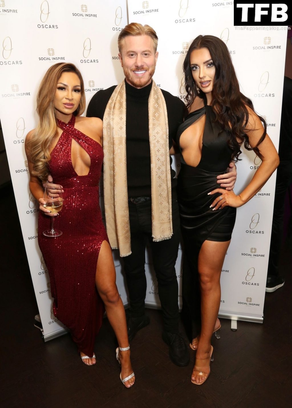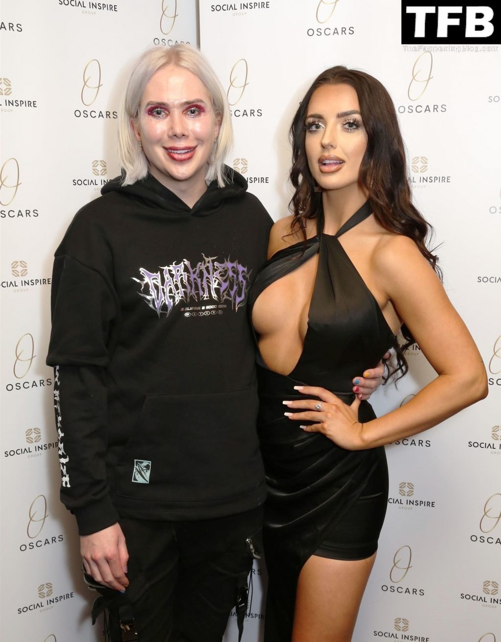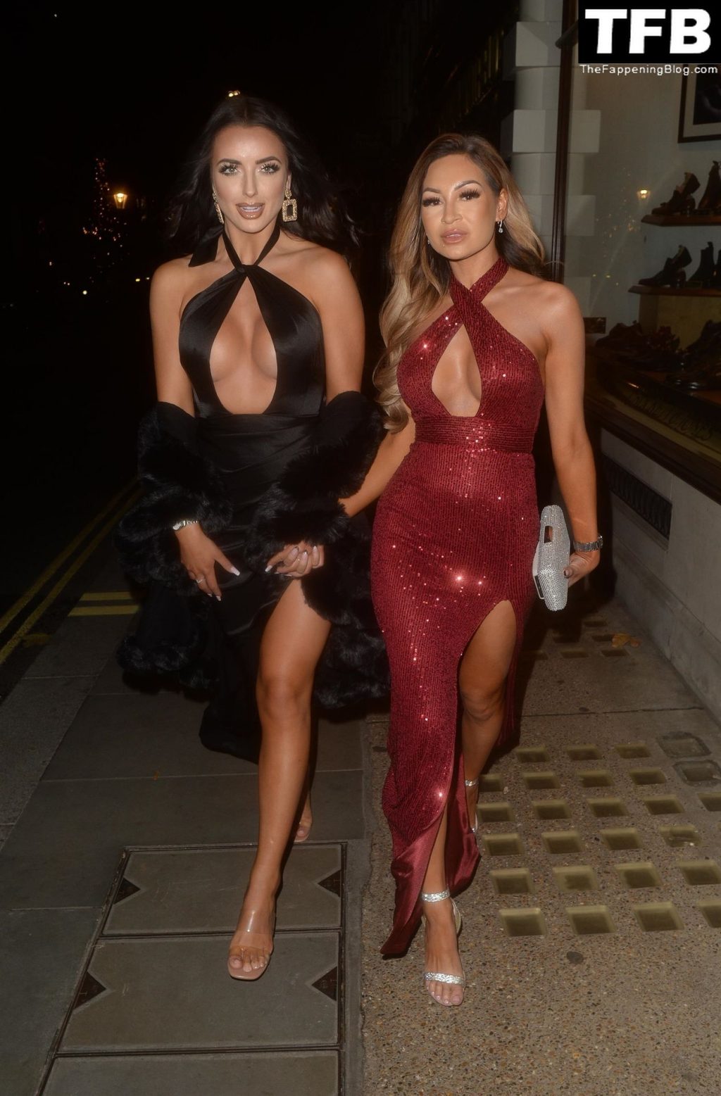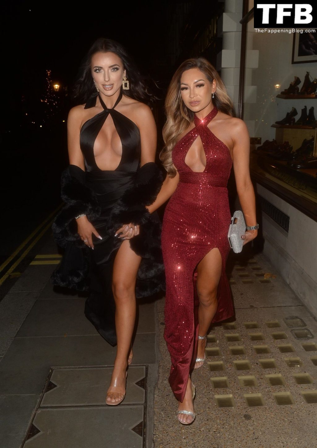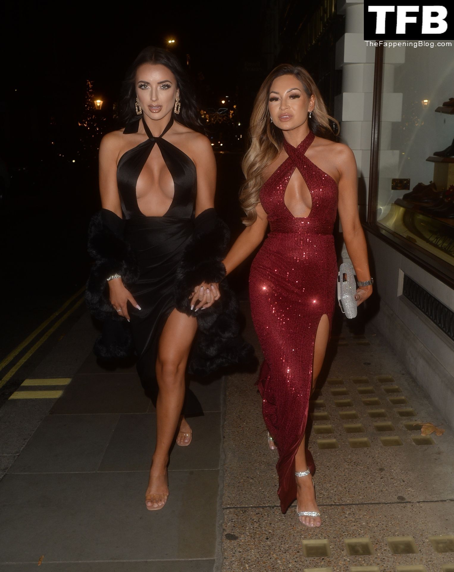 Reality TV stars Aj Bunker y Amy Day asisten a una fiesta de cumpleaños en Londres, 12/04/2021. Amy deslumbra con sus grandes pechos falsos, vistiendo un vestido negro.