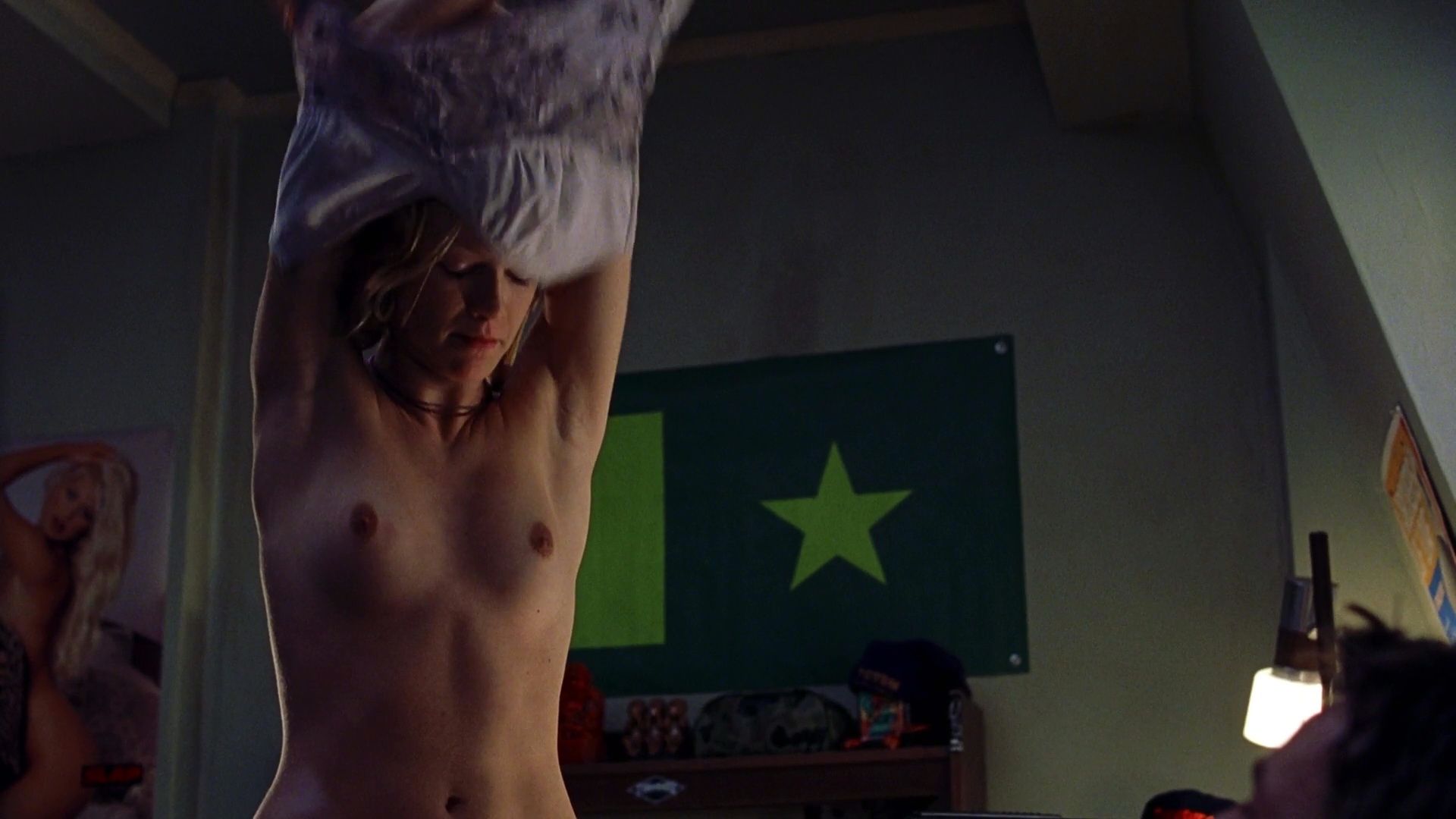 Consulta estas ardientes capturas de pantalla y ediciones de video de la impresionante Amy Smart quitándose la parte superior en “Road Trip” (2000). Esta belleza luce unos pechos increíbles en esa famosa escena desnuda. Ella es una rubia sin parte superior que se acurruca en la cama con su amante, luciendo solo sus panties mientras le planta algunos besos.