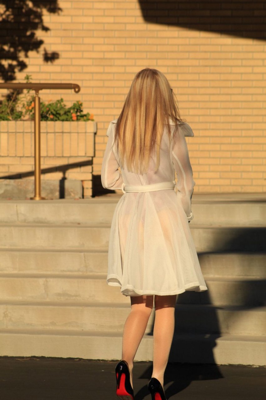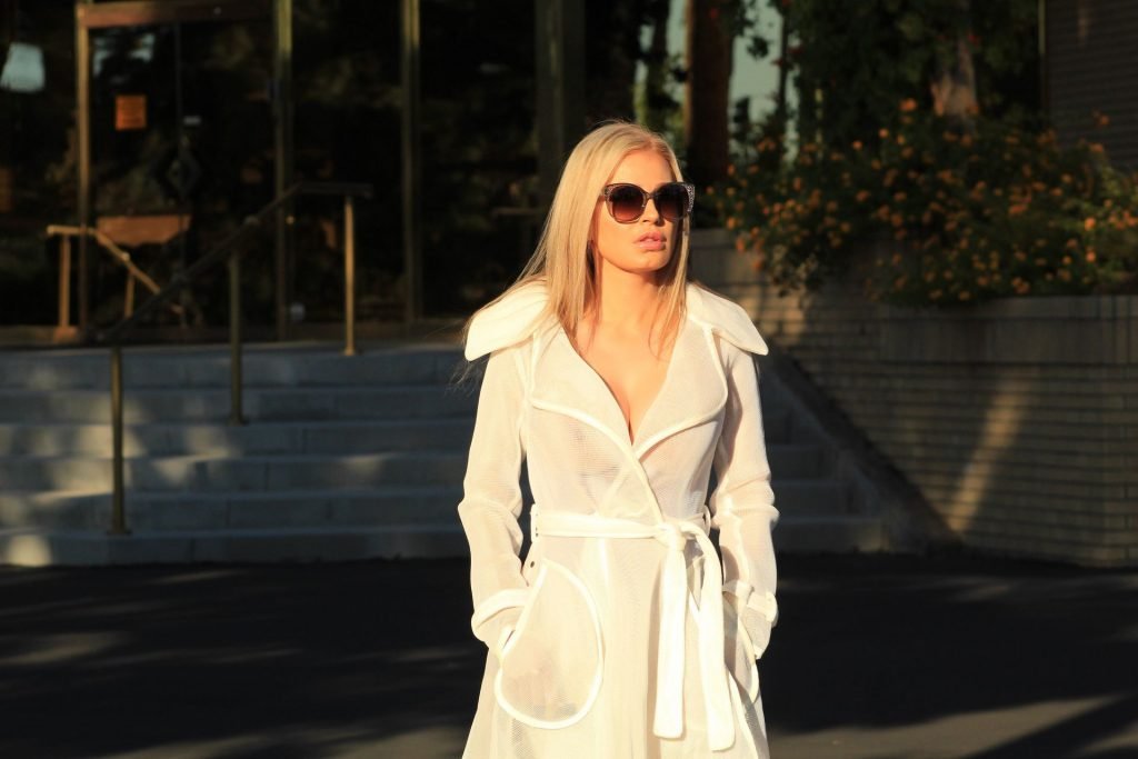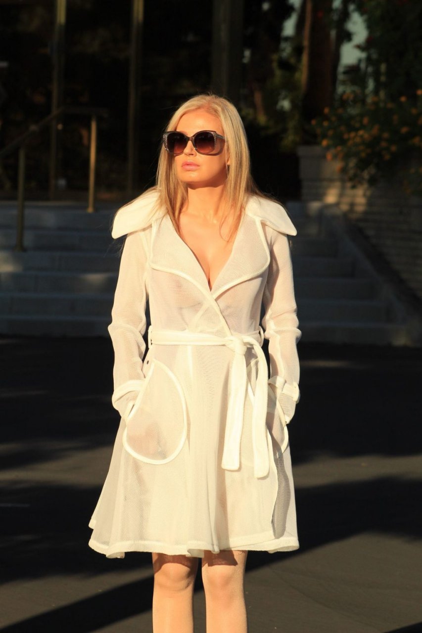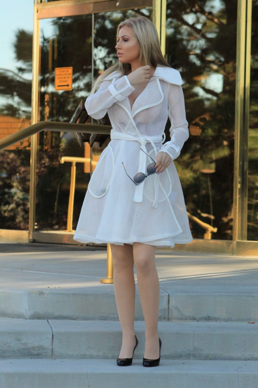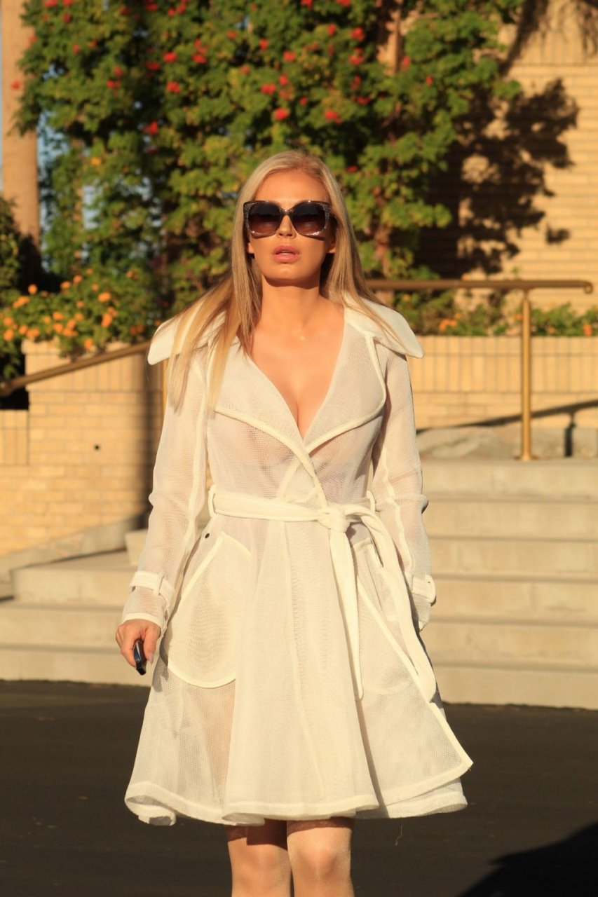 Brazilian Playboy’s Playmate, personalidad de redes sociales y comentarista política Ana Braga fue vista con un vestido blanco transparente mientras paseaba por Los Ángeles, 19/11/2018.