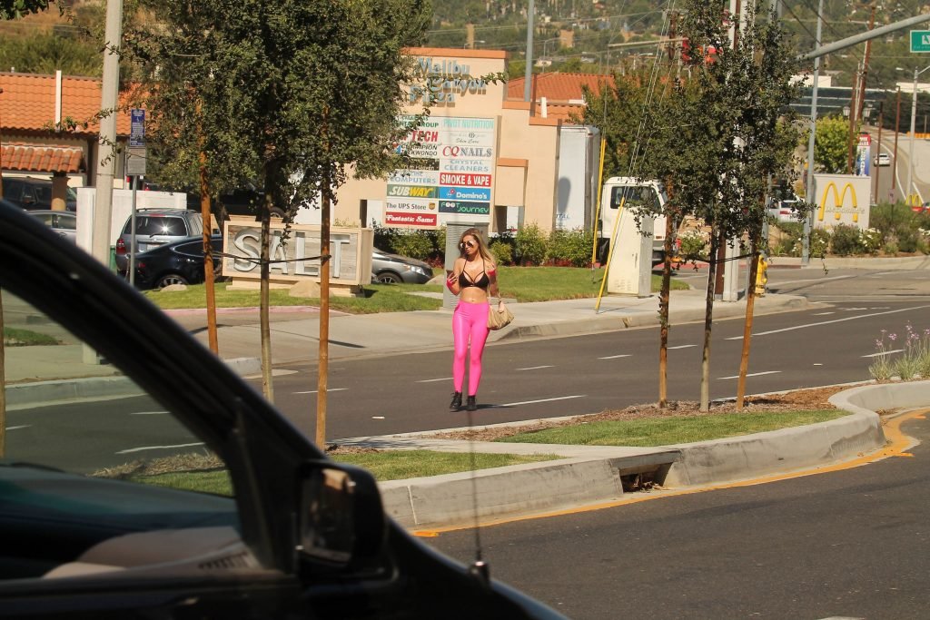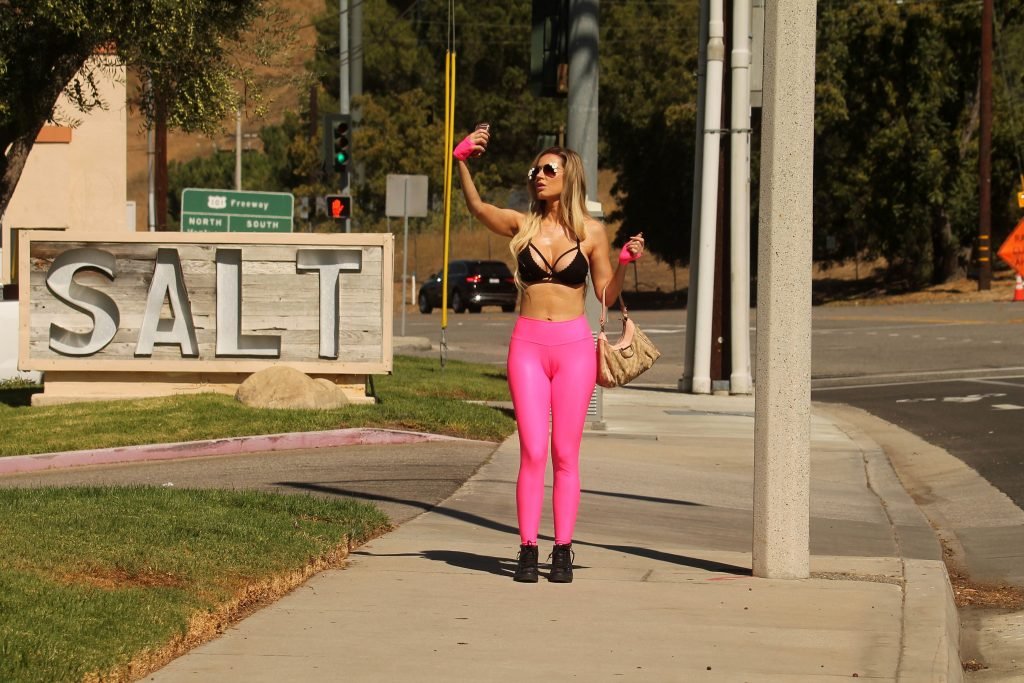 Model Ana Braga, 35, fue vista con pantalones de spandex rosa mientras compraba en Calabasas, 05/11/2017.