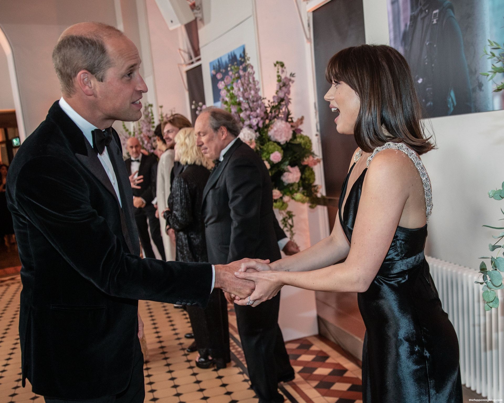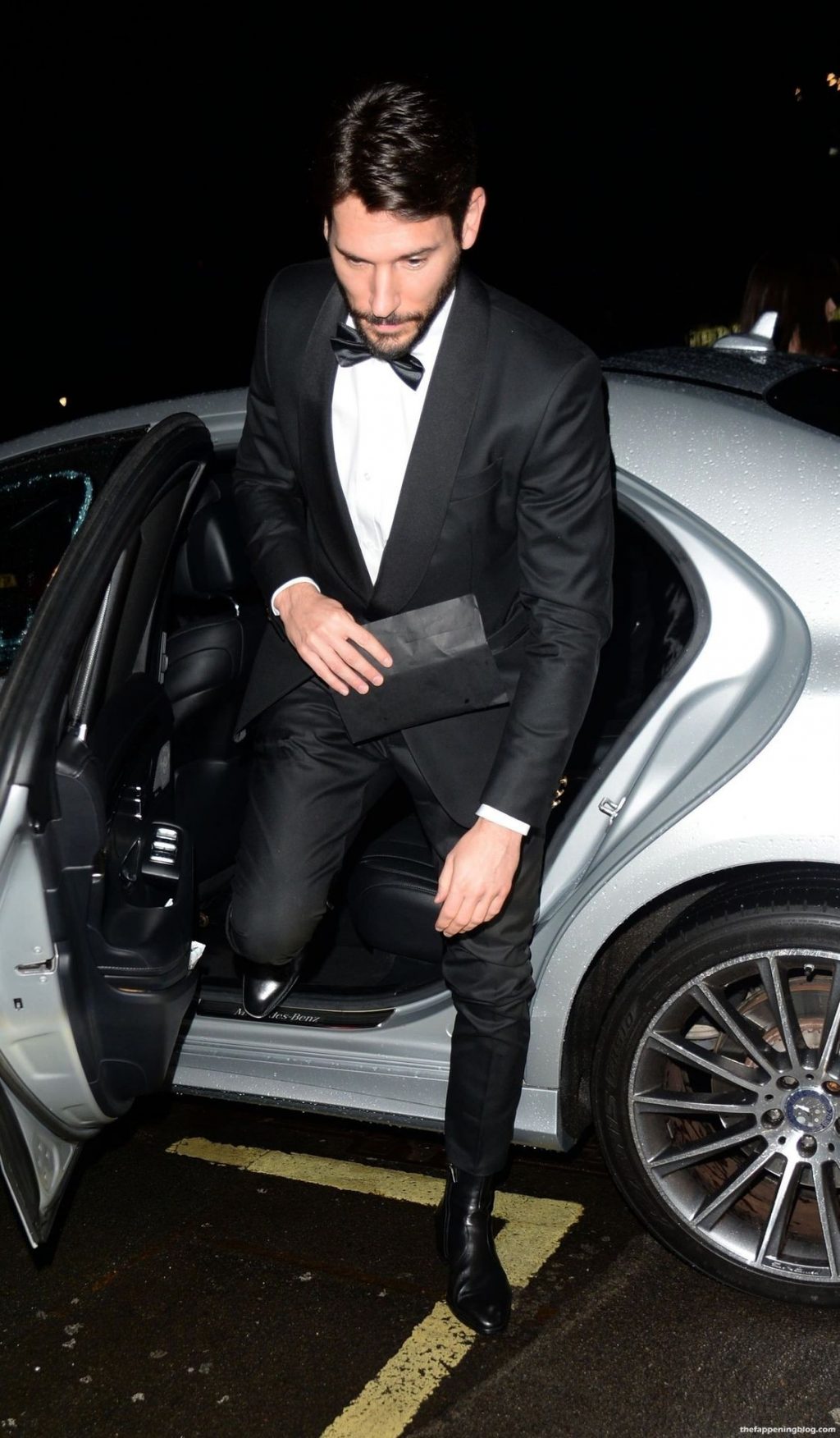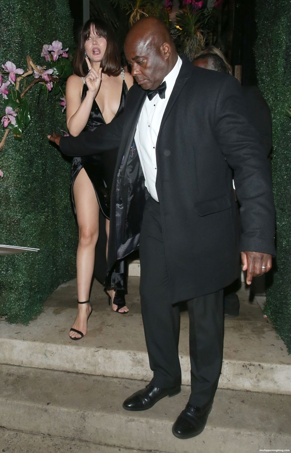 Fue sostenida por su guardaespaldas cuando casi se cae por unas escaleras al salir del club privado Annabels con su revelador vestido negro LBD.