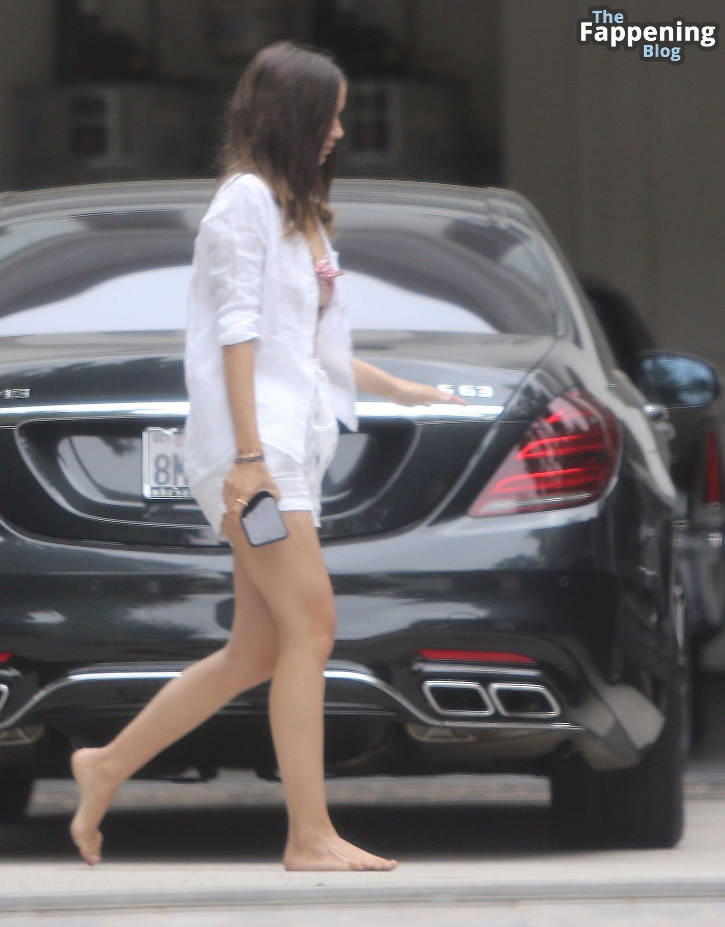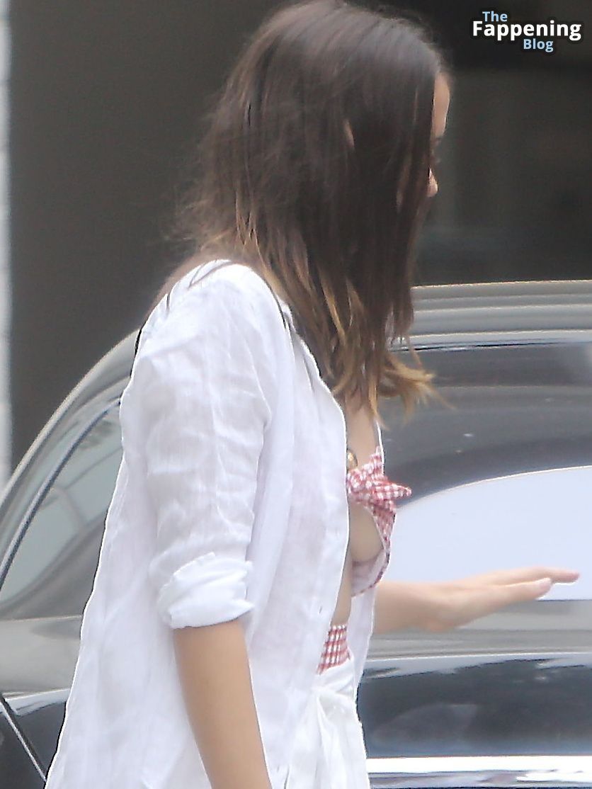 Podemos echar un vistazo a algunas fotos de Ana de Armas en LA. Ella luce unos shorts blancos como la nieve y una camisa abierta, mostrando parte de su bikini retro con un patrón de cuadros rojos. ¡Y mira esos sexys pies descalzos!