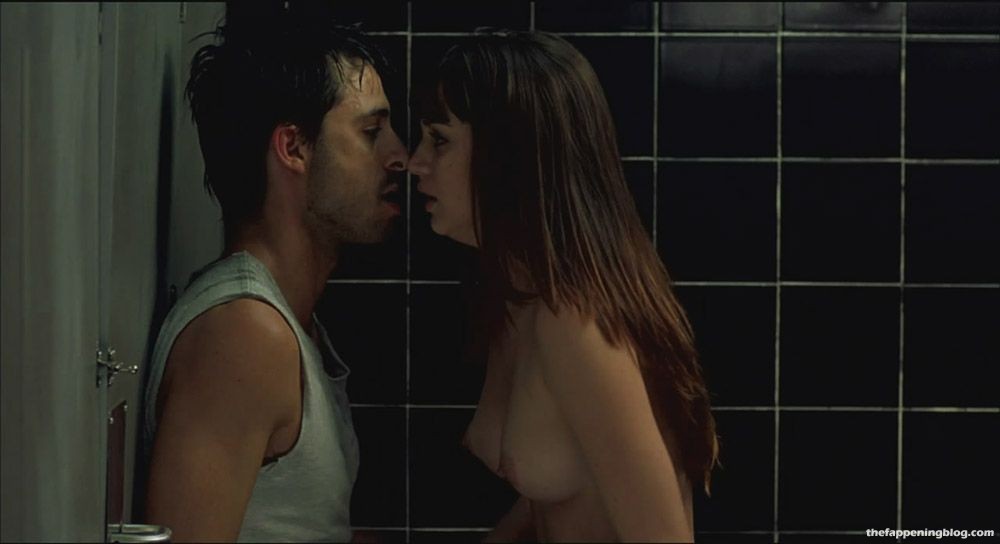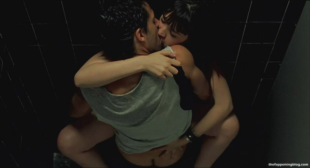 Ana de Armas is seen making out with a guy against the door of a bathroom stall. He is pulling Ana’s dress down to reveal her nude breasts, which the guy sucks on. Then move back against the wall, Ana putting her legs around the guy as they have sex up against the tiles.