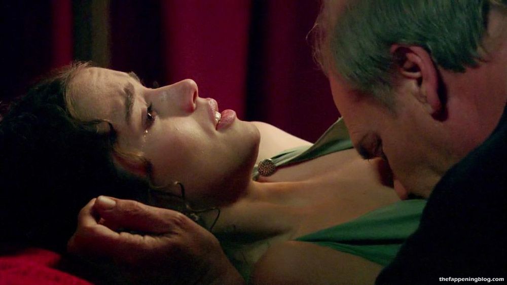 Then we have one of the most popular Ana de Armas’s nude scenes. She is kneeling in a bathtub naked with soapy breasts. Lorenza Izzo stands nearby, and the two girls talk to a guy. The girls then approach him and reach between his legs as they seduce him. They then kneel in front of him to suck his cock. Finally, we see them in a threesome in the shower, the girls having their boobs and asses pressed against the glass door. The sex continues in bed.