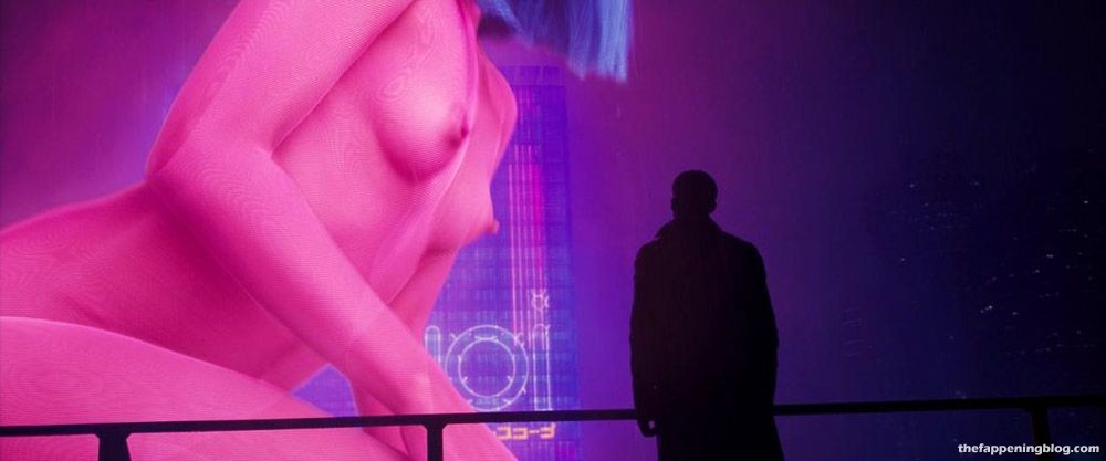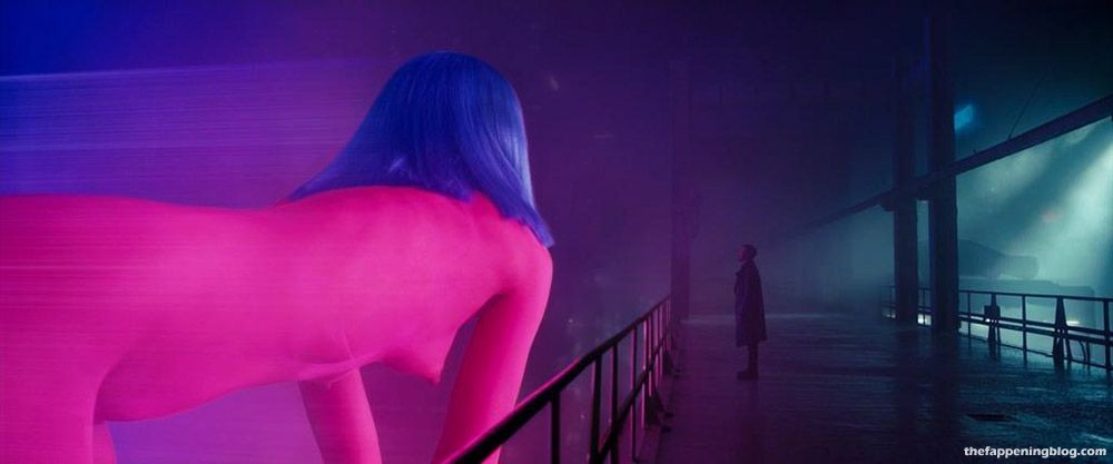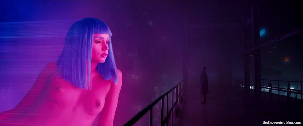 Ana de Armas then appeared in sci-fi as the naked giant hologram. She shows her bare butt and boobs as she is projected from a building, and a guy walks by stops to talk to her.