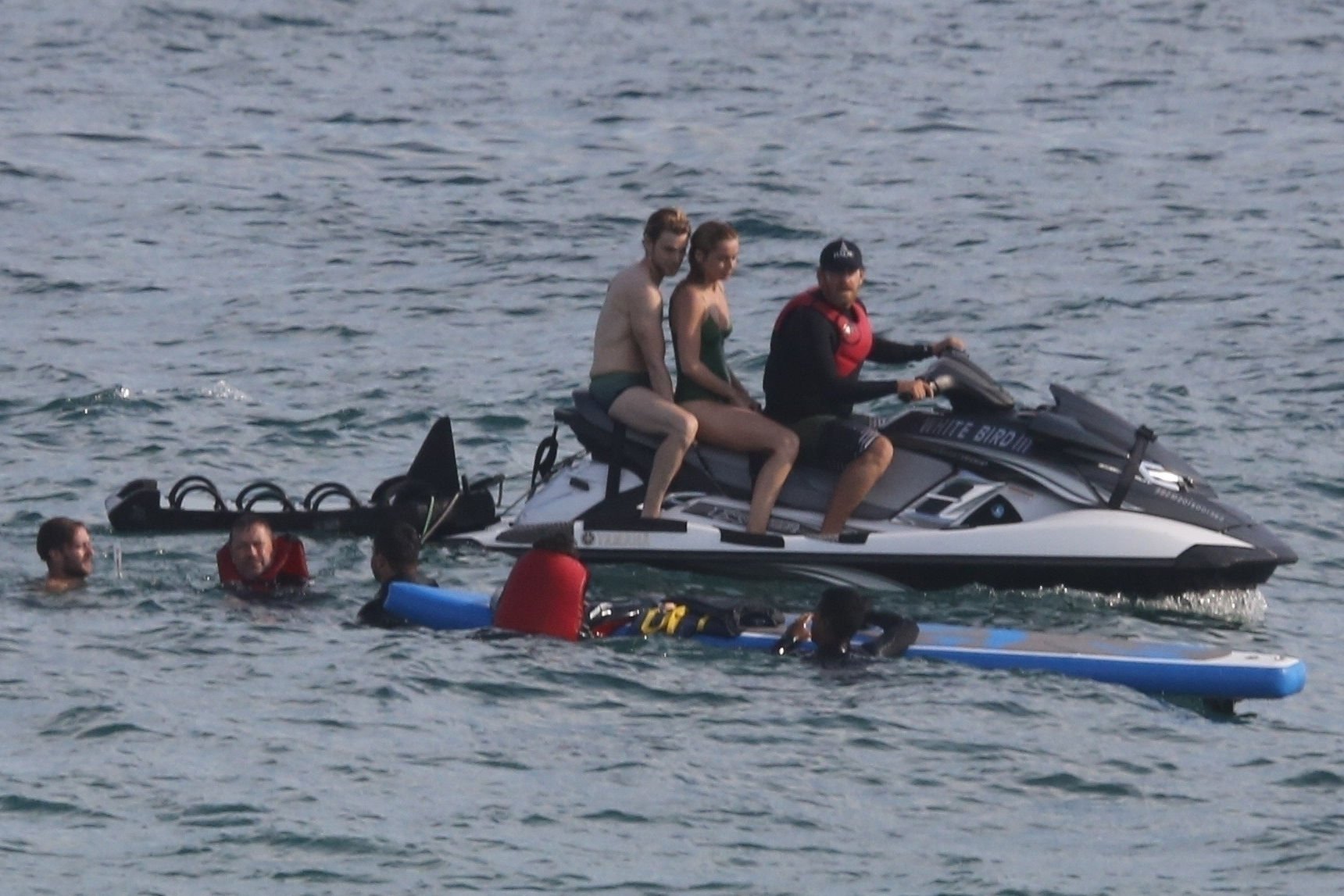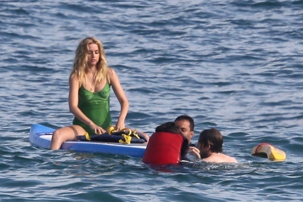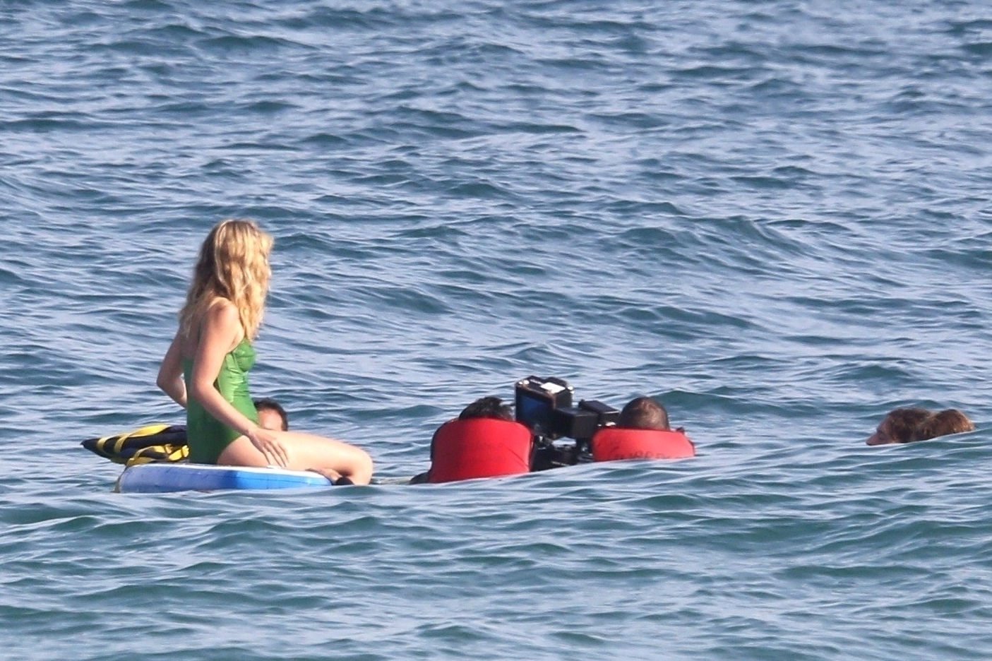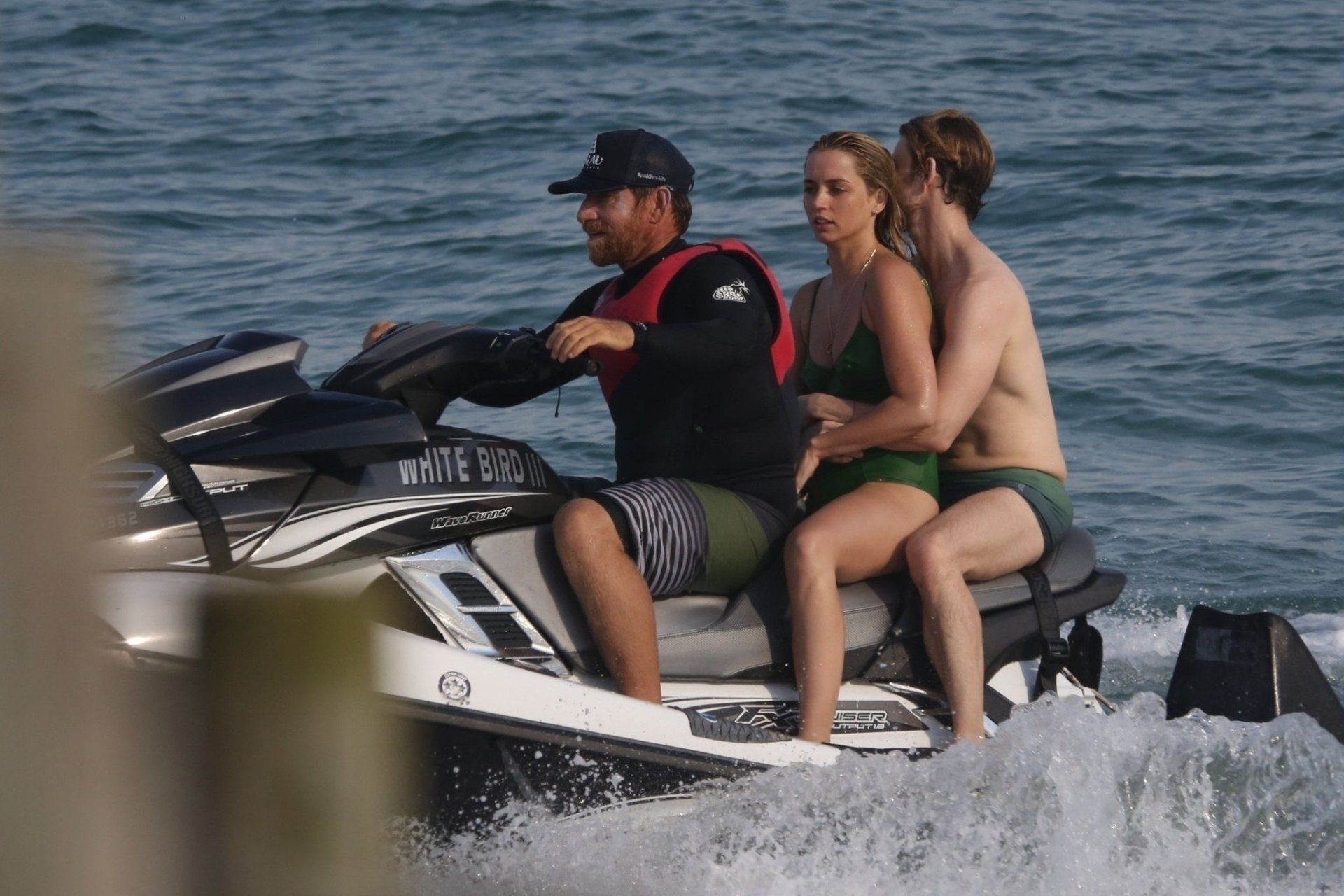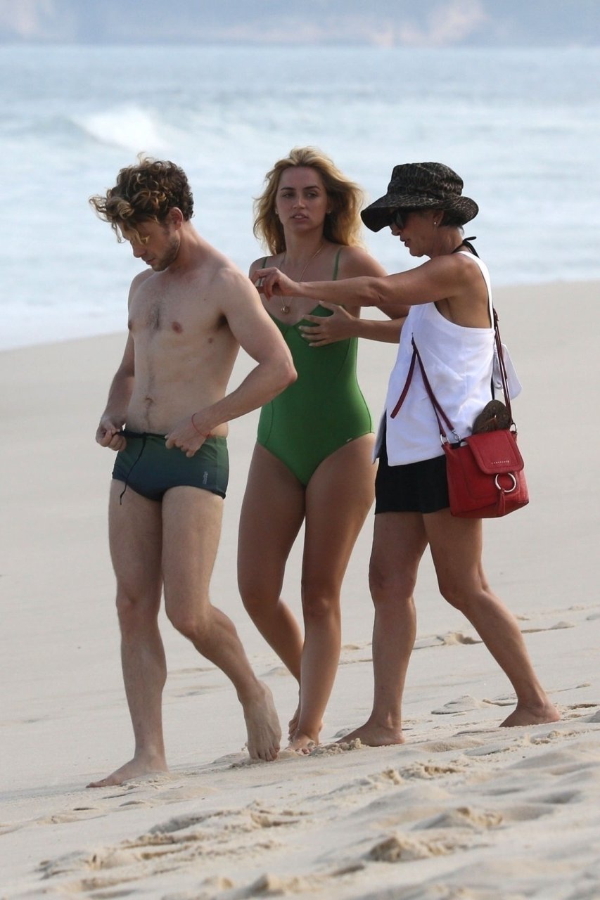 Ana de Armas nada con un traje de baño verde de una pieza mientras filma escenas para un próximo proyecto en Río de Janeiro, 29/07/2018. Ana estuvo acompañada por un equipo de filmación para la excursión acuática, así como por un compañero actor masculino.