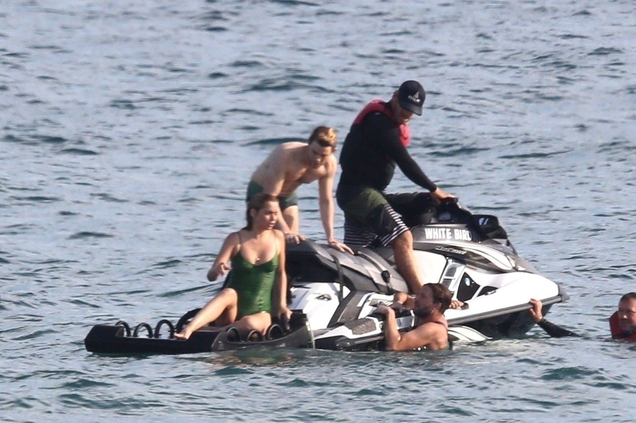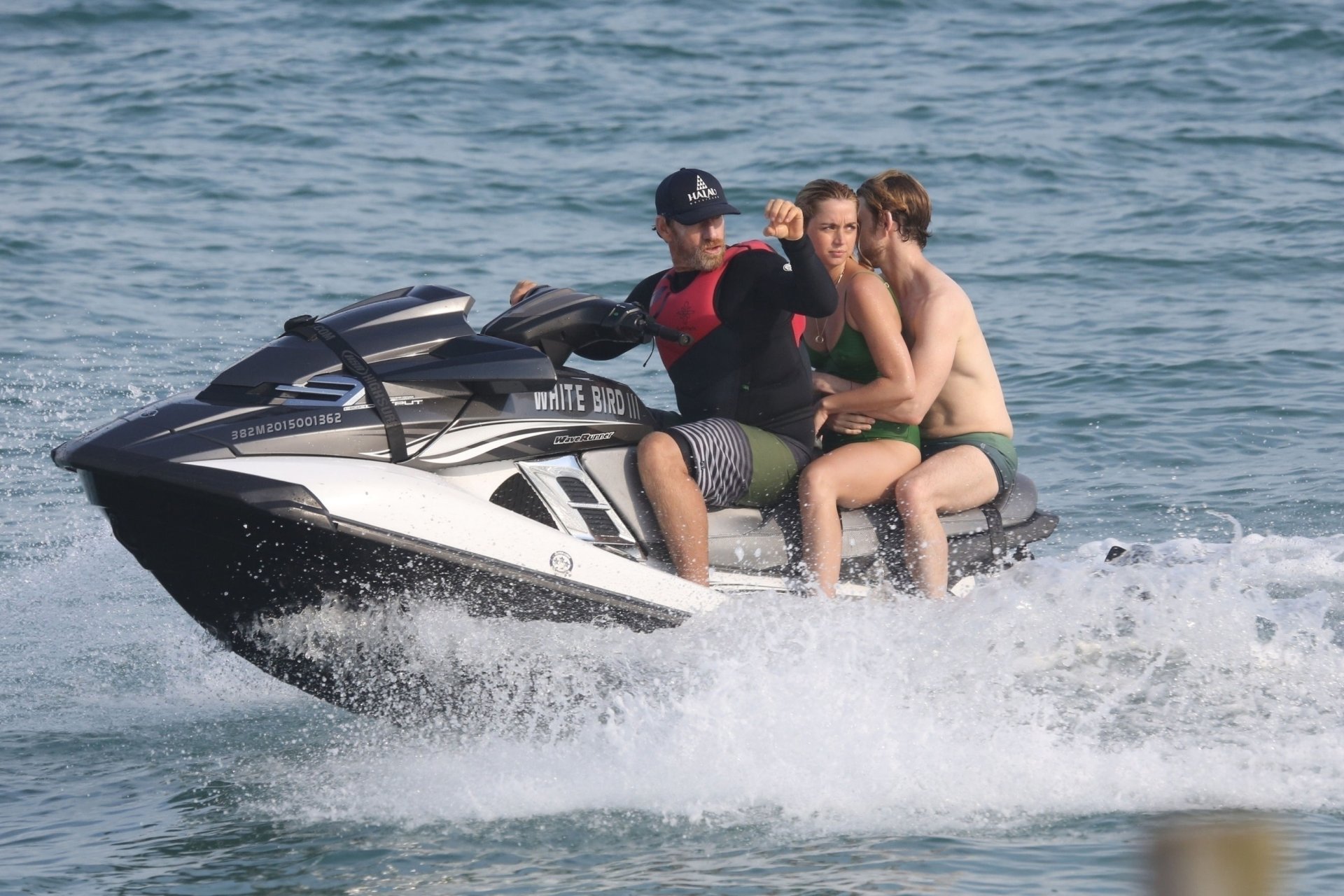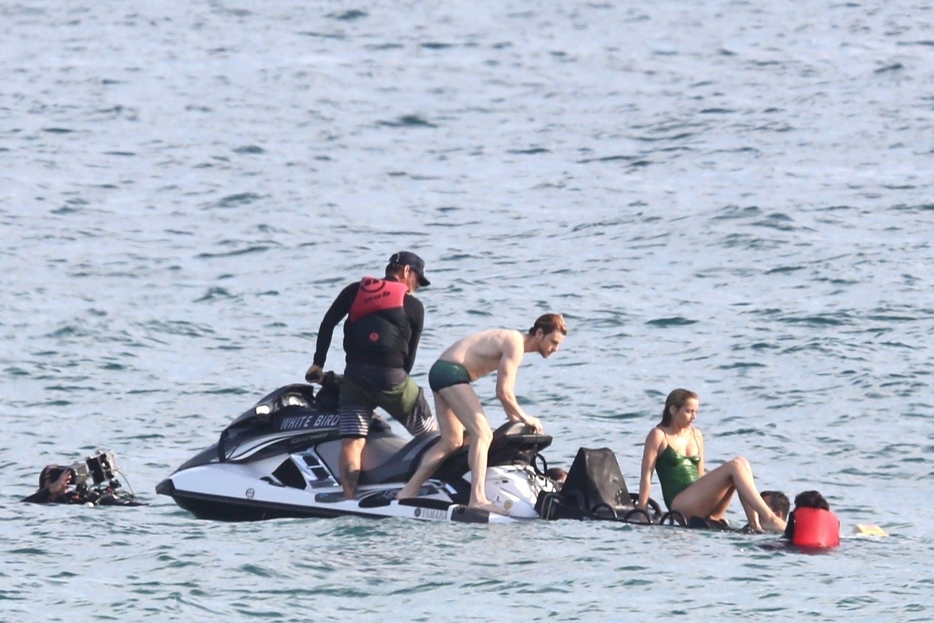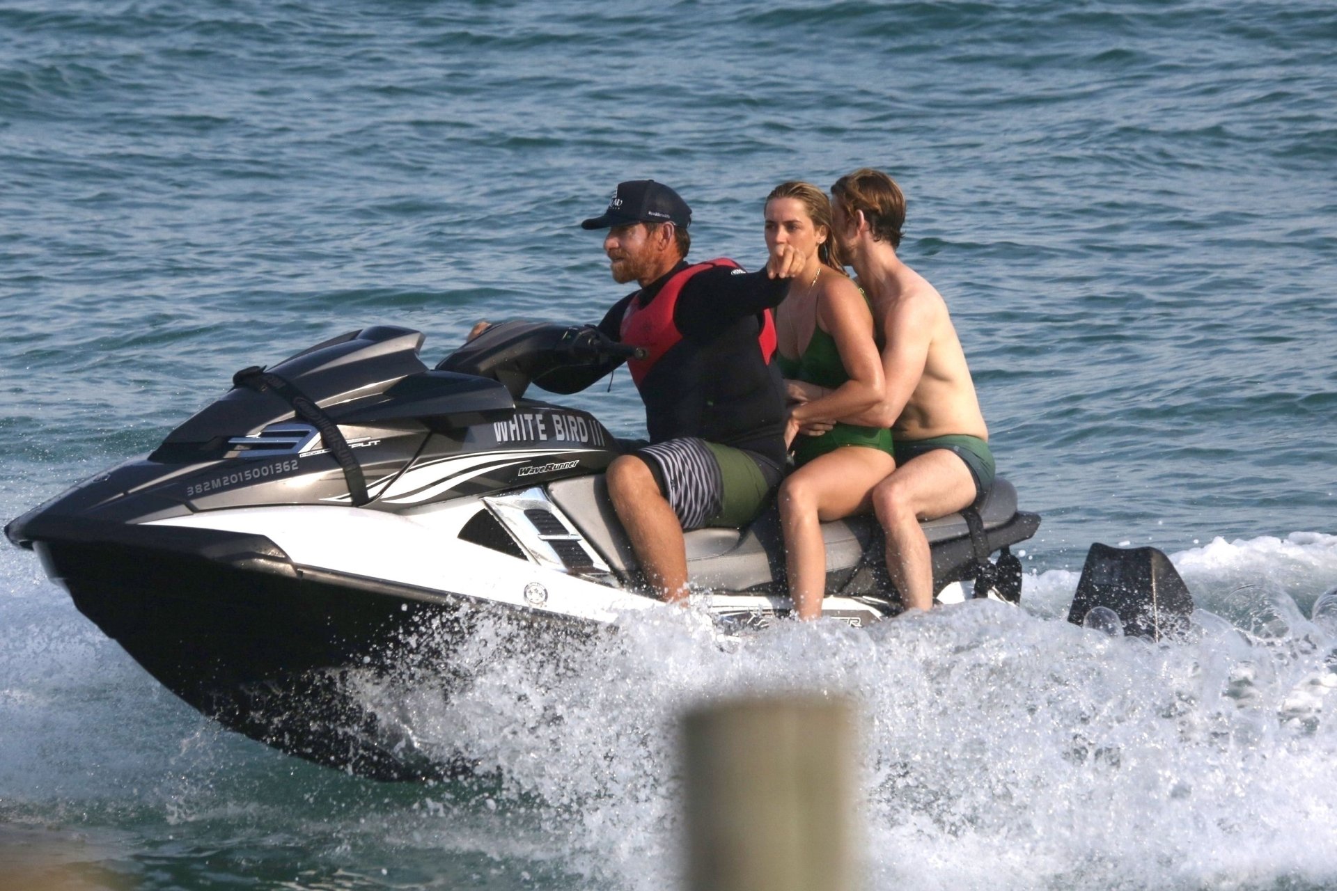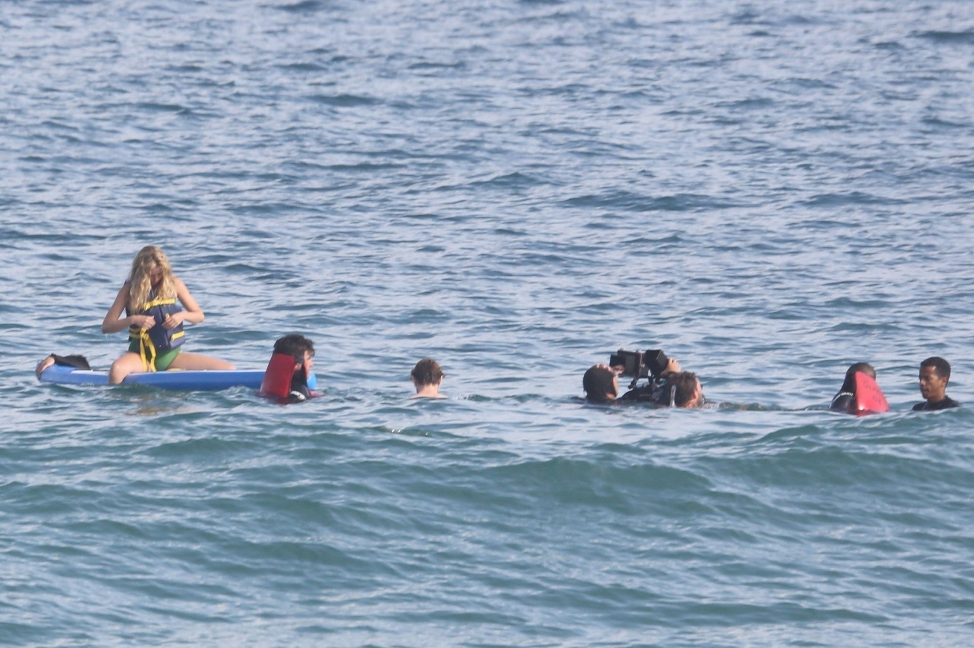 Ana de Armas nada con un traje de baño verde de una pieza mientras filma escenas para un próximo proyecto en Río de Janeiro, 29/07/2018. Ana estuvo acompañada por un equipo de filmación para la excursión acuática, así como por un compañero actor masculino.