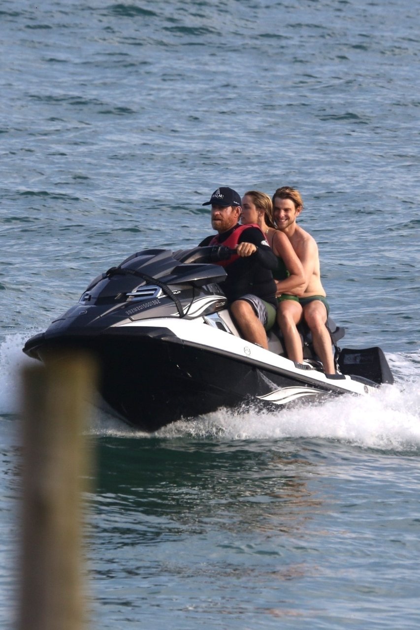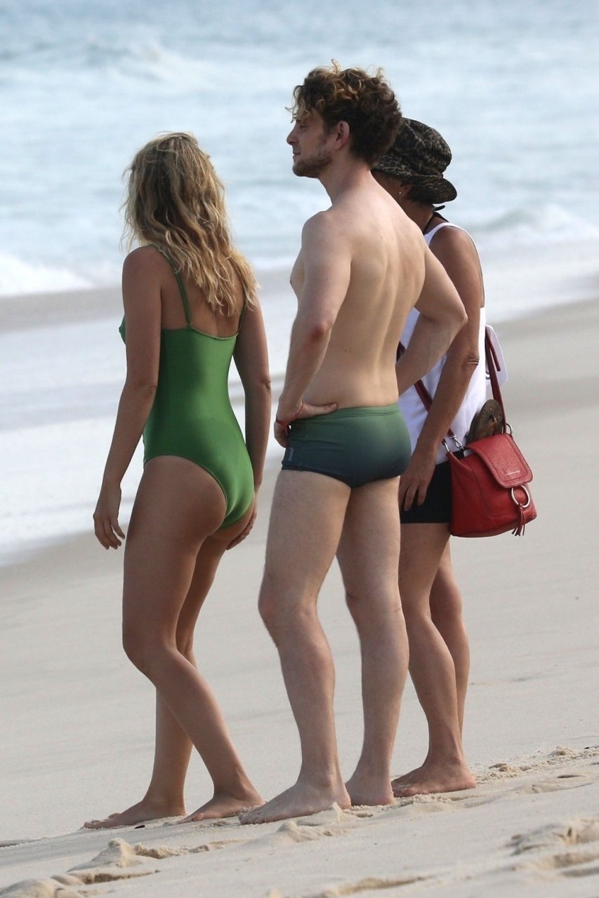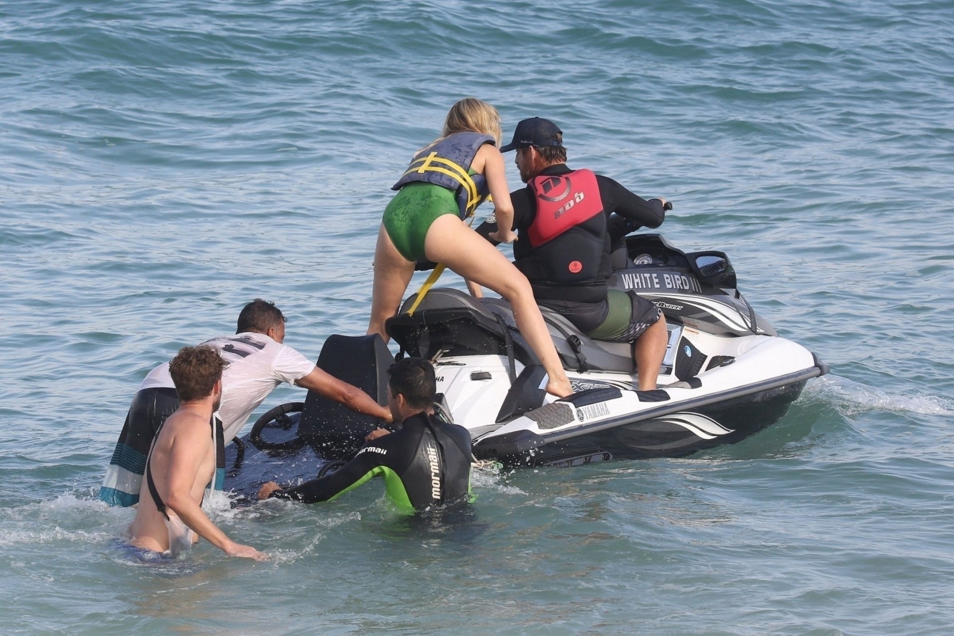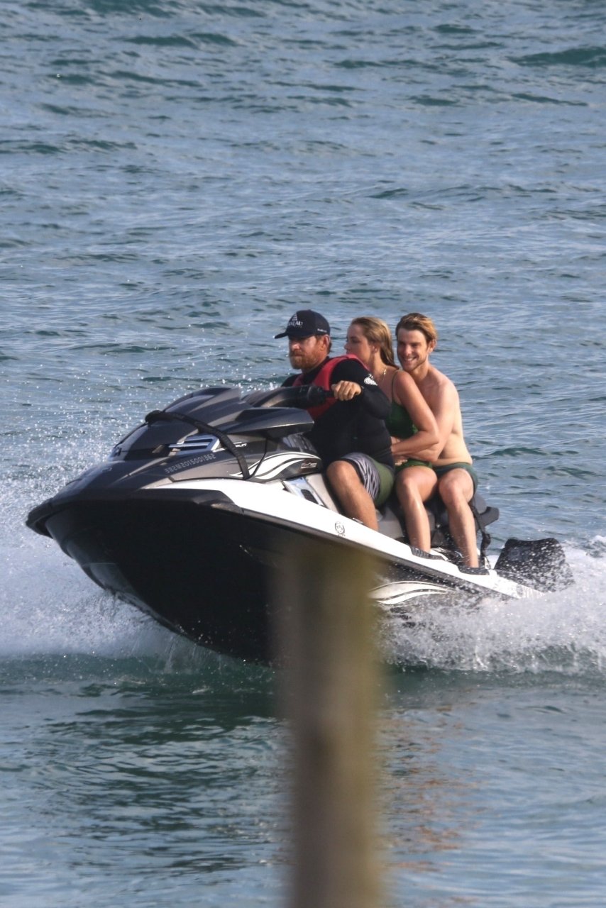 Ana de Armas nada con un traje de baño verde de una pieza mientras filma escenas para un próximo proyecto en Río de Janeiro, 29/07/2018. Ana estuvo acompañada por un equipo de filmación para la excursión acuática, así como por un compañero actor masculino.