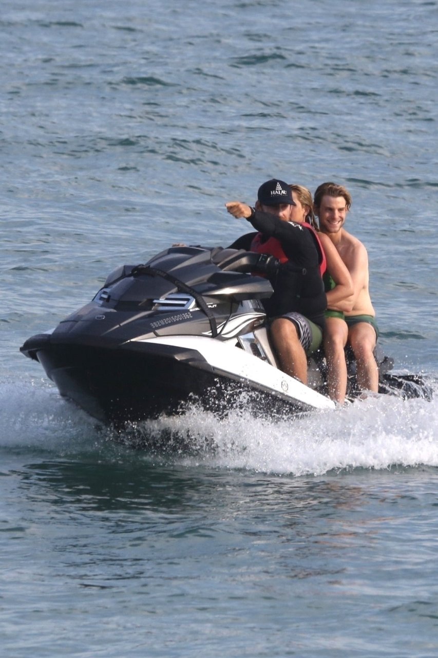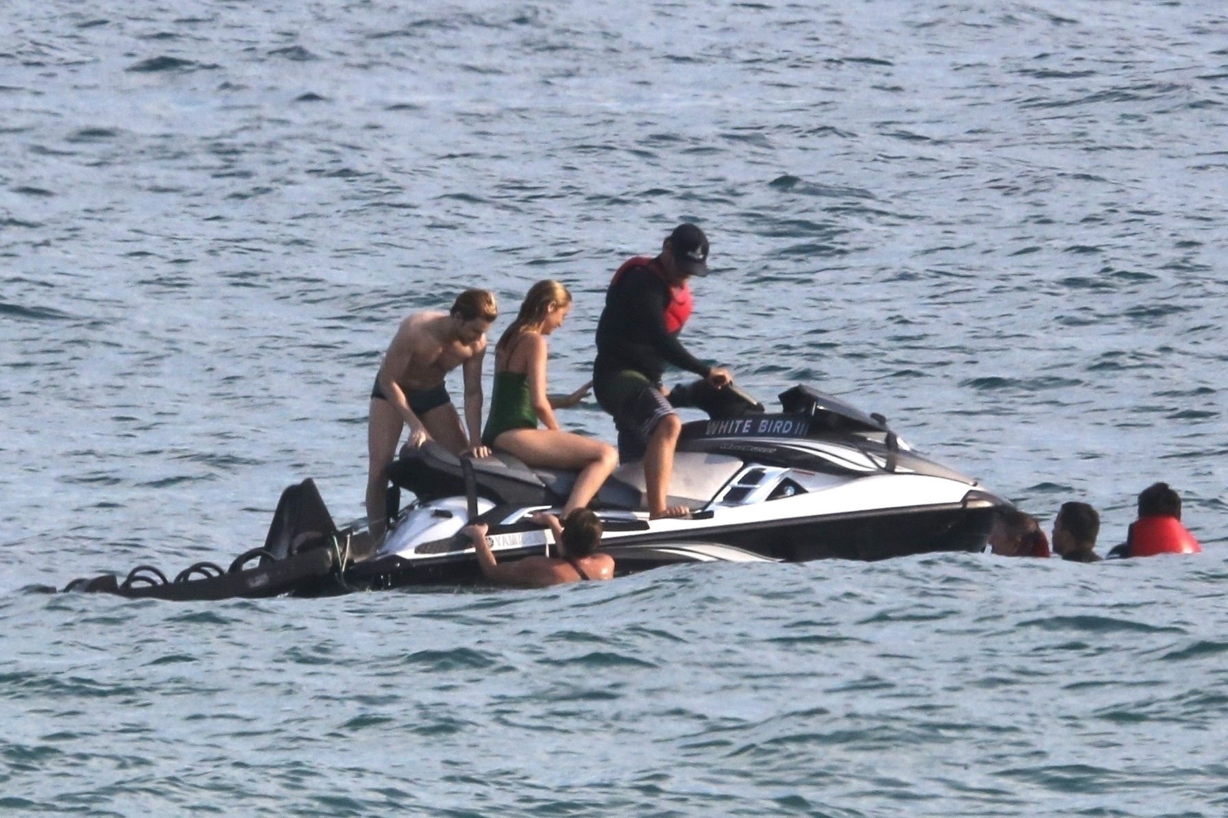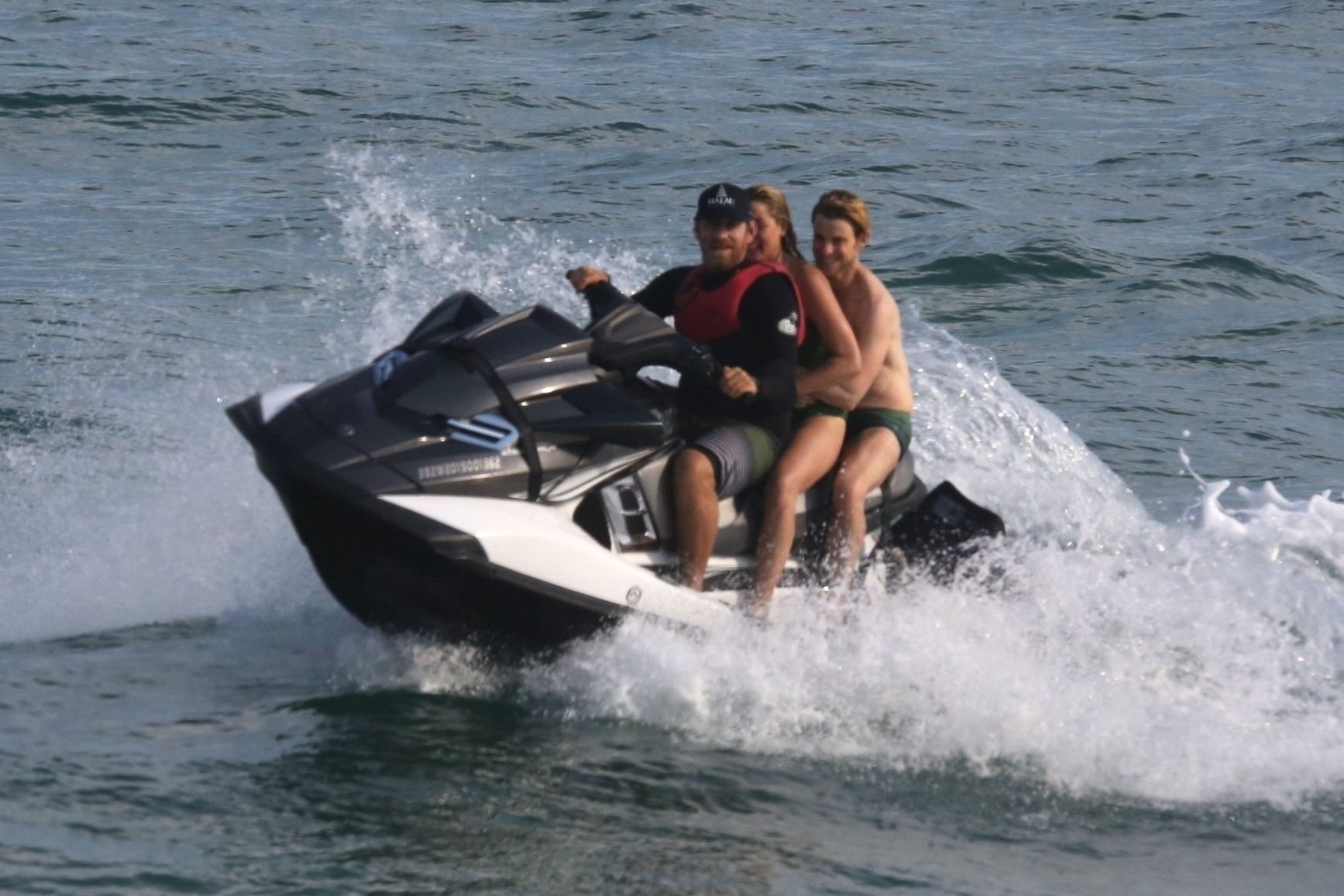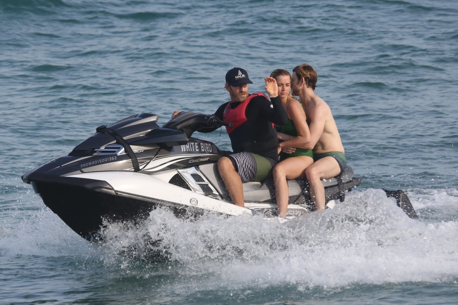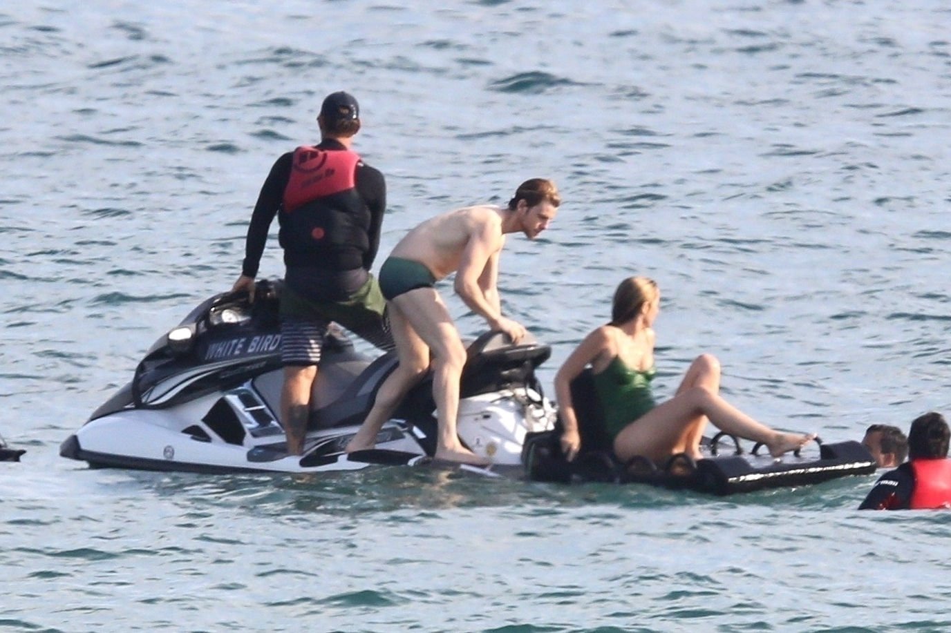 Ana de Armas nada con un traje de baño verde de una pieza mientras filma escenas para un próximo proyecto en Río de Janeiro, 29/07/2018. Ana estuvo acompañada por un equipo de filmación para la excursión acuática, así como por un compañero actor masculino.