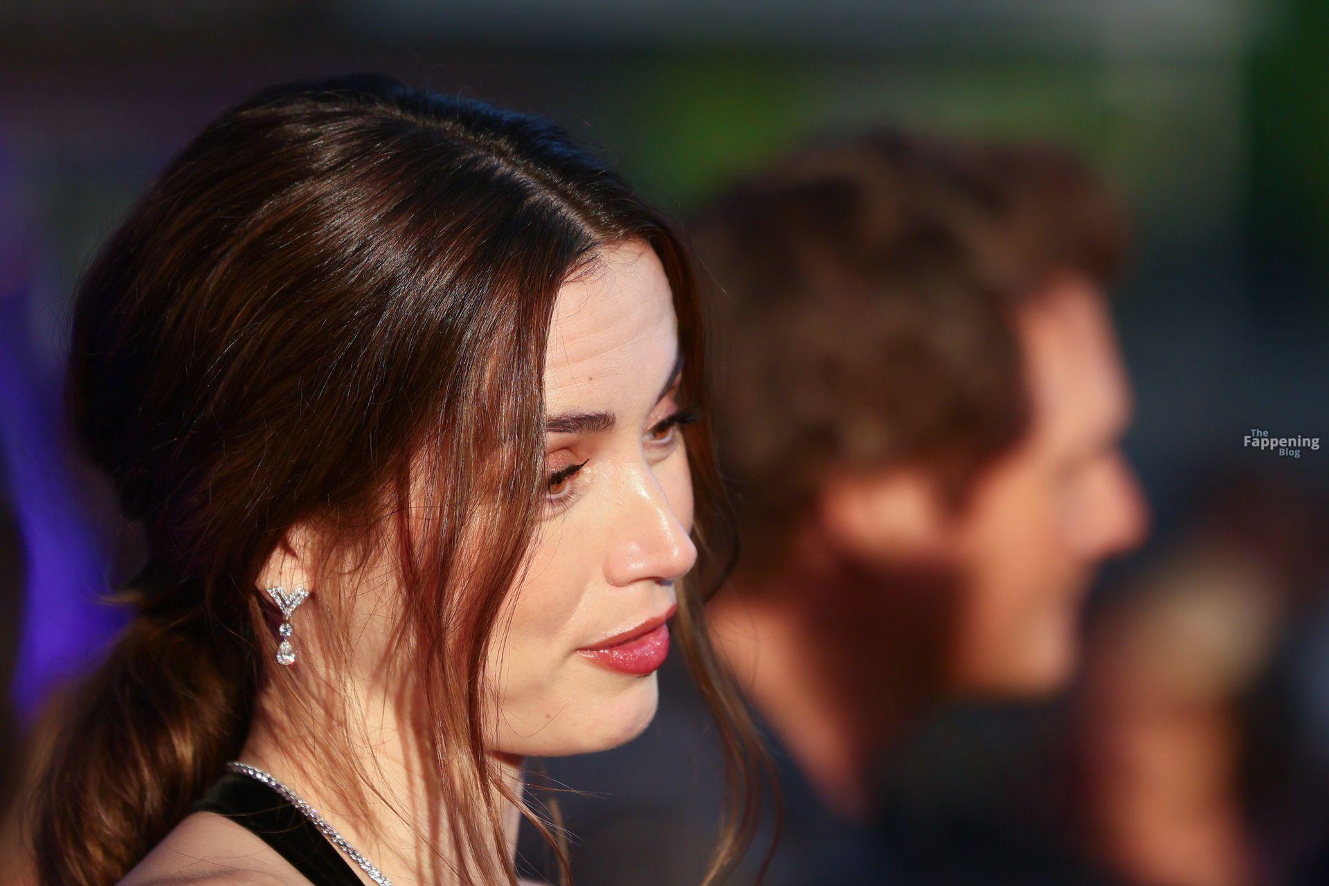 La actriz de 37 años mantuvo un estilo sofisticado pero dejó los hombros al descubierto, mostrando sus encantos al público. Sin sujetador esa noche: solo dos finos tirantes sosteniendo todo apenas.