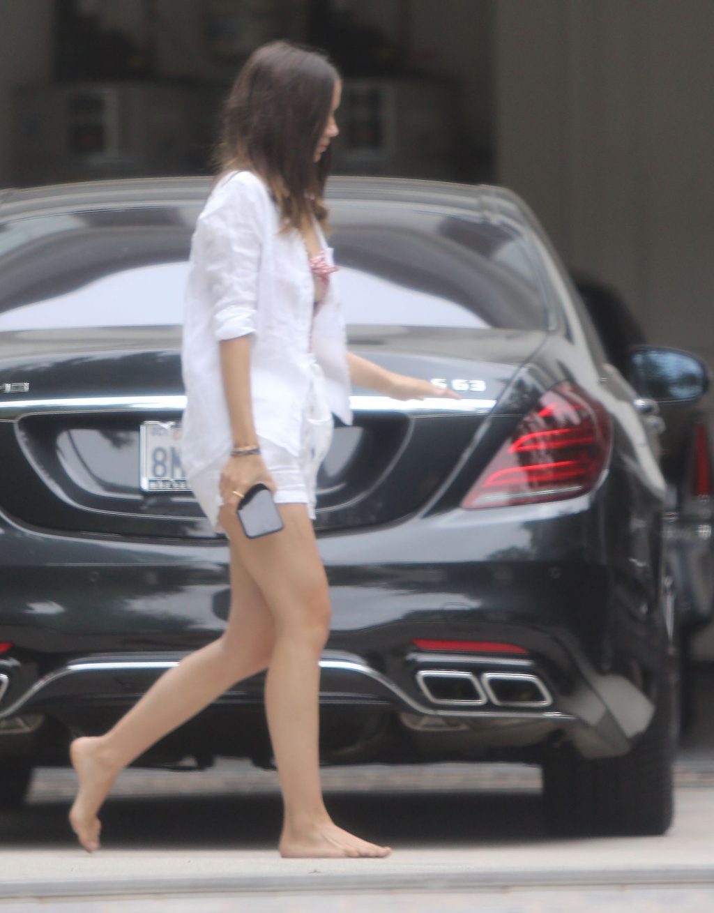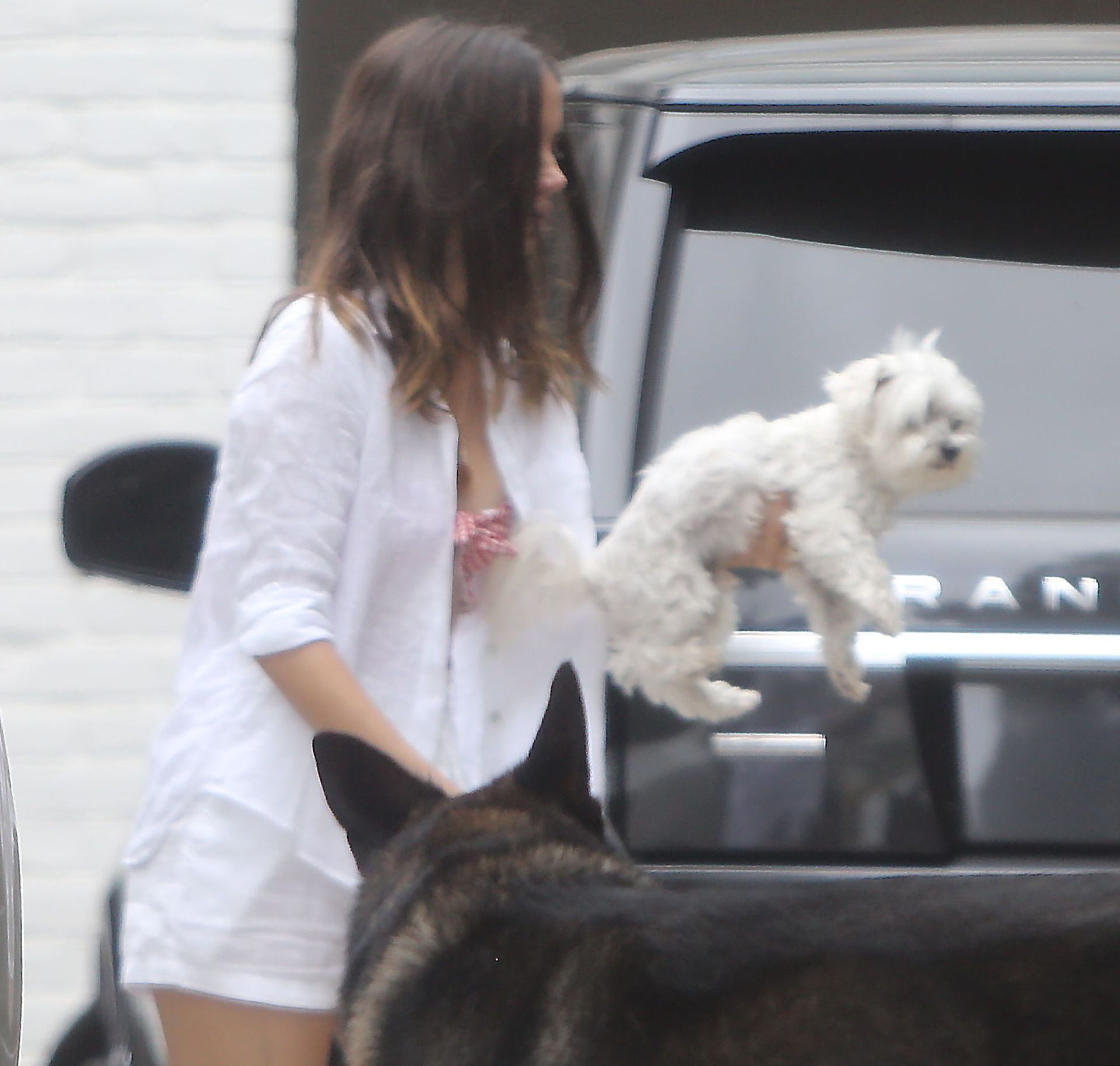 La hermosa actriz, novia de Ben Affleck, Ana De Armas, fue vista luciendo un moderno bikini rojo de Vichy el domingo en Brentwood con su adorable cachorro, 28/06/2020.