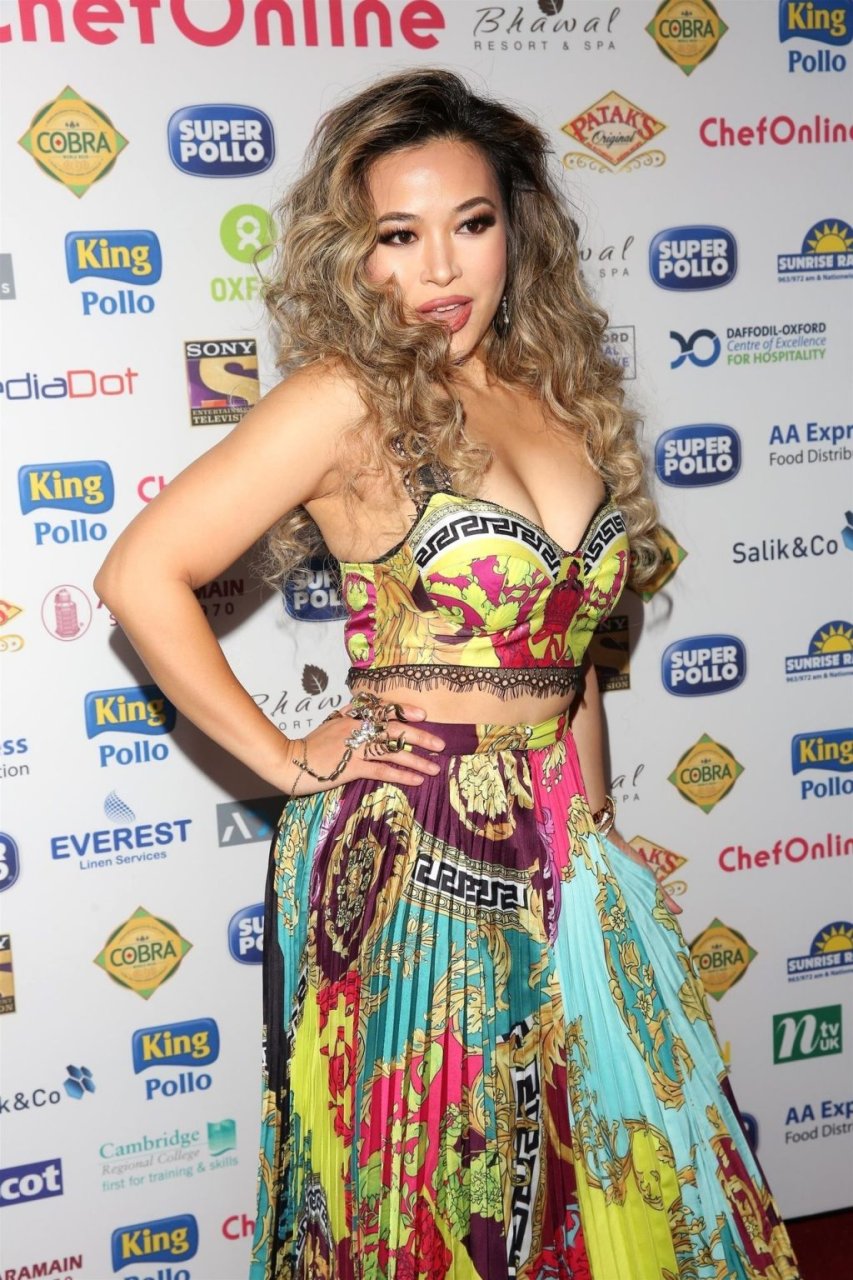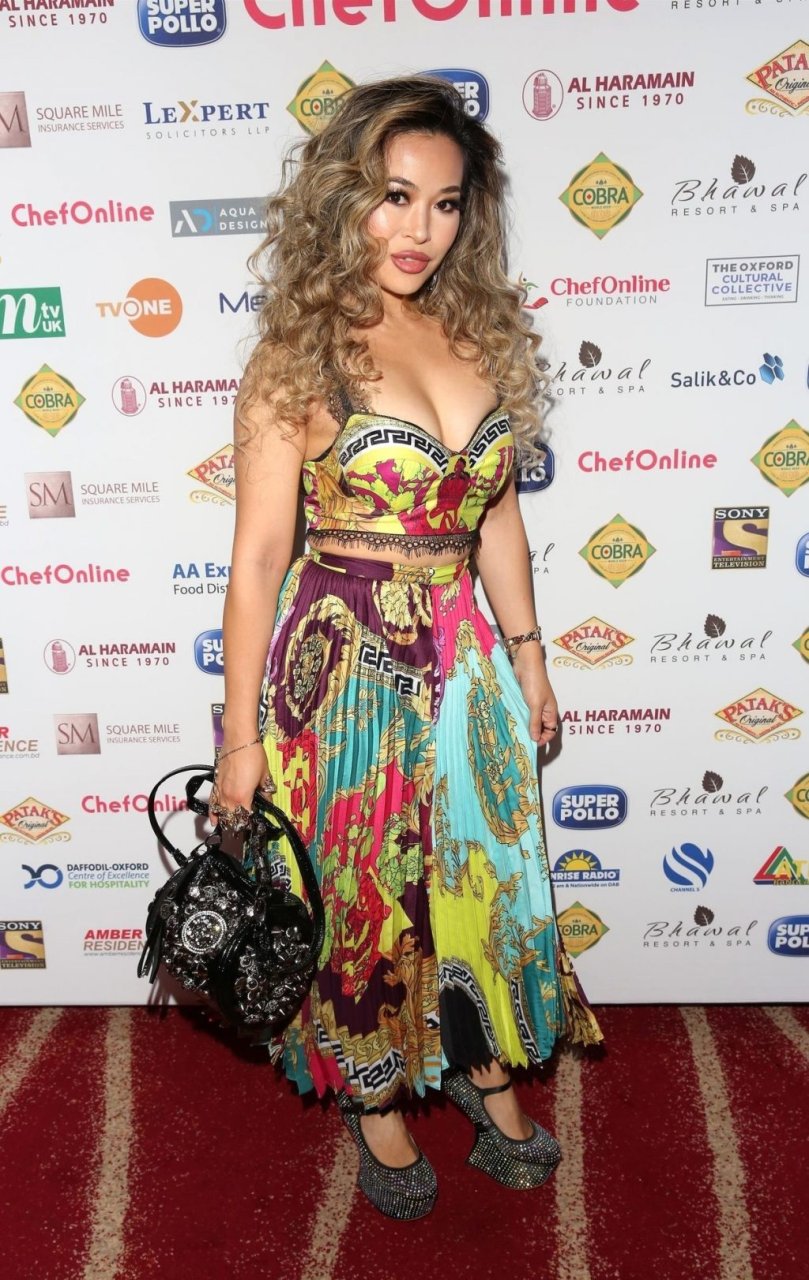 Britain’s Got Talent Analiza Ching asiste a los Premios de Restaurantes Asiáticos y Comida para Llevar en Westminster Bridge Plaza en Londres, 13/10/2019. Ella asistió al evento vestida de Versace en una rara aparición en la alfombra roja con un nuevo look completo.