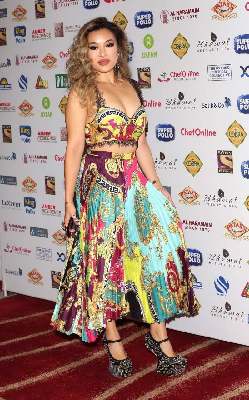 Britain’s Got Talent Analiza Ching asiste a los Premios de Restaurantes Asiáticos y Comida para Llevar en Westminster Bridge Plaza en Londres, 13/10/2019. Ella asistió al evento vestida de Versace en una rara aparición en la alfombra roja con un nuevo look completo.