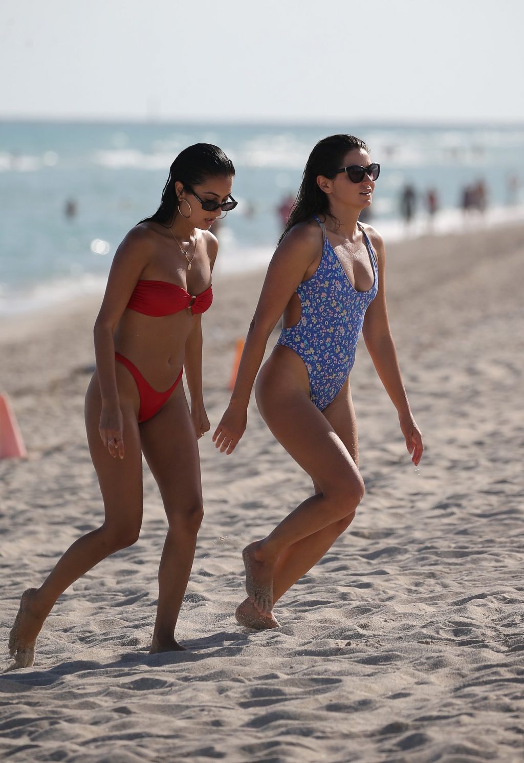 La surfista profesional y modelo Anastasia Ashley lleva un traje de baño azul en la playa de Miami, 11/12/2019.