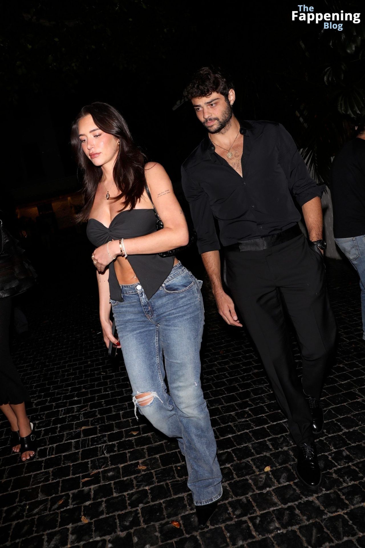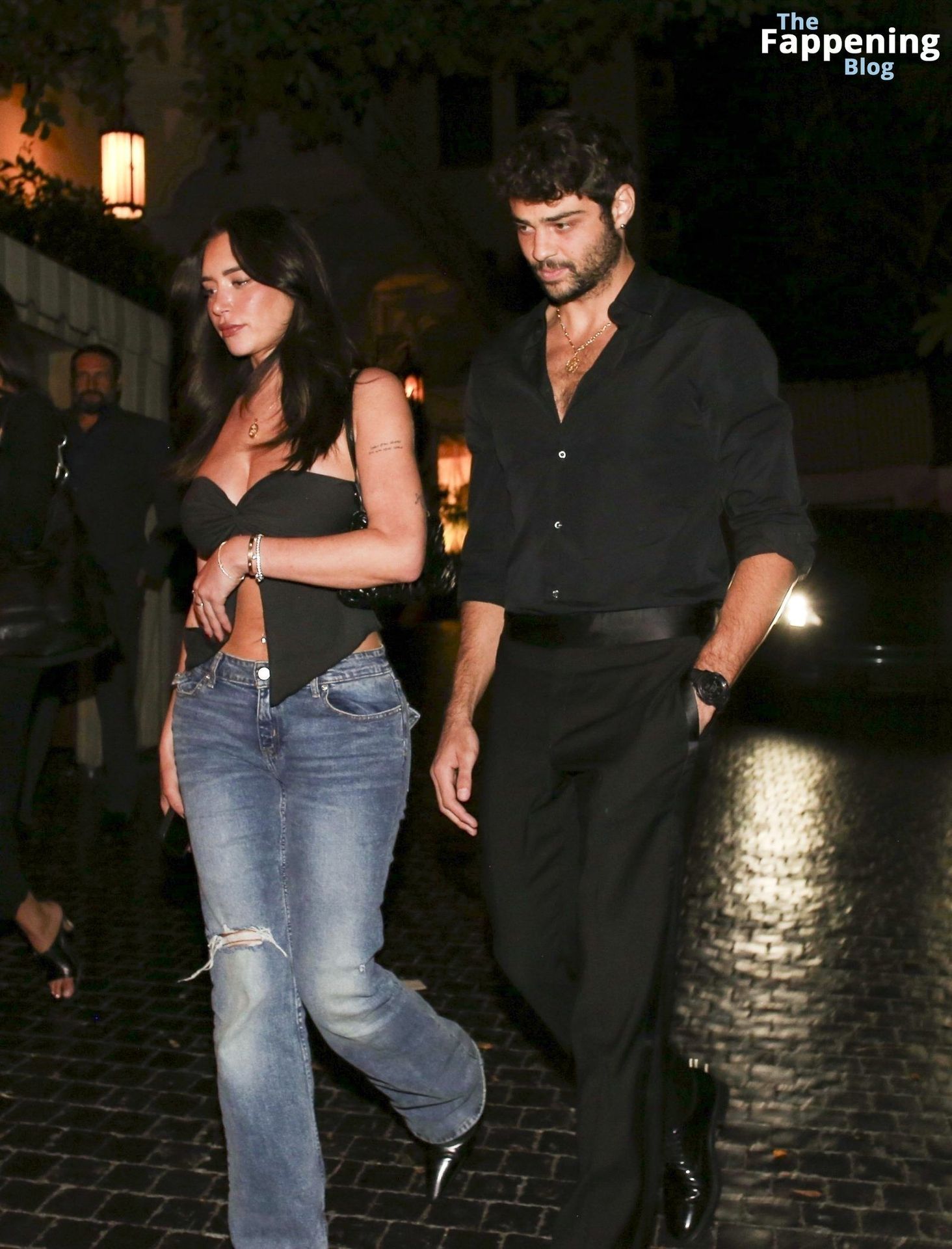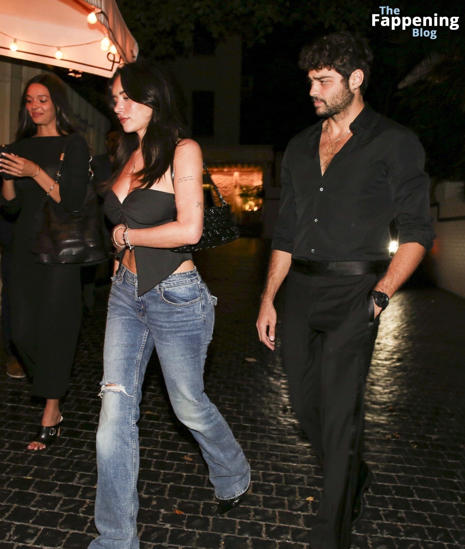 La estrella de Instagram Anastasia Karanikolaou sale del Chateau Marmont, luciendo su sexy escote con un top negro y mostrando su trasero en unos vaqueros ajustados.
