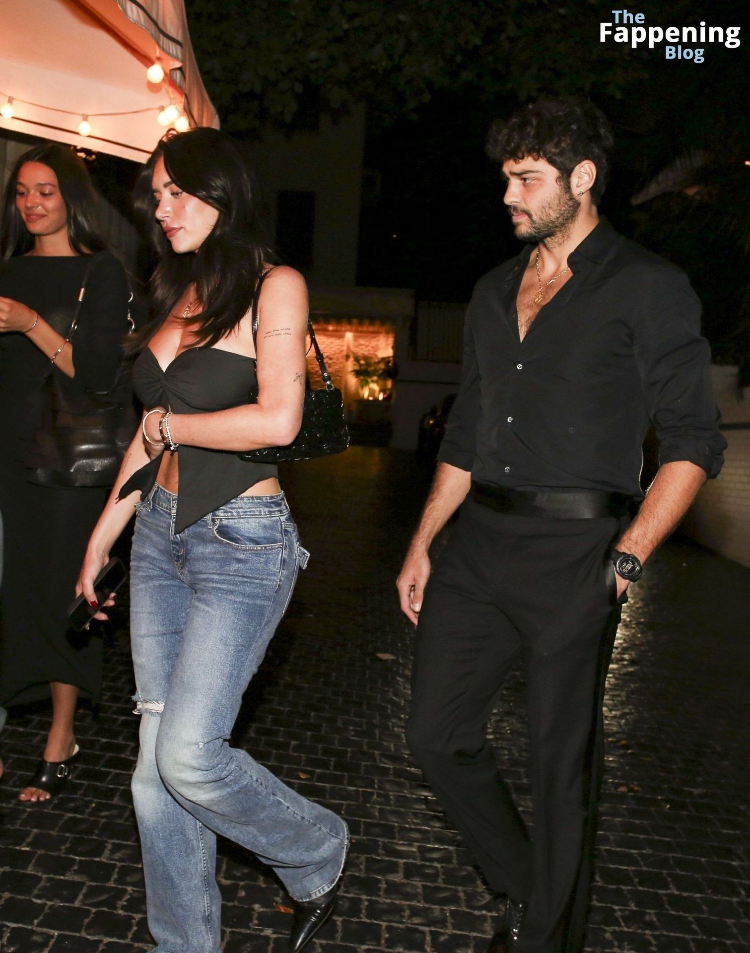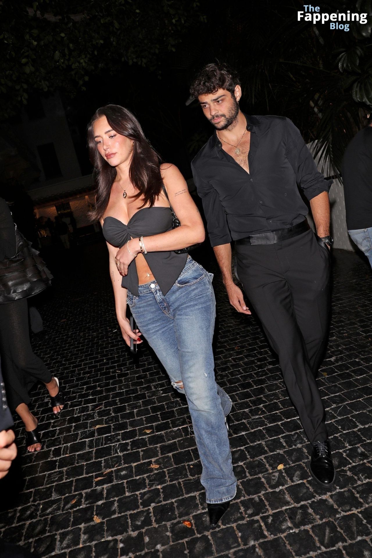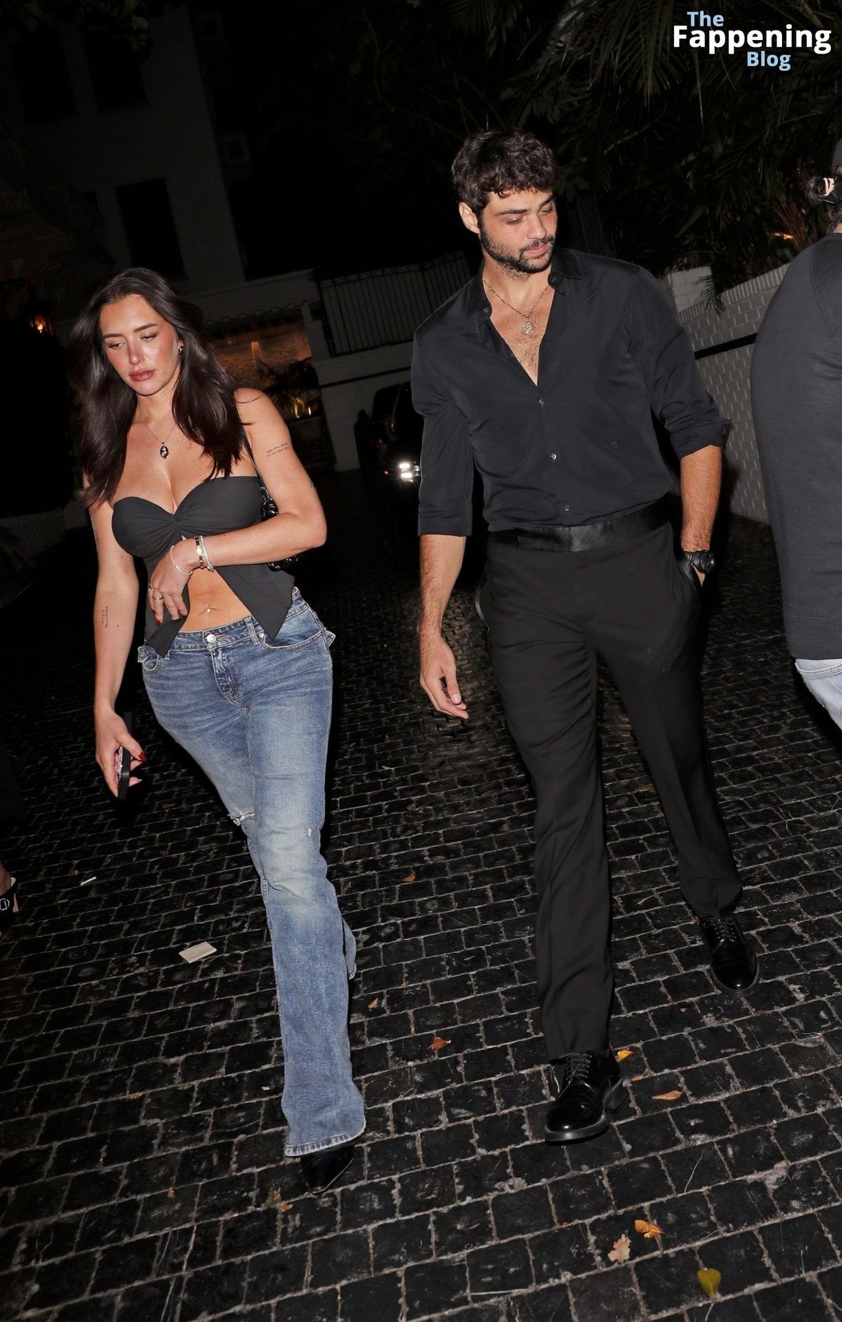 La estrella de Instagram Anastasia Karanikolaou sale del Chateau Marmont, luciendo su sexy escote con un top negro y mostrando su trasero en unos vaqueros ajustados.