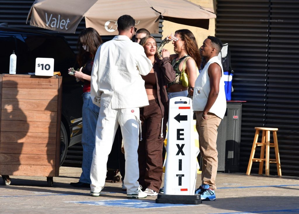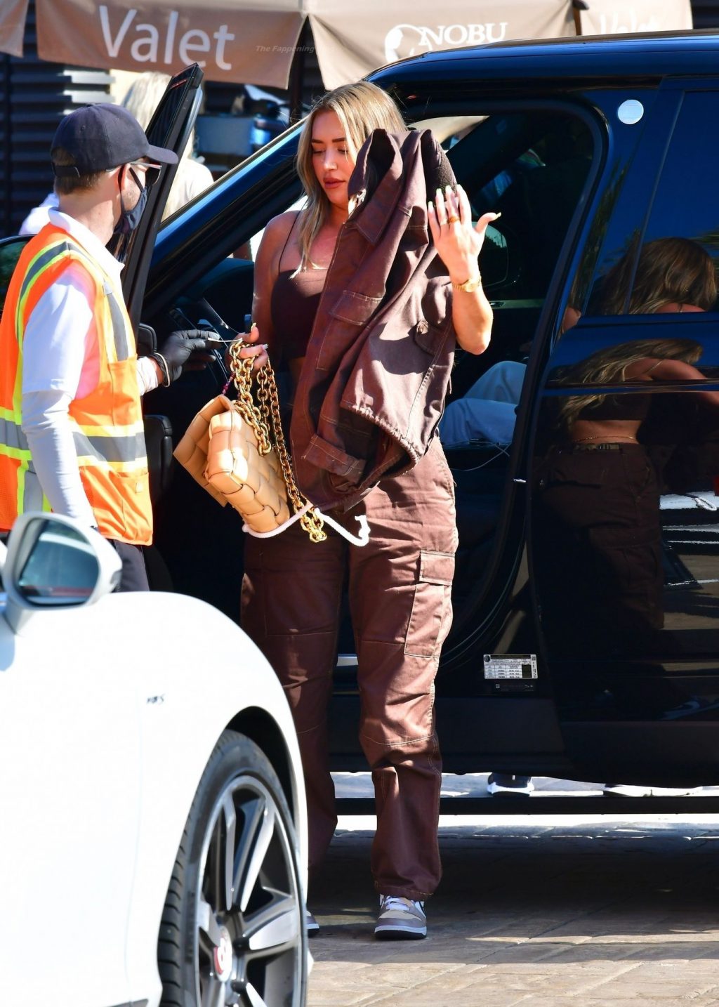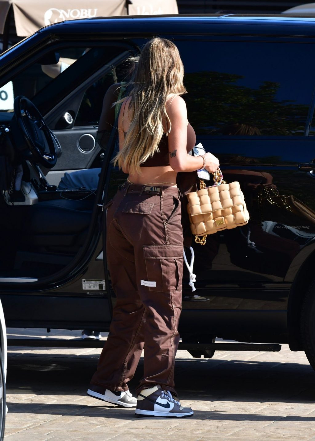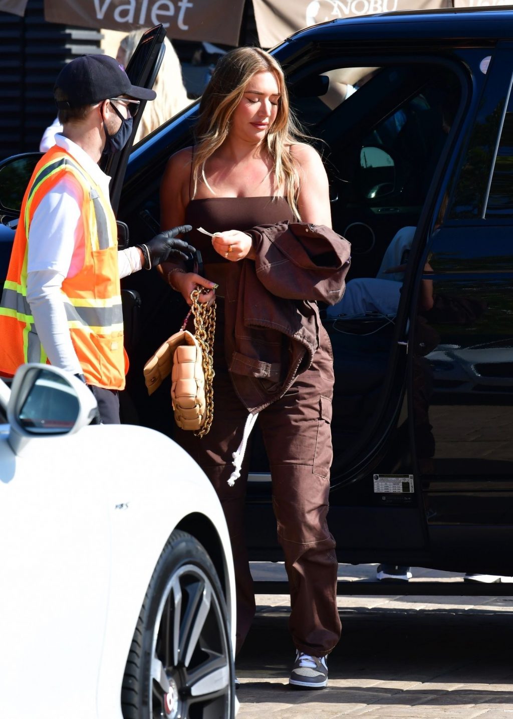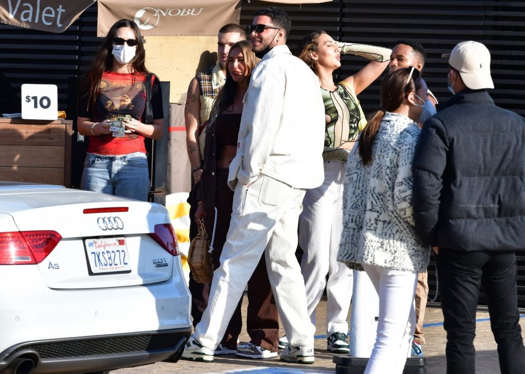 Anastasia Karanikolaou, con un busto prominente, cena con amigos en Nobu en Malibu, 24/04/2021.