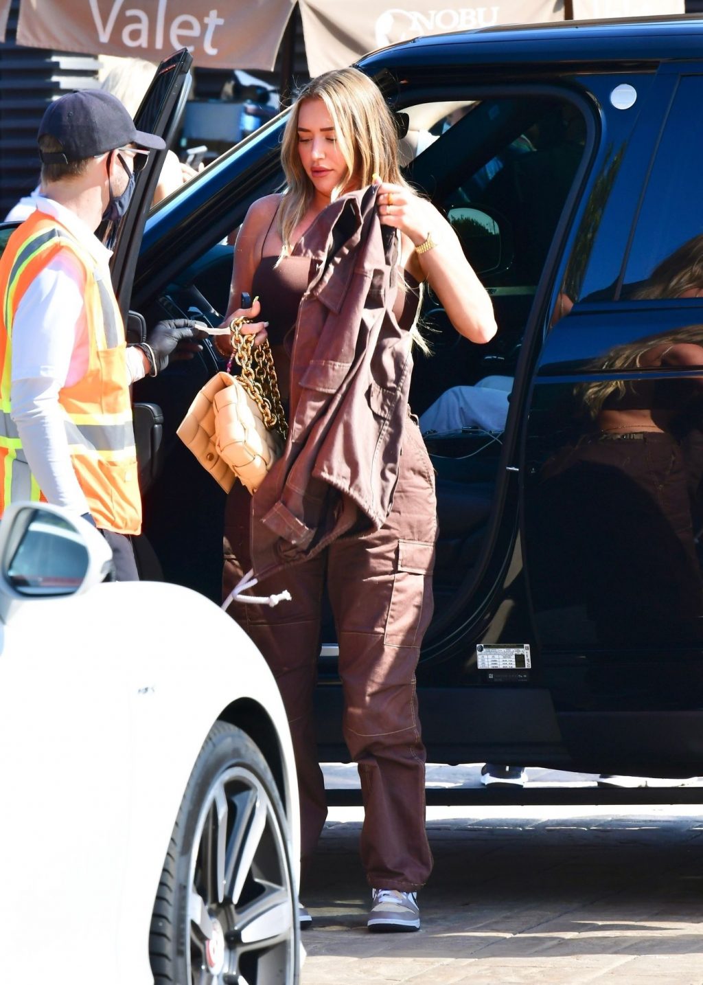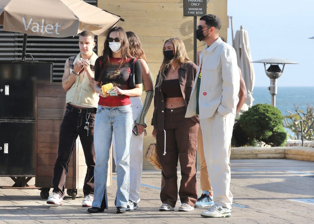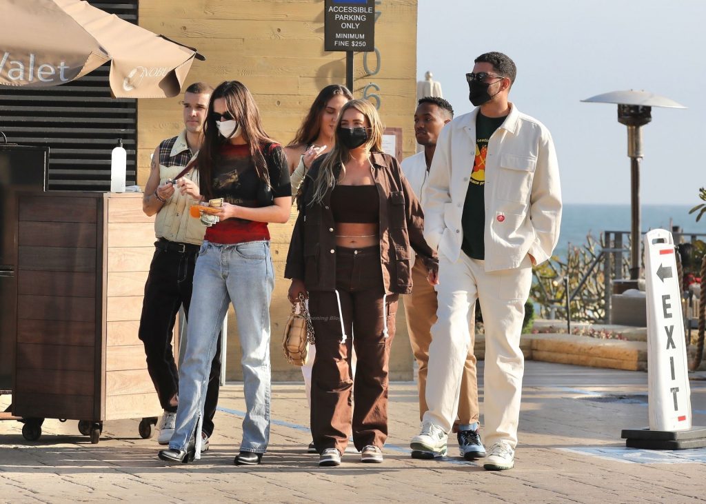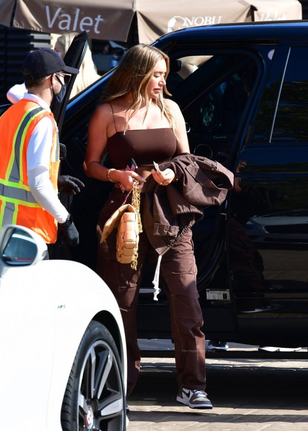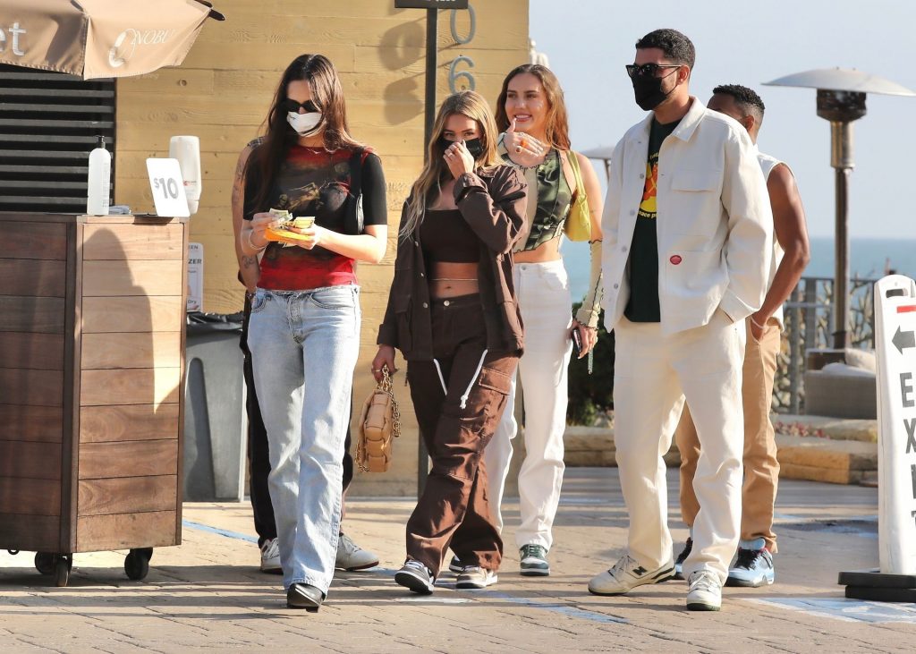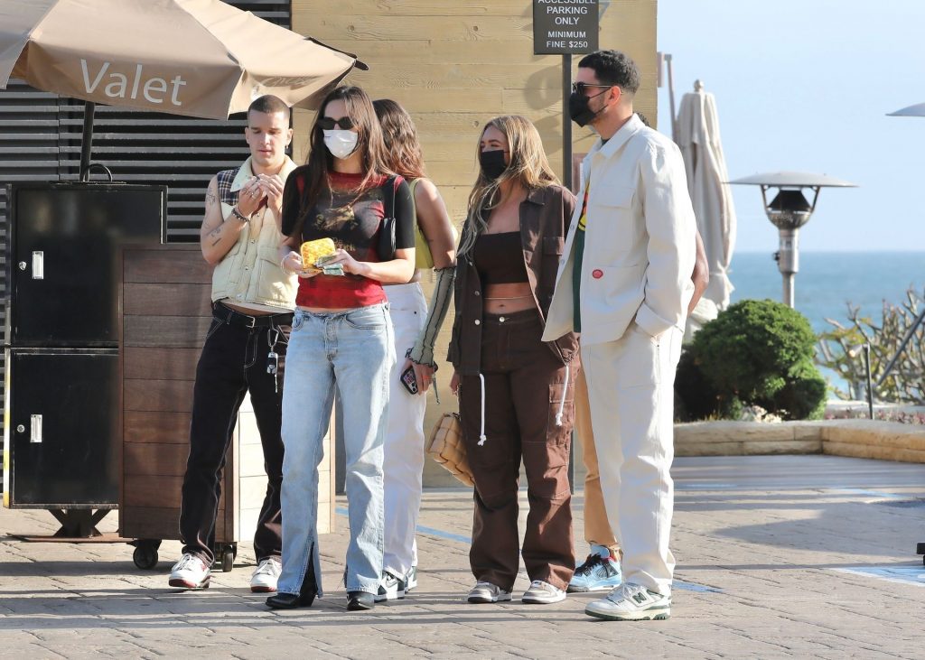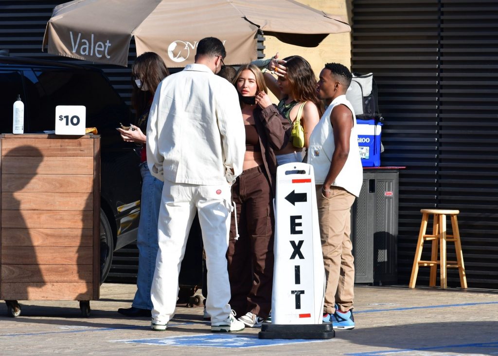 Anastasia Karanikolaou, con un busto prominente, cena con amigos en Nobu en Malibu, 24/04/2021.
