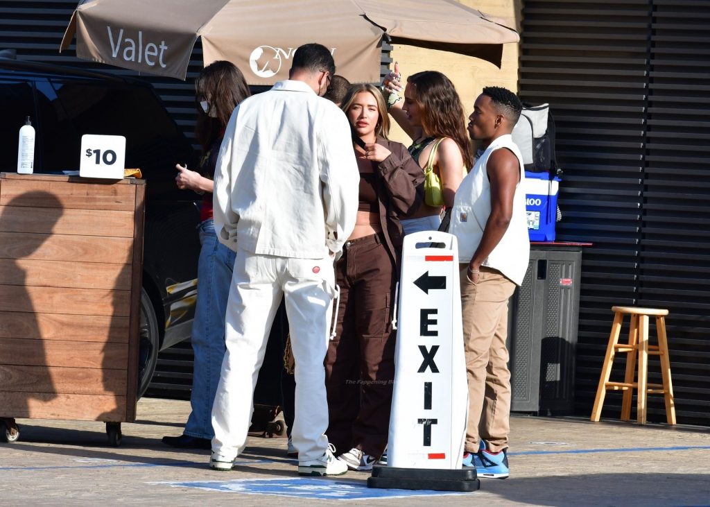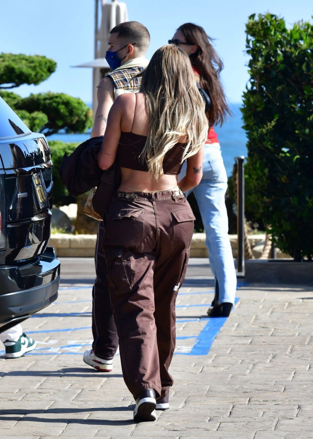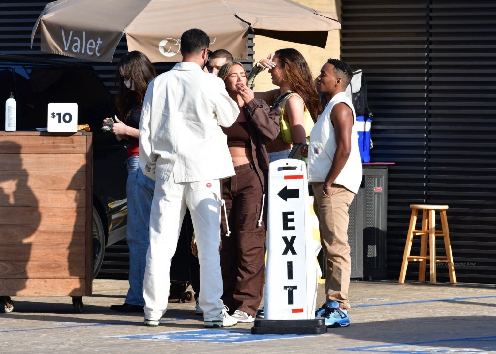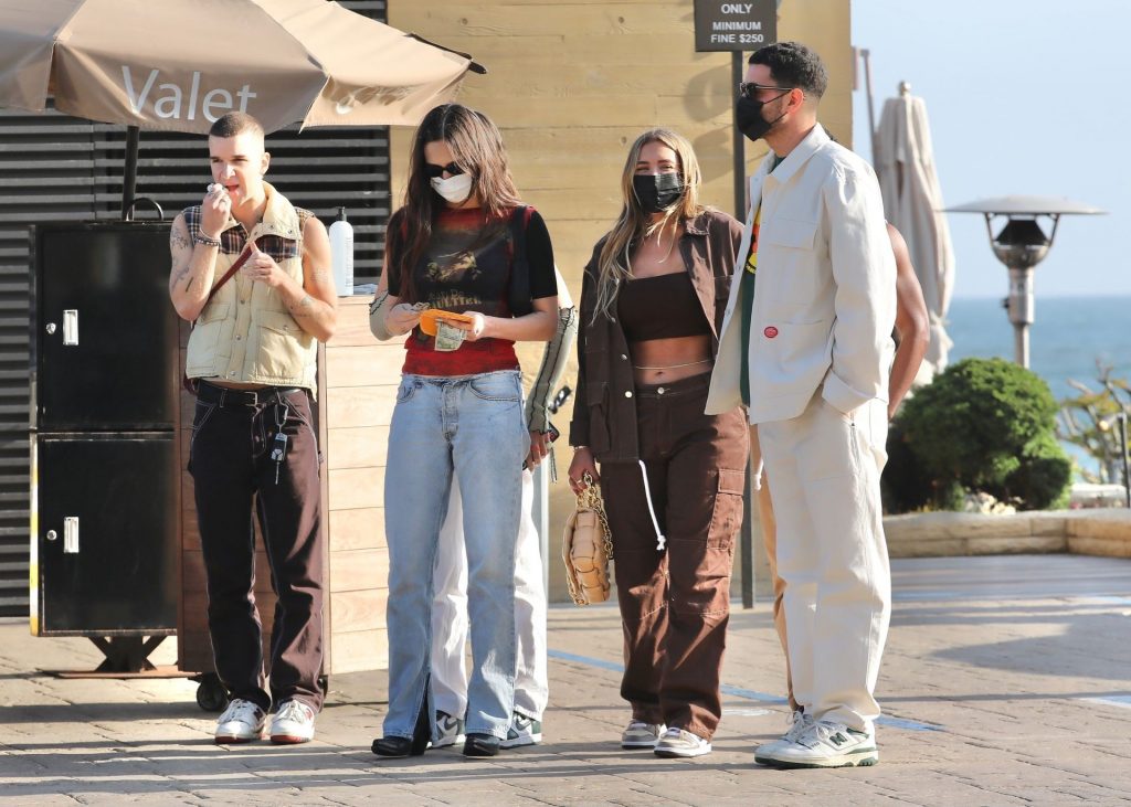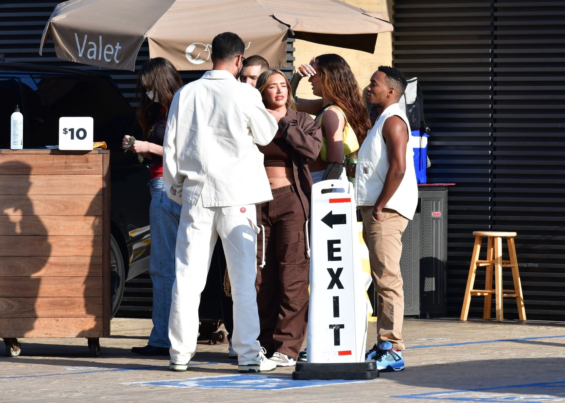 Anastasia Karanikolaou, con un busto prominente, cena con amigos en Nobu en Malibu, 24/04/2021.