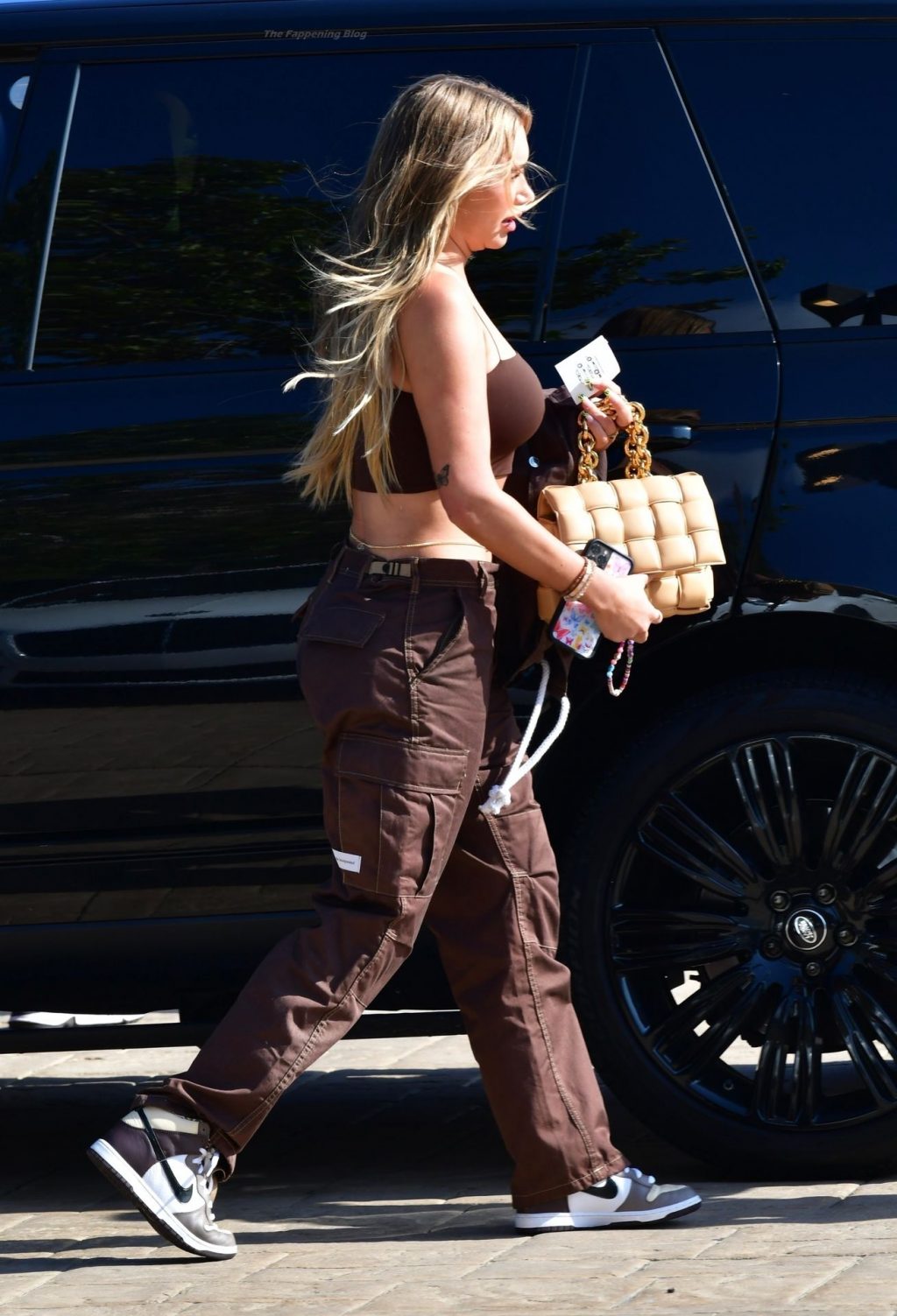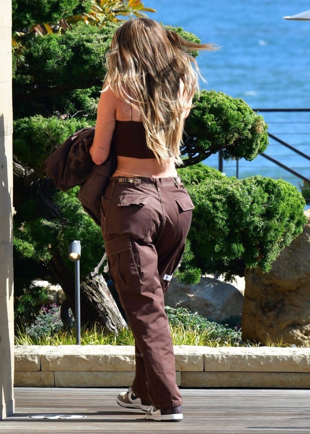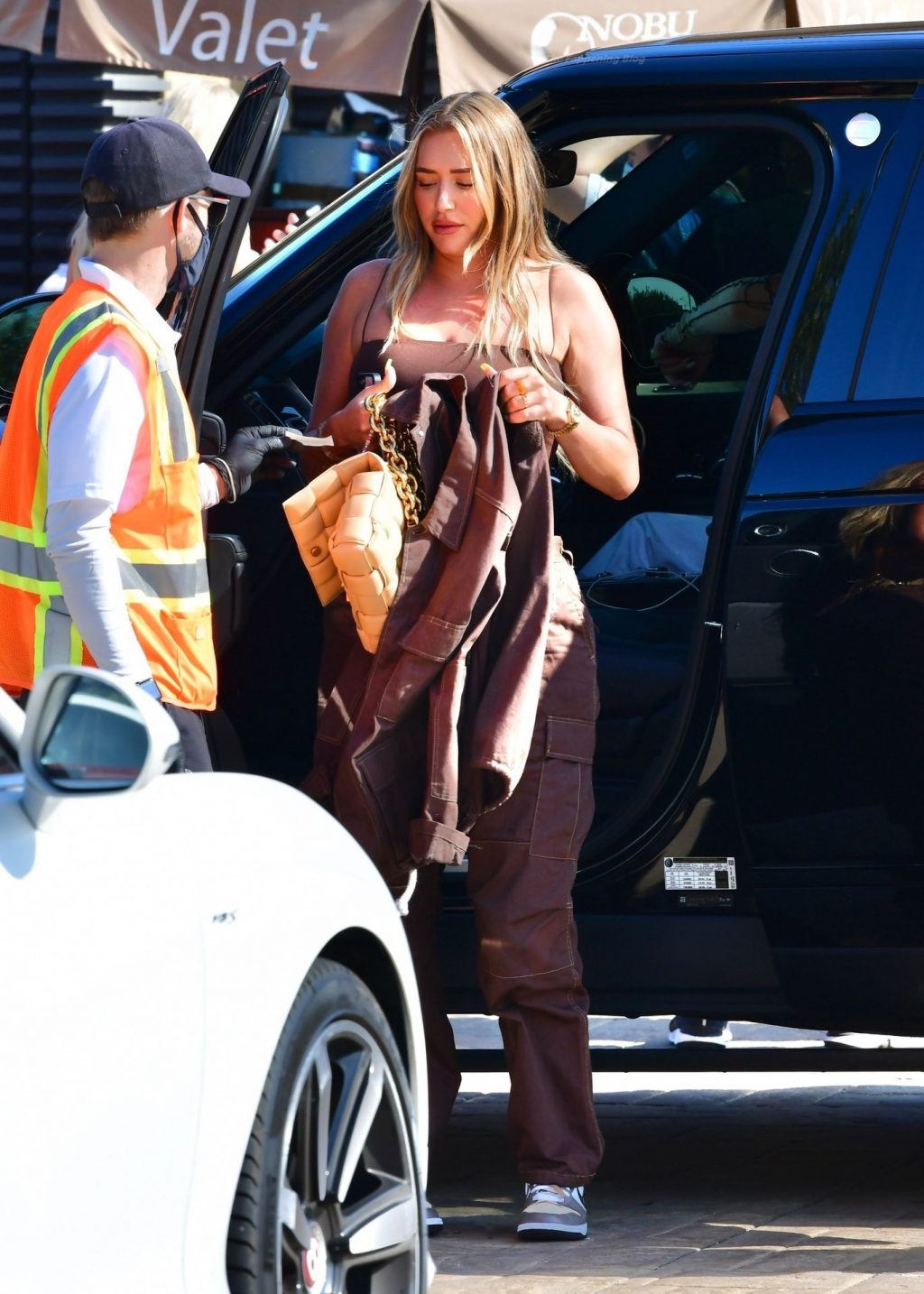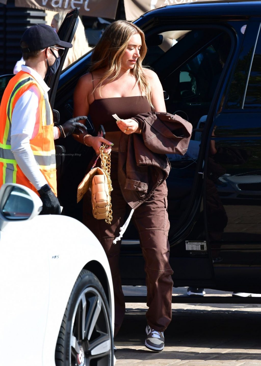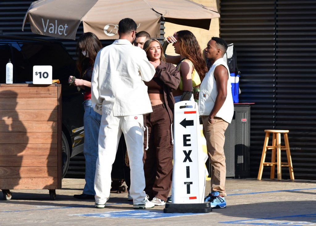 Anastasia Karanikolaou, con un busto prominente, cena con amigos en Nobu en Malibu, 24/04/2021.
