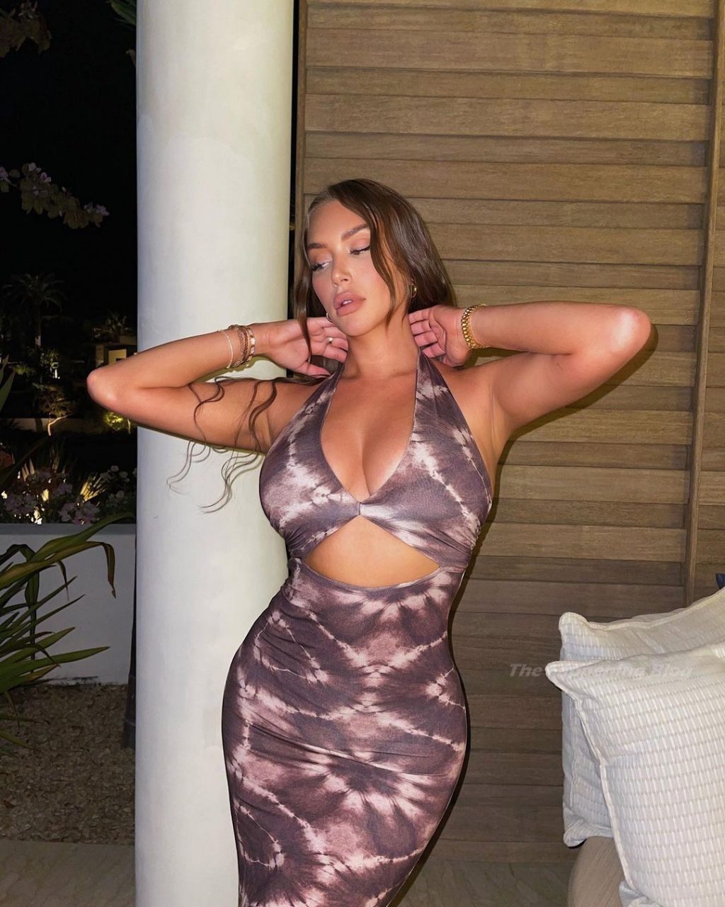 Mira las fotos sexys de Anastasia Karanikolaou en Instagram, 11/03/2021. Stassie Baby luce curvilínea, mostrando escote con un vestido ajustado, posando para sus 10.2M de seguidores.